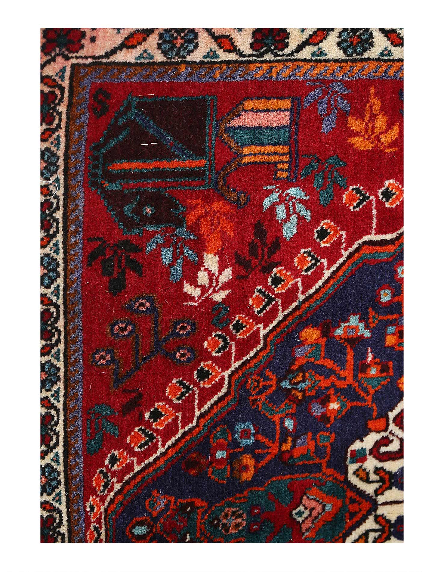 A very attractive and durable carpet woven in the village of Abadeh in southwestern Persia. The pattern is influenced by nomads and usually consists of a hexagon in the middle containing a rosette or a medallion. A good bargain since the carpet retains its value for a long time