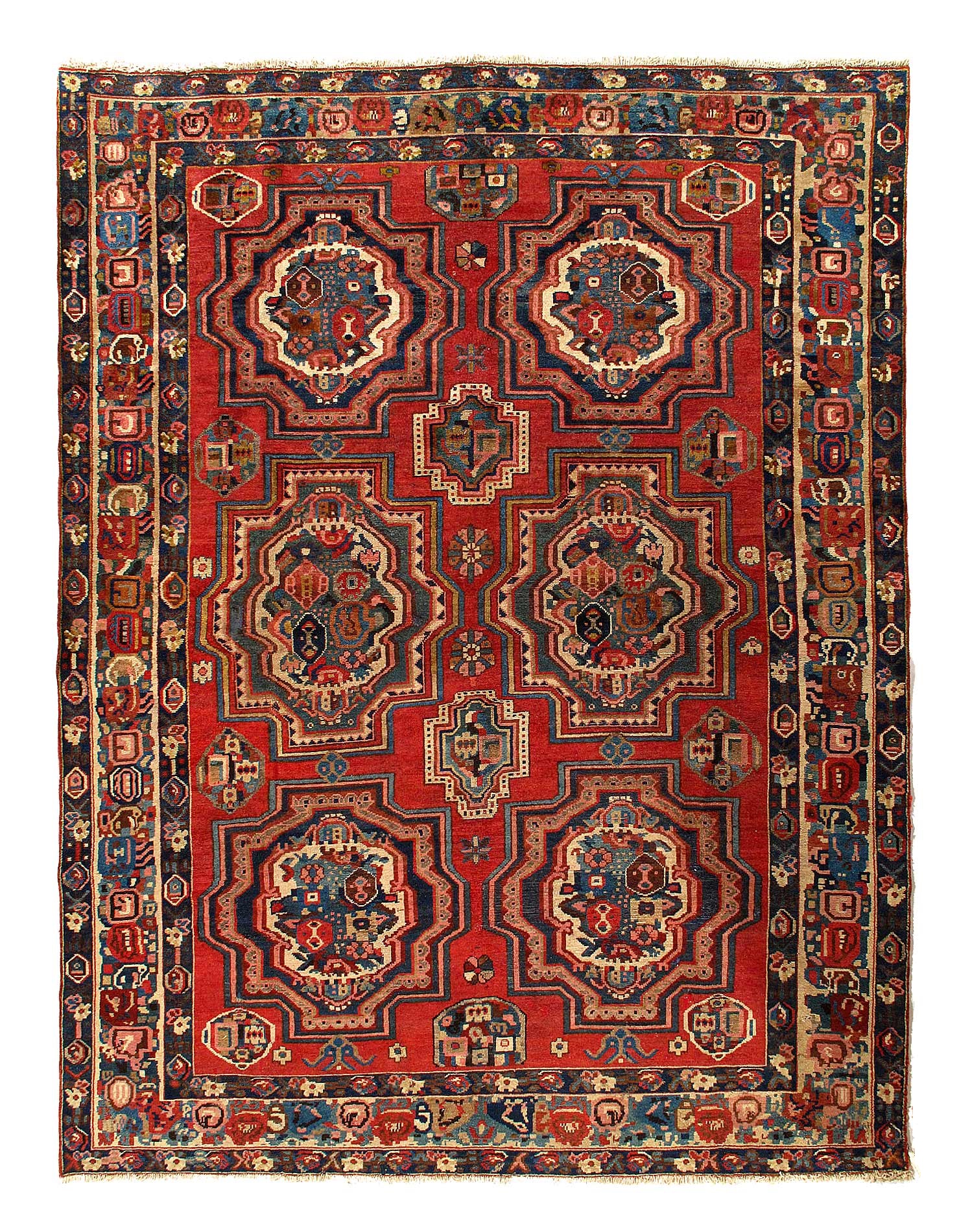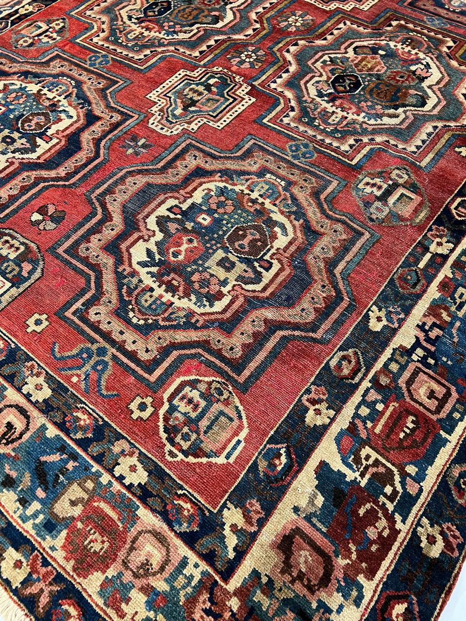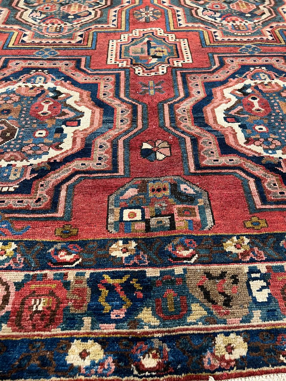 Offered is a gorgeous Persian Bakhtiari area rug. The luxurious hand-knotted pile is made from very fine lamb's wool and features a traditional Bakhtiari motif throughout. Handmade hand-knotted lamb's wool on a cotton foundation.