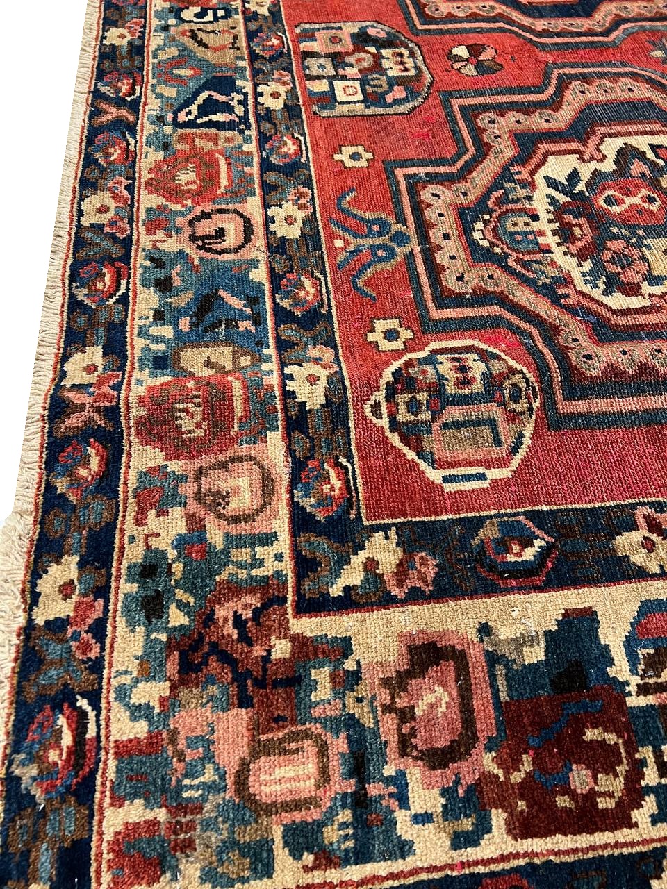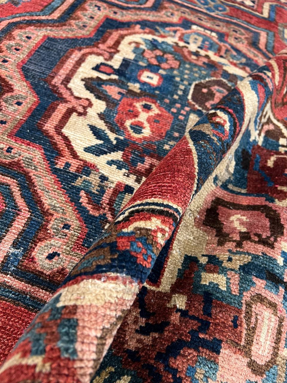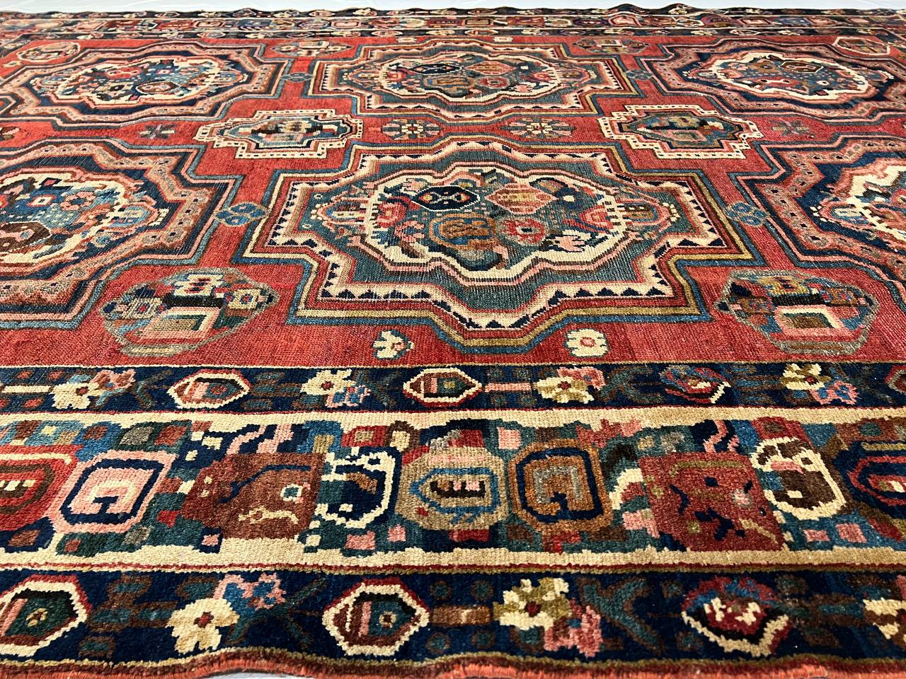 Offered is a gorgeous Persian Bakhtiari area rug. The luxurious hand-knotted pile is made from very fine lamb's wool and features a traditional Bakhtiari motif throughout. Handmade hand-knotted lamb's wool on a cotton foundation.