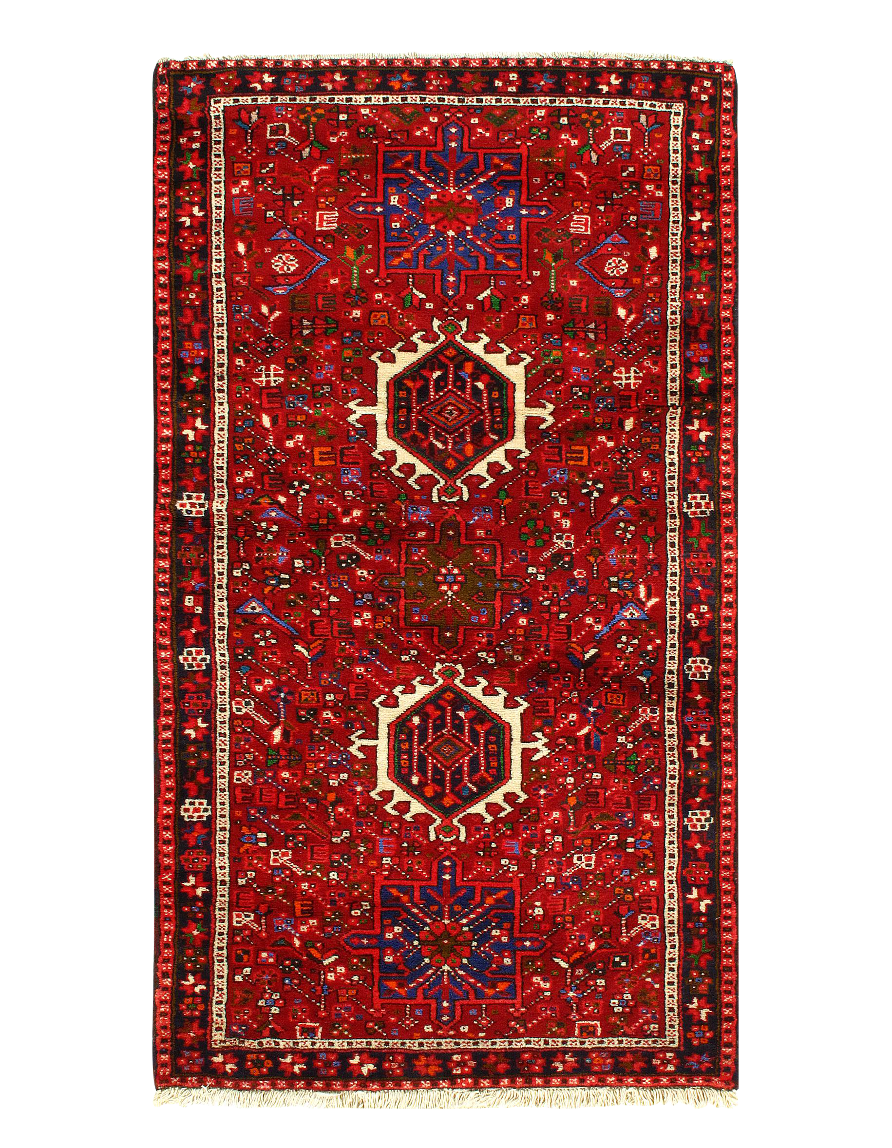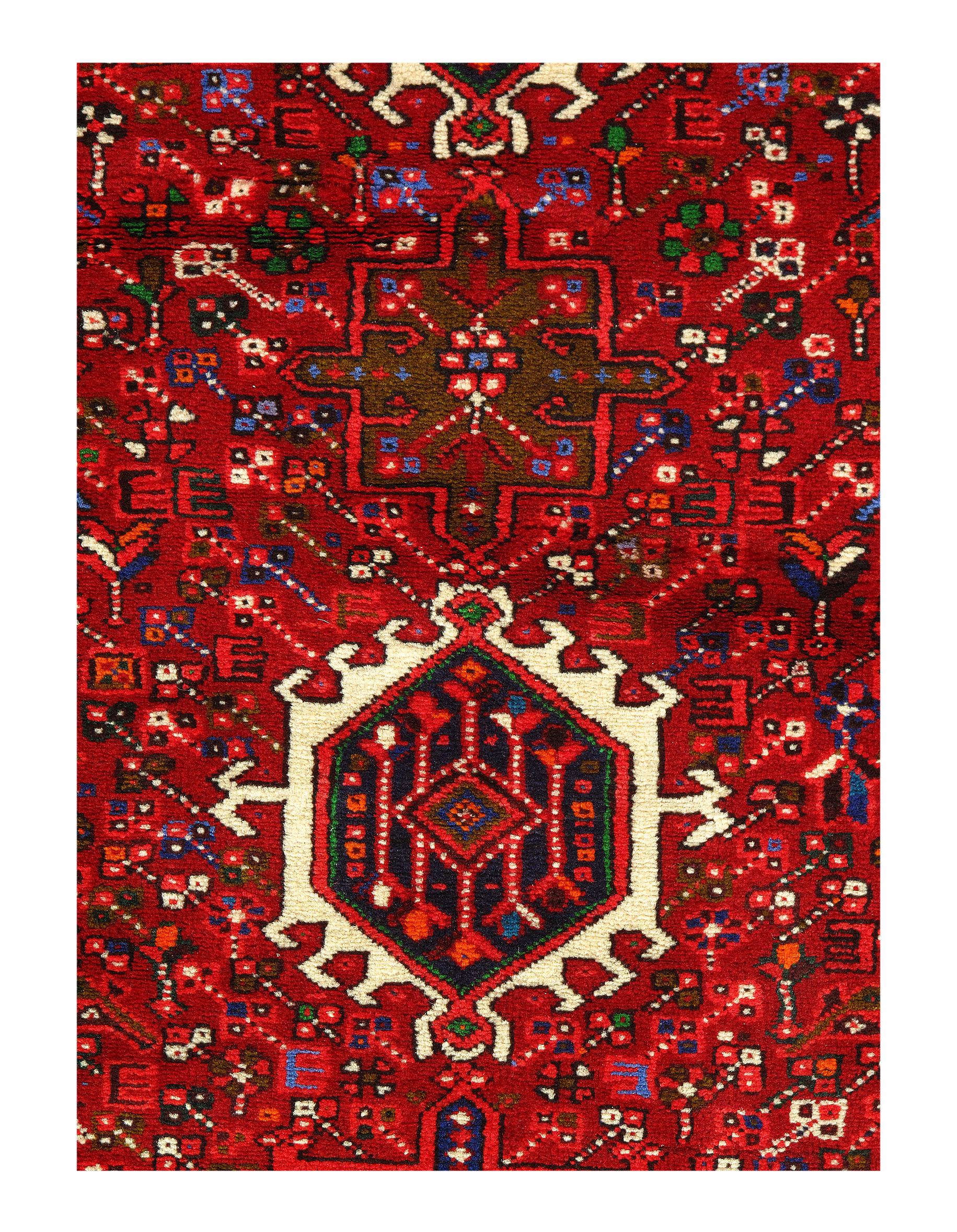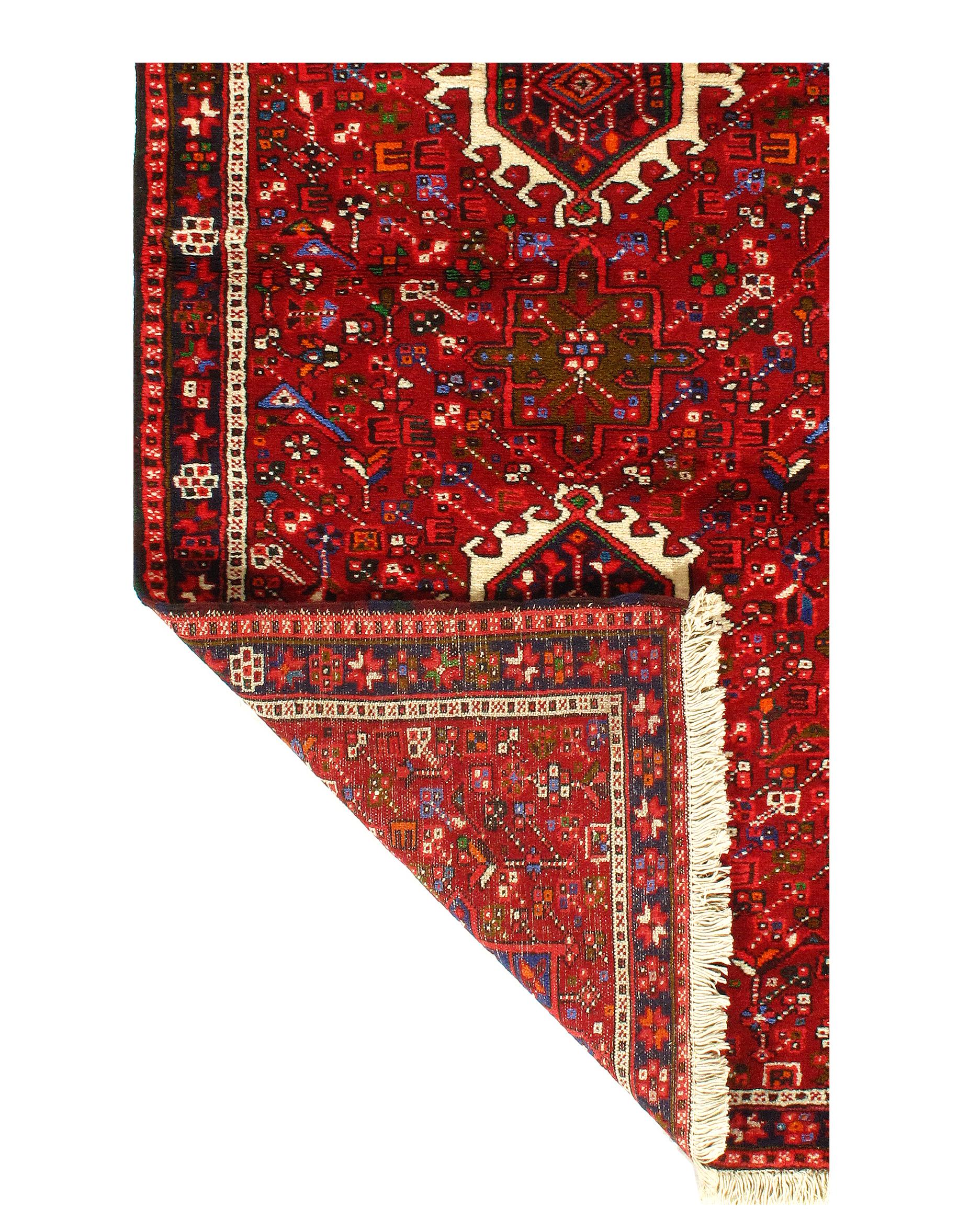 Original Persian Karajeh rug. The piece is made of hand-spun lamb's wool on a cotton foundation, and it was vegetable dyed. The rug has a dense, soft pile, and excellent quality, to ensure that you will enjoy it for years to come.