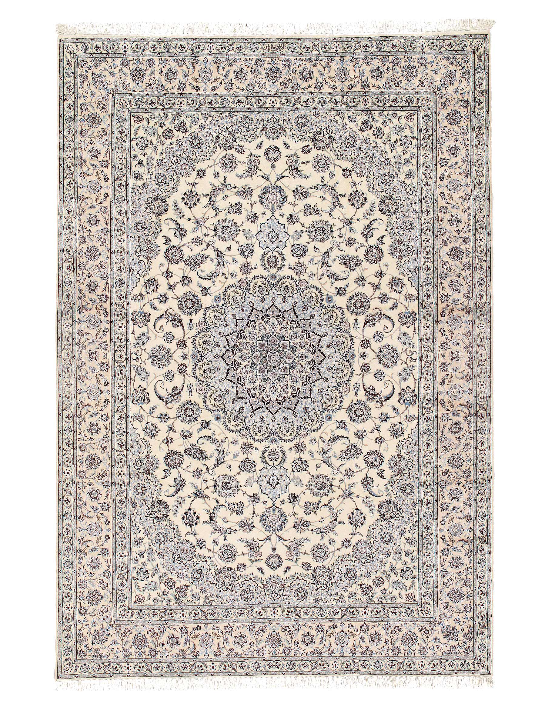 Beautiful hand knotted Nain rug made from wool and silk.