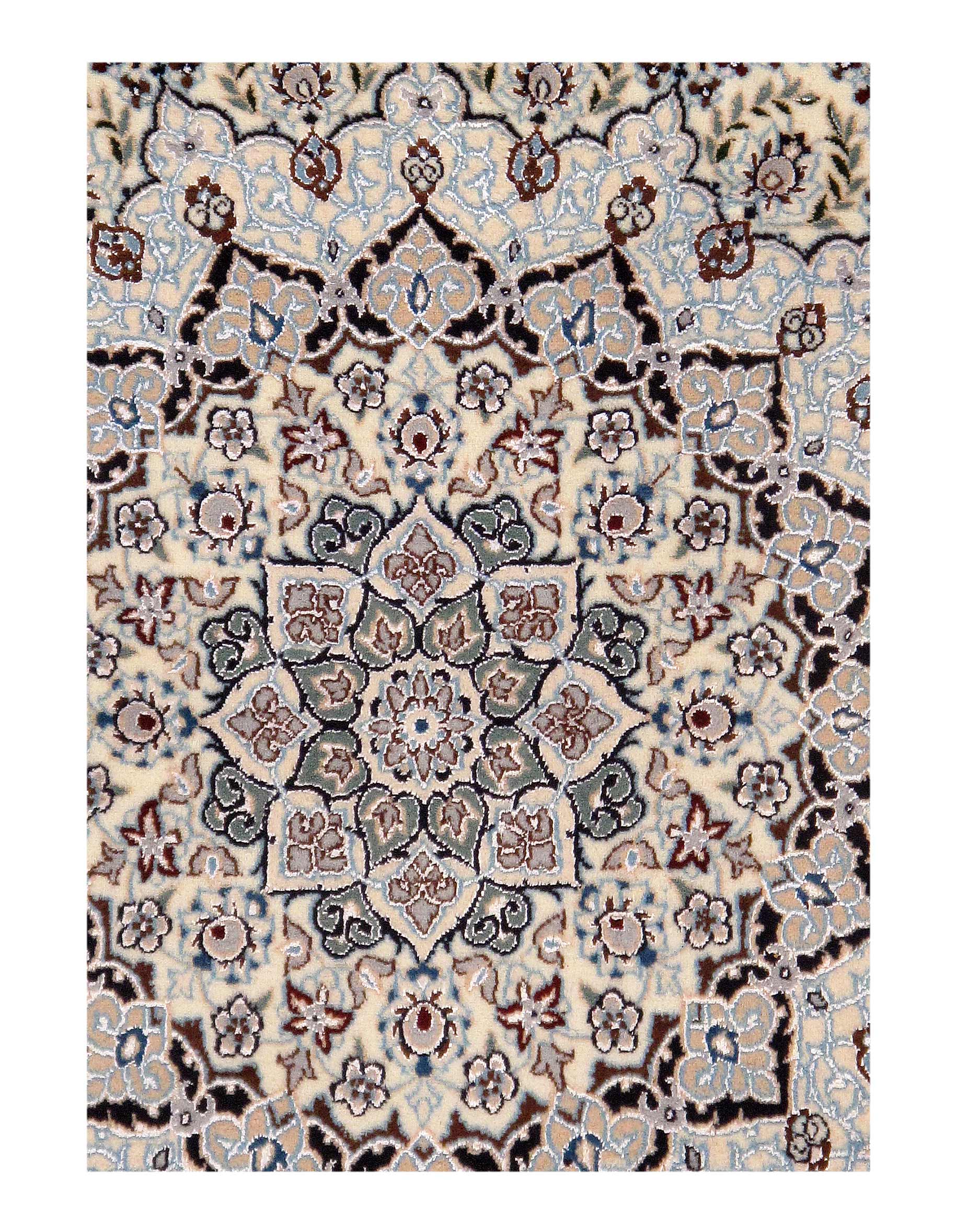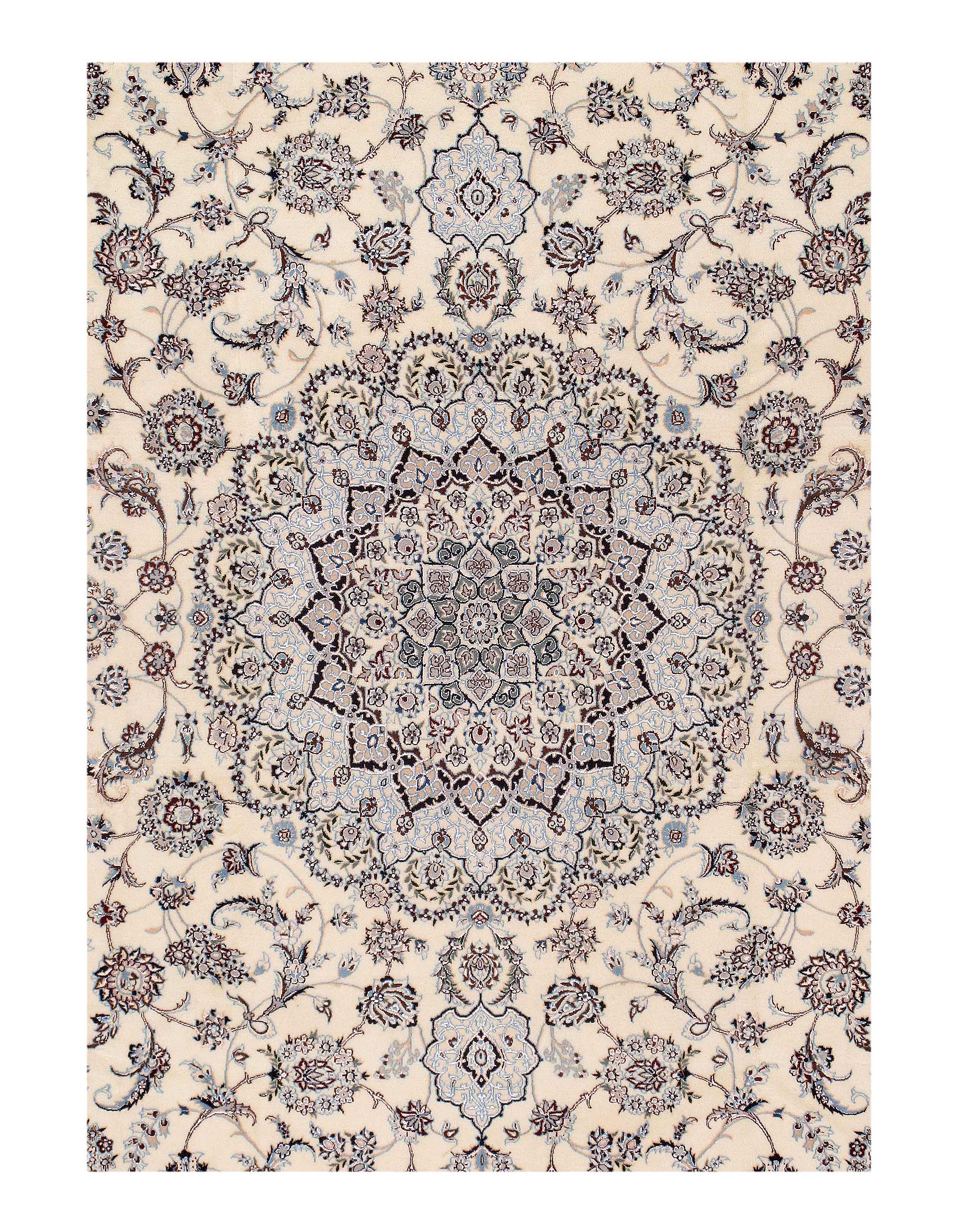 Nain is a small village located in central Iran that has relatively recently become a renowned center for carpet weaving. Production began here in the 1930’s. Although Nain rugs are not as old as many of the traditional Persian rugs, they retain their value in terms of construction. They are also exquisite in design due to their use of silk in weaving both the foundation and fine pile of many rugs from the area.