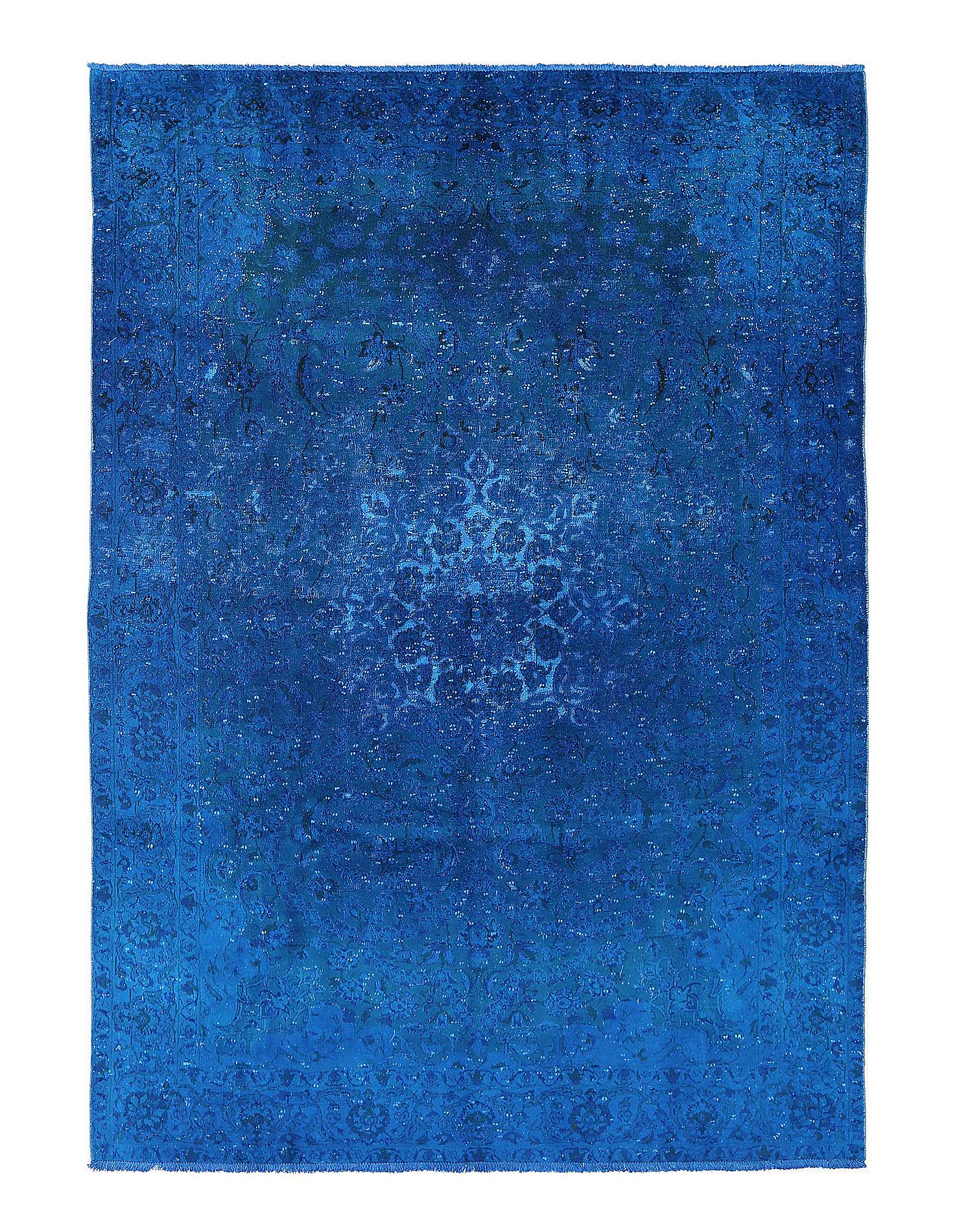 This is a fine example of an Over dyed area rug. These rugs demonstrate a process best described as 'The modern palette applied to classics'. It consists of an added step to the finishing process in which the rug is antique washed, sheared, and finally hand dyed in a full immersion bath of a chosen color. The effect is quite stunning, adding a vibrant overcast to the whole rug and blending seamlessly with the prior dyes.