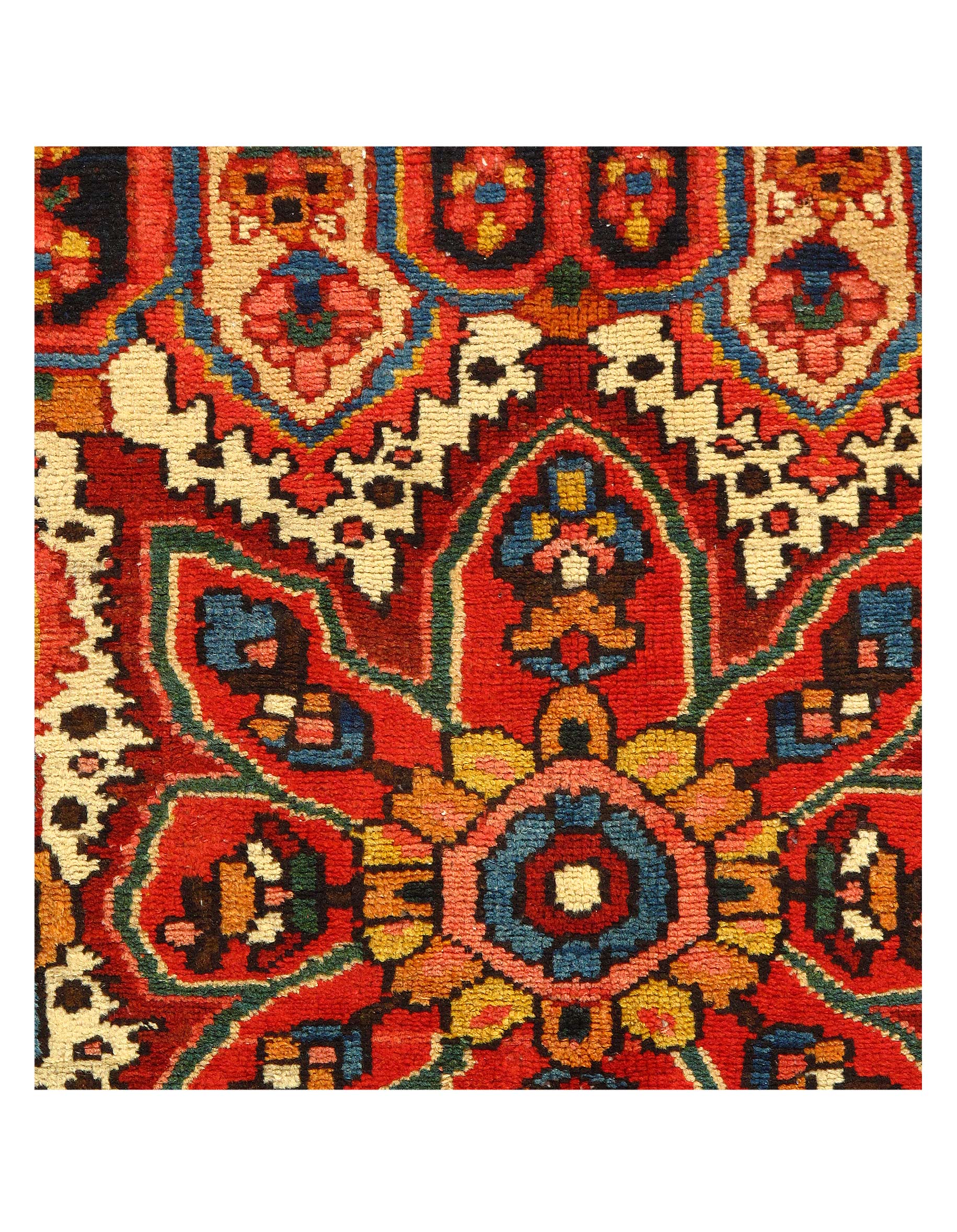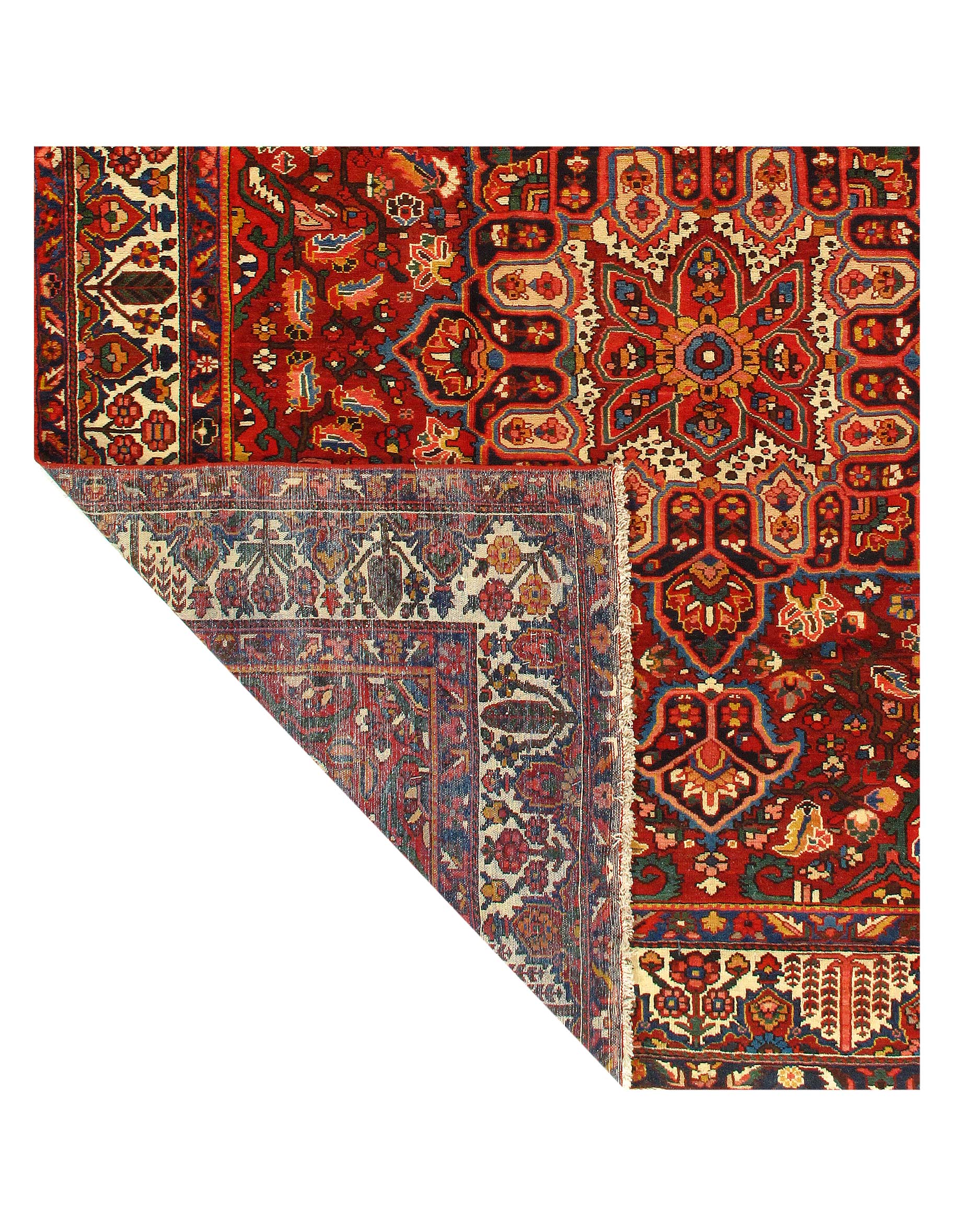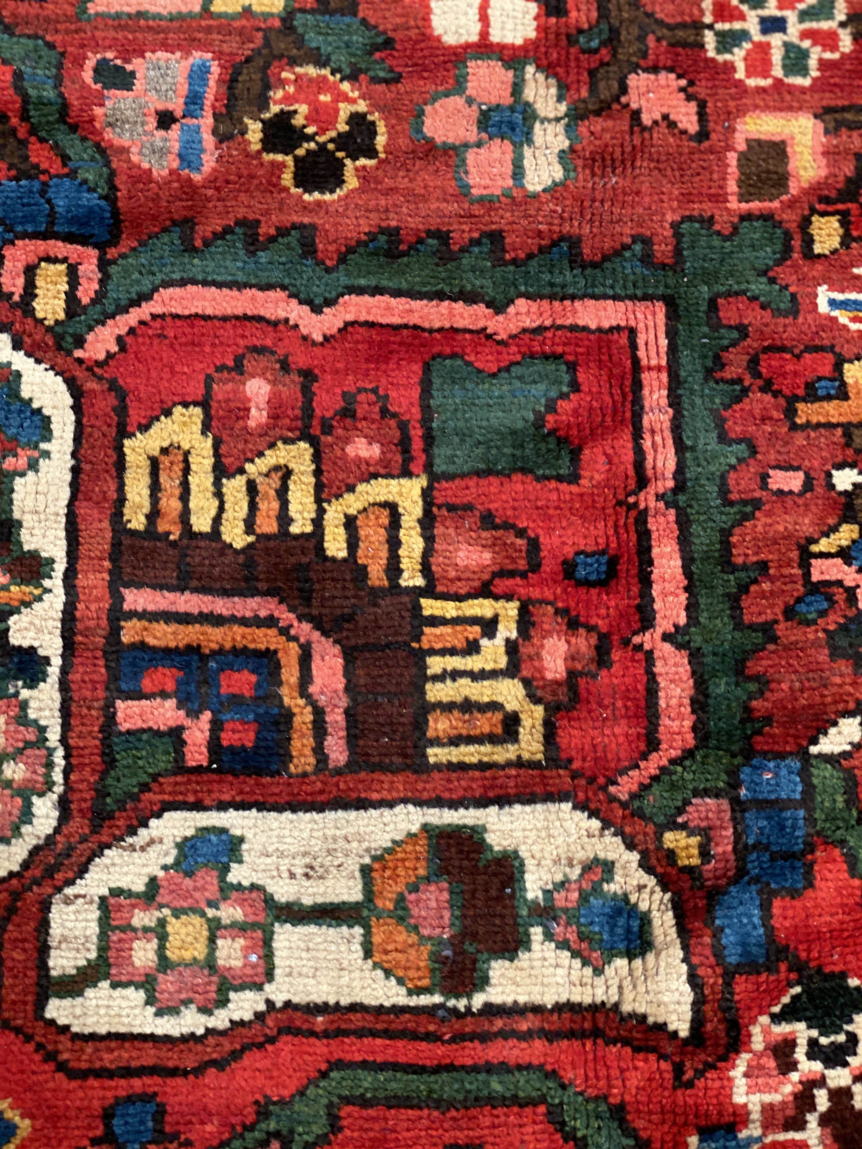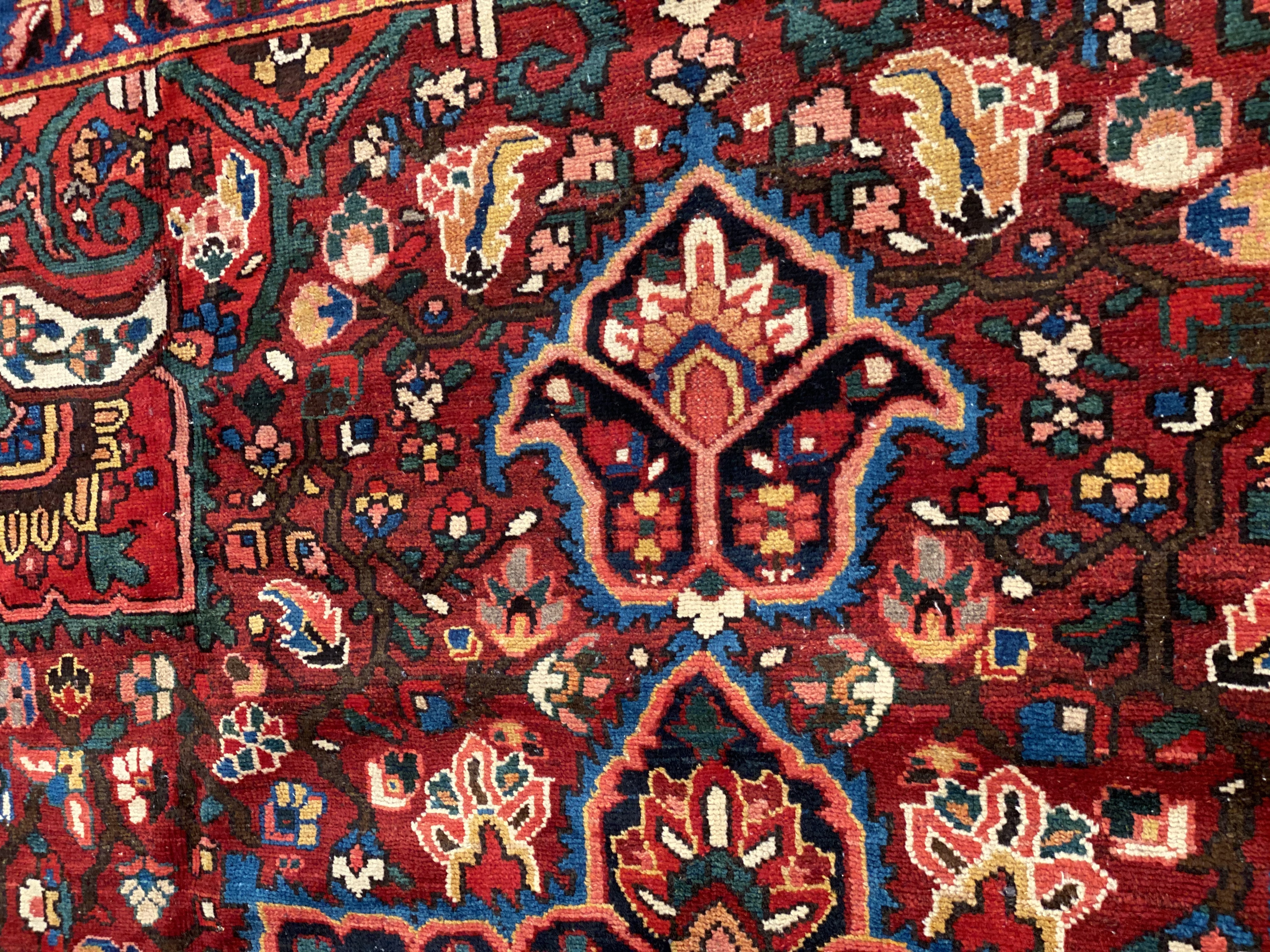 The luxurious hand-knotted pile is made from very fine lamb's wool and features a traditional Bakhtiari motif throughout. Handmade hand-knotted lamb's wool on a cotton foundation. This rug has a dense, soft pile, and excellent quality, to ensure that you will enjoy the look and feel of your rug for years to come.