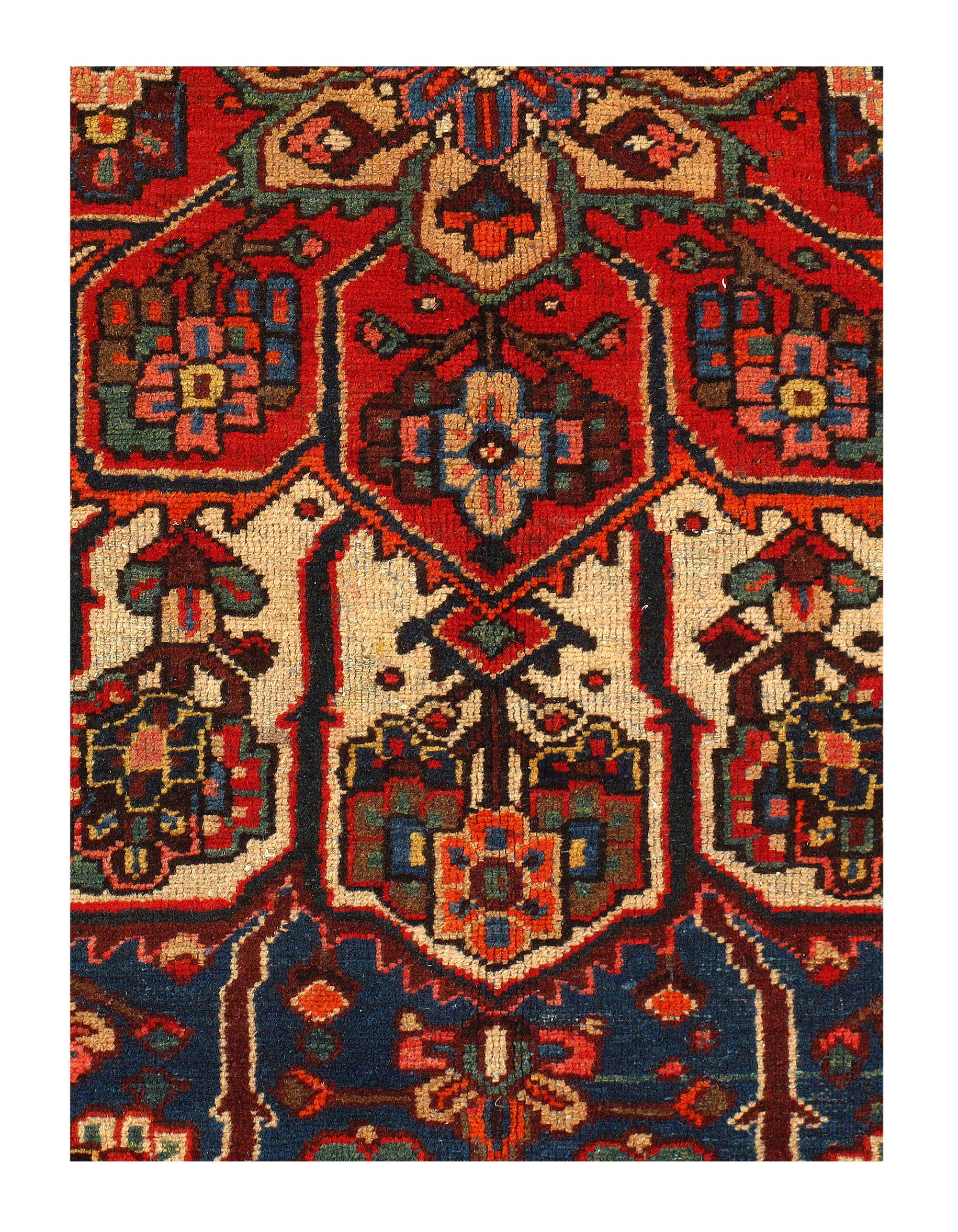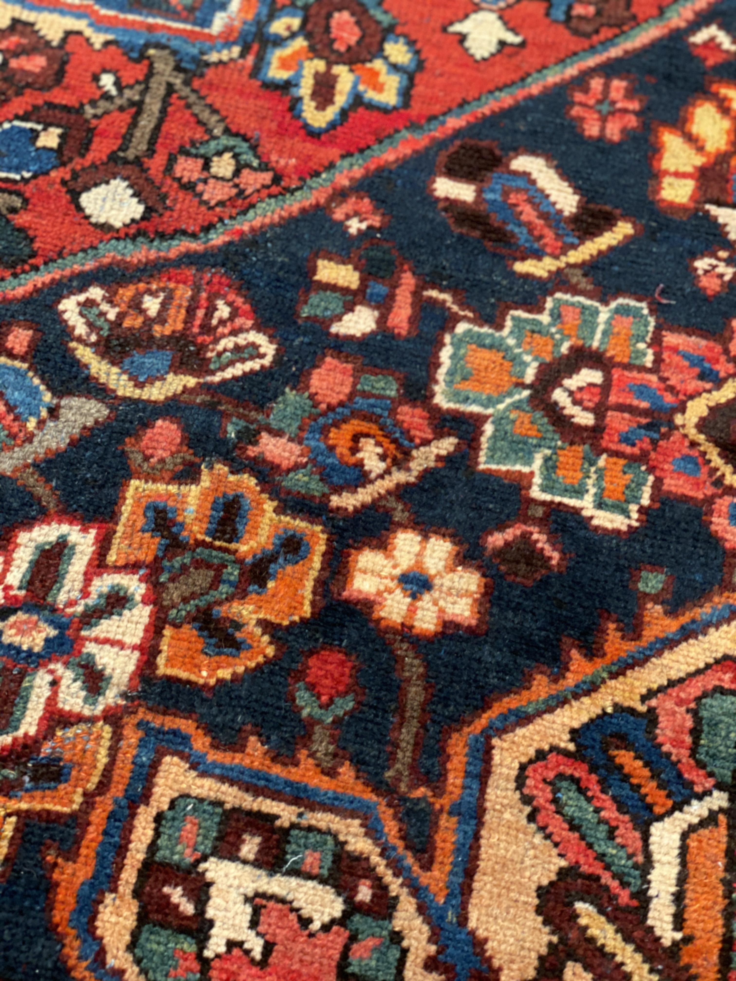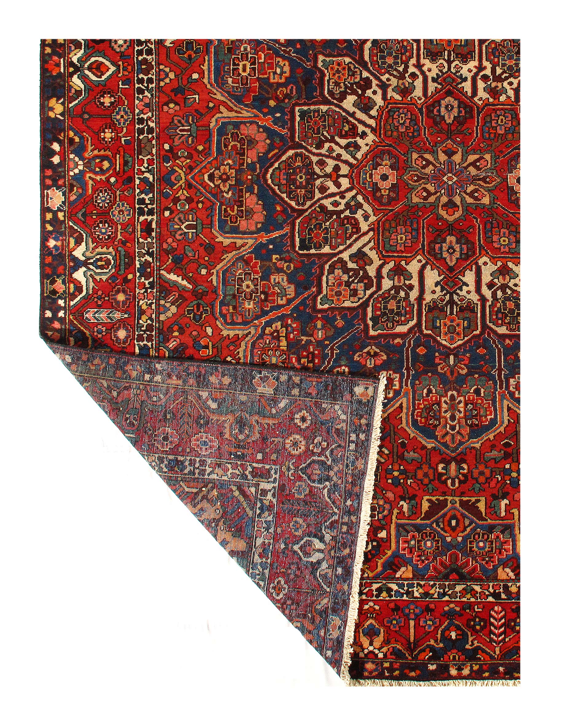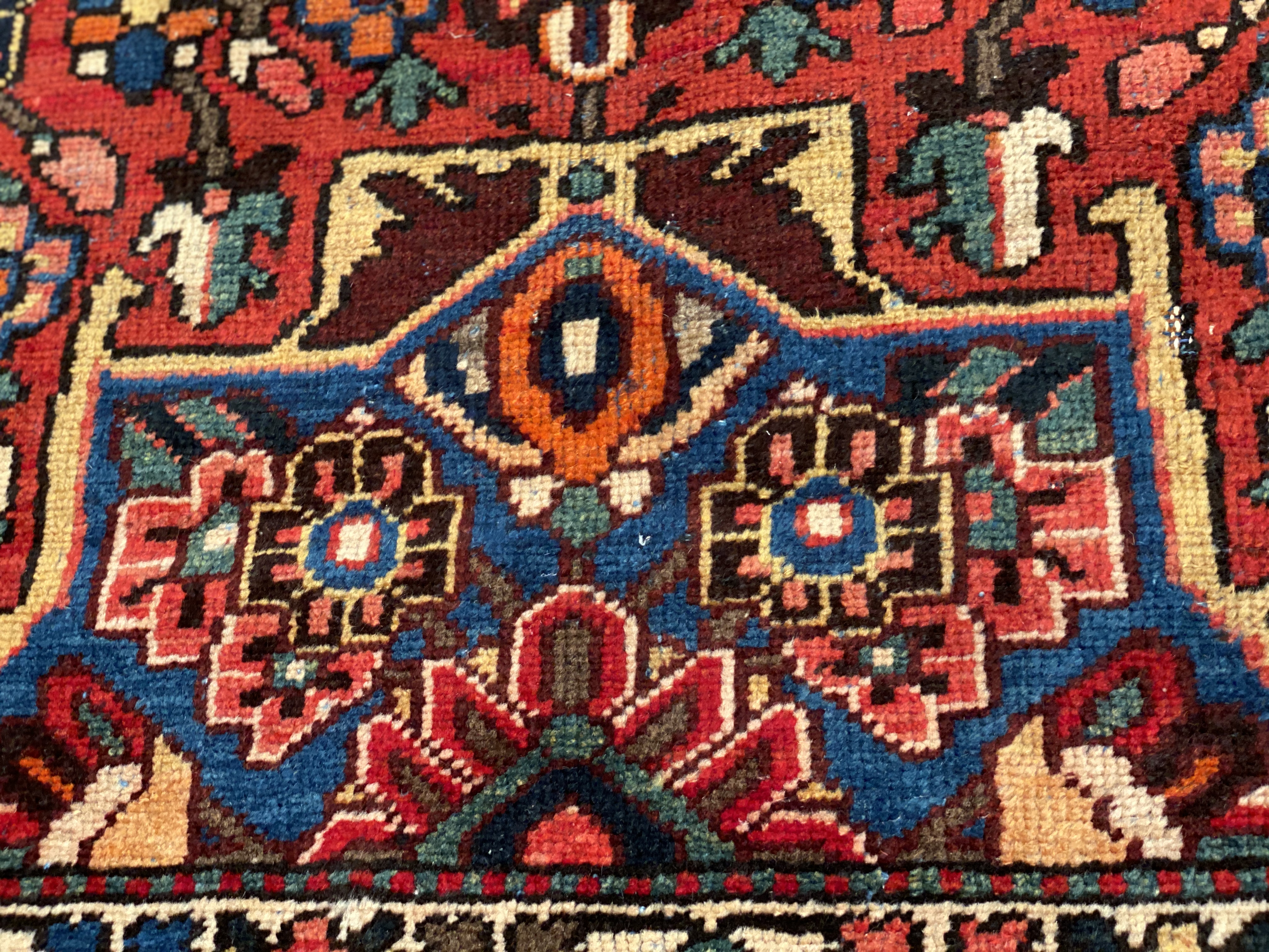 Persian Bakhtiari area rug. The luxurious hand-knotted pile is made from very fine lamb's wool and features a traditional Bakhtiari motif throughout. Handmade hand-knotted lamb's wool on a cotton foundation. This rug has a dense, soft pile, and excellent quality, to ensure that you will enjoy the look and feel of it for years to come.