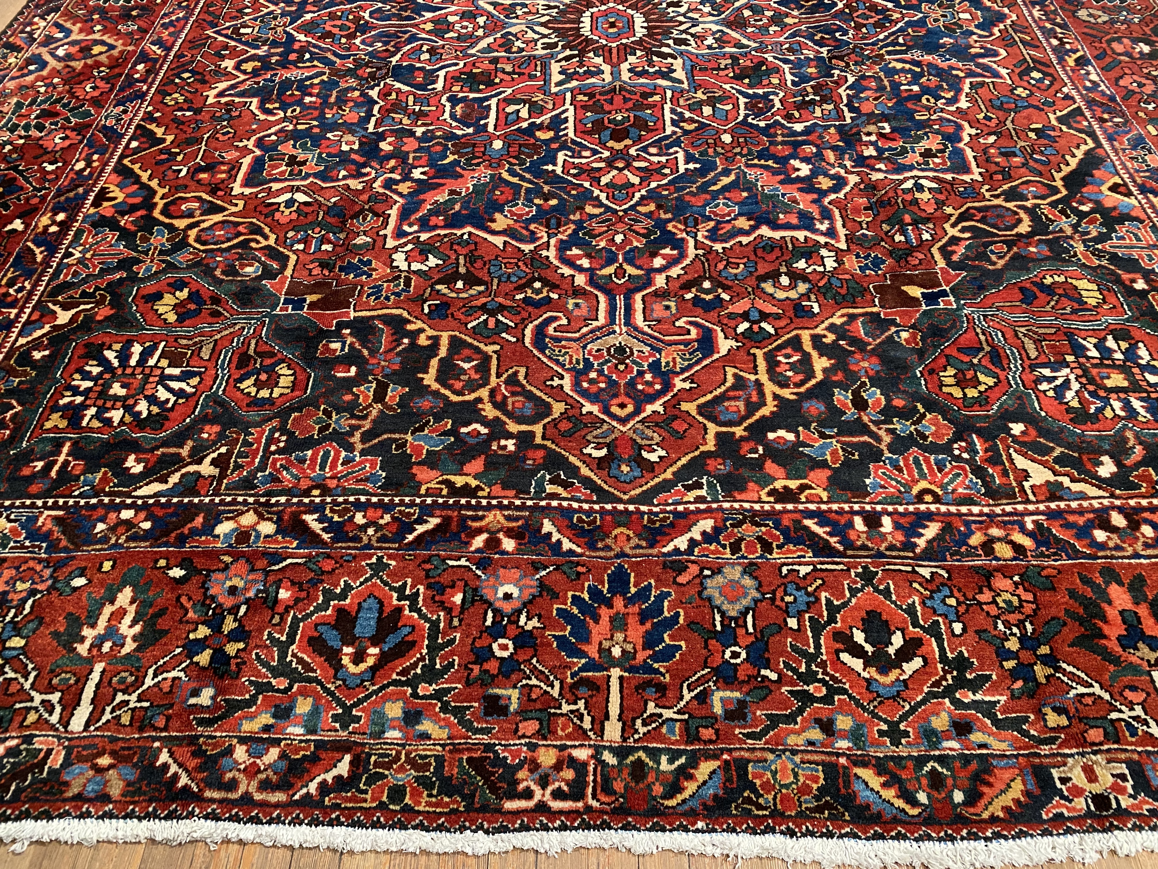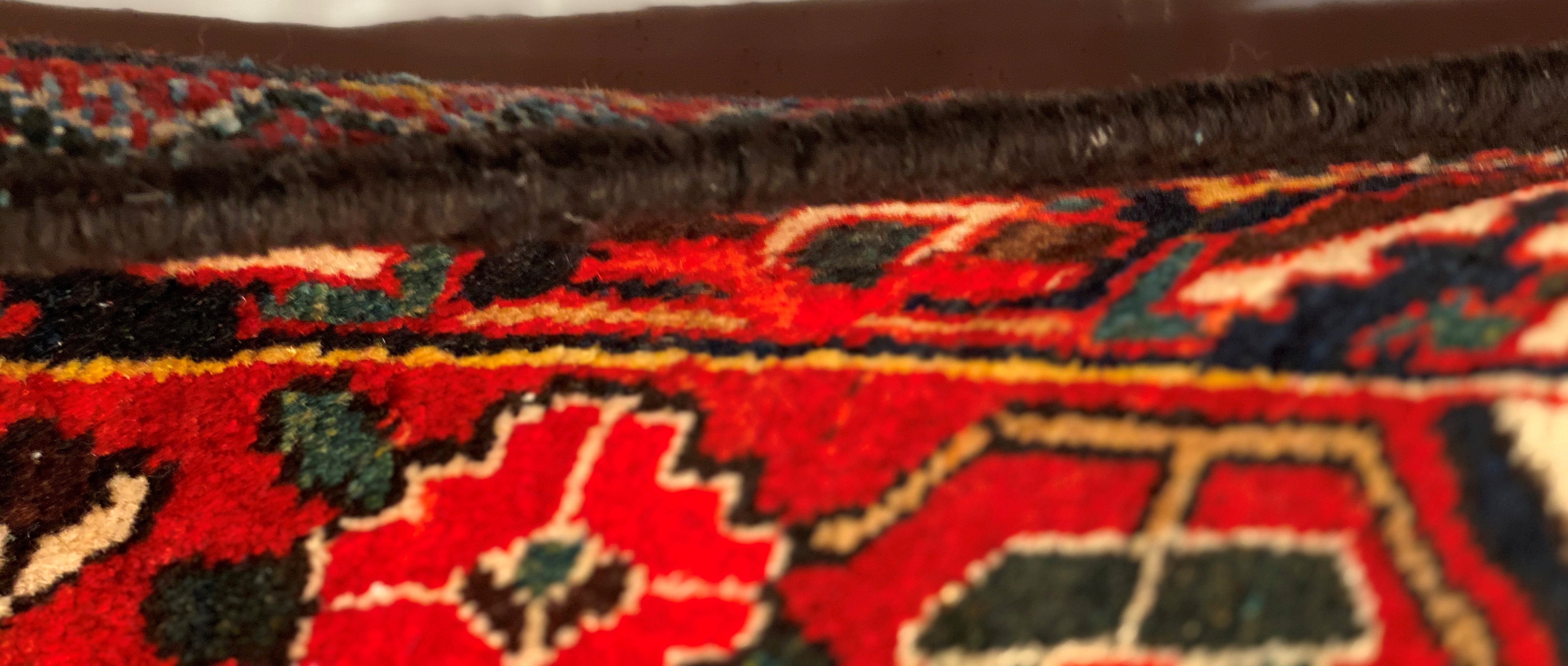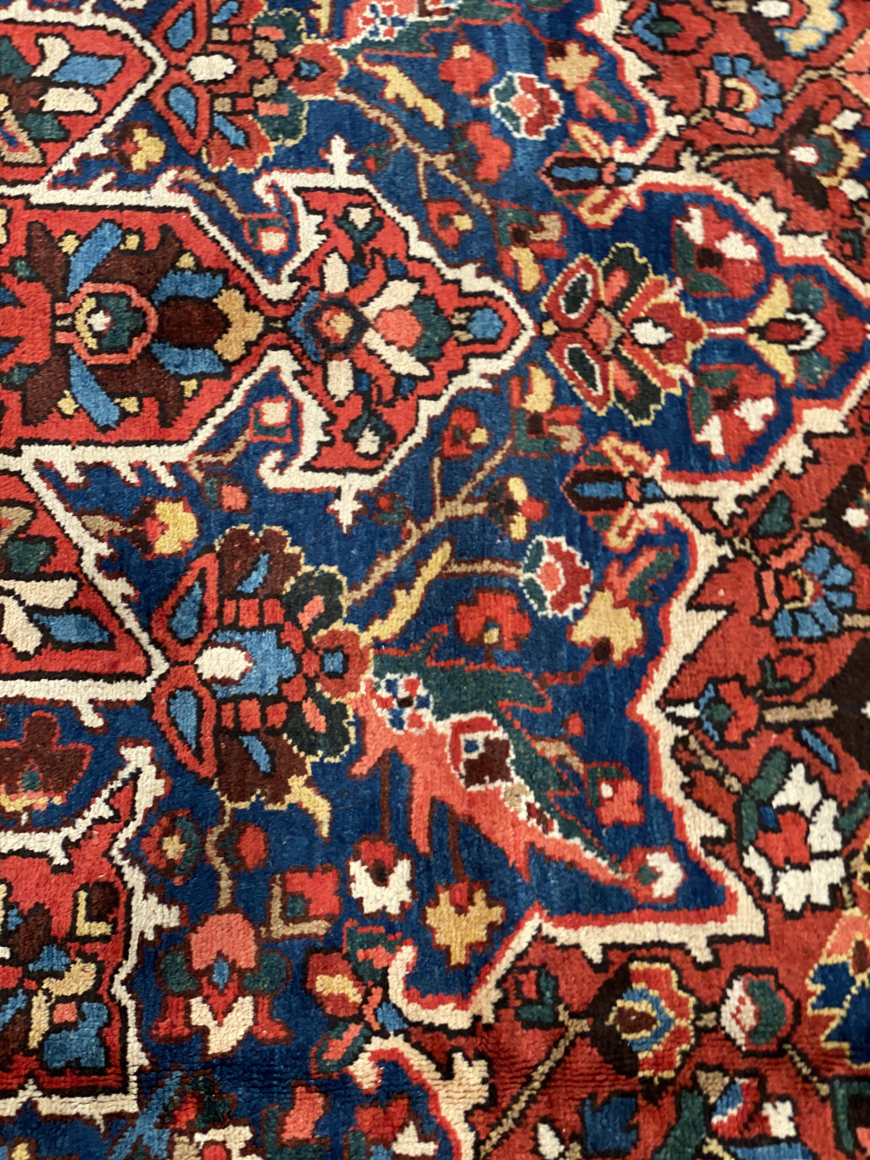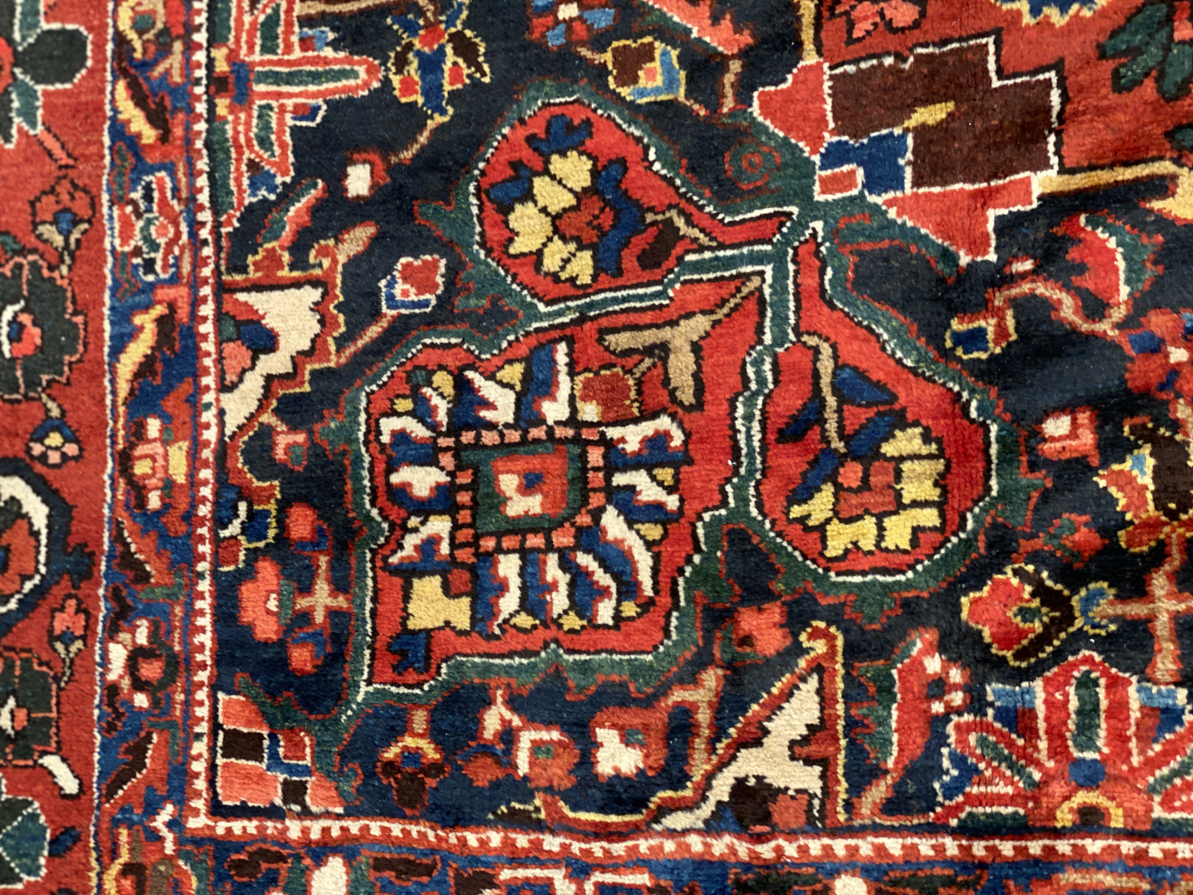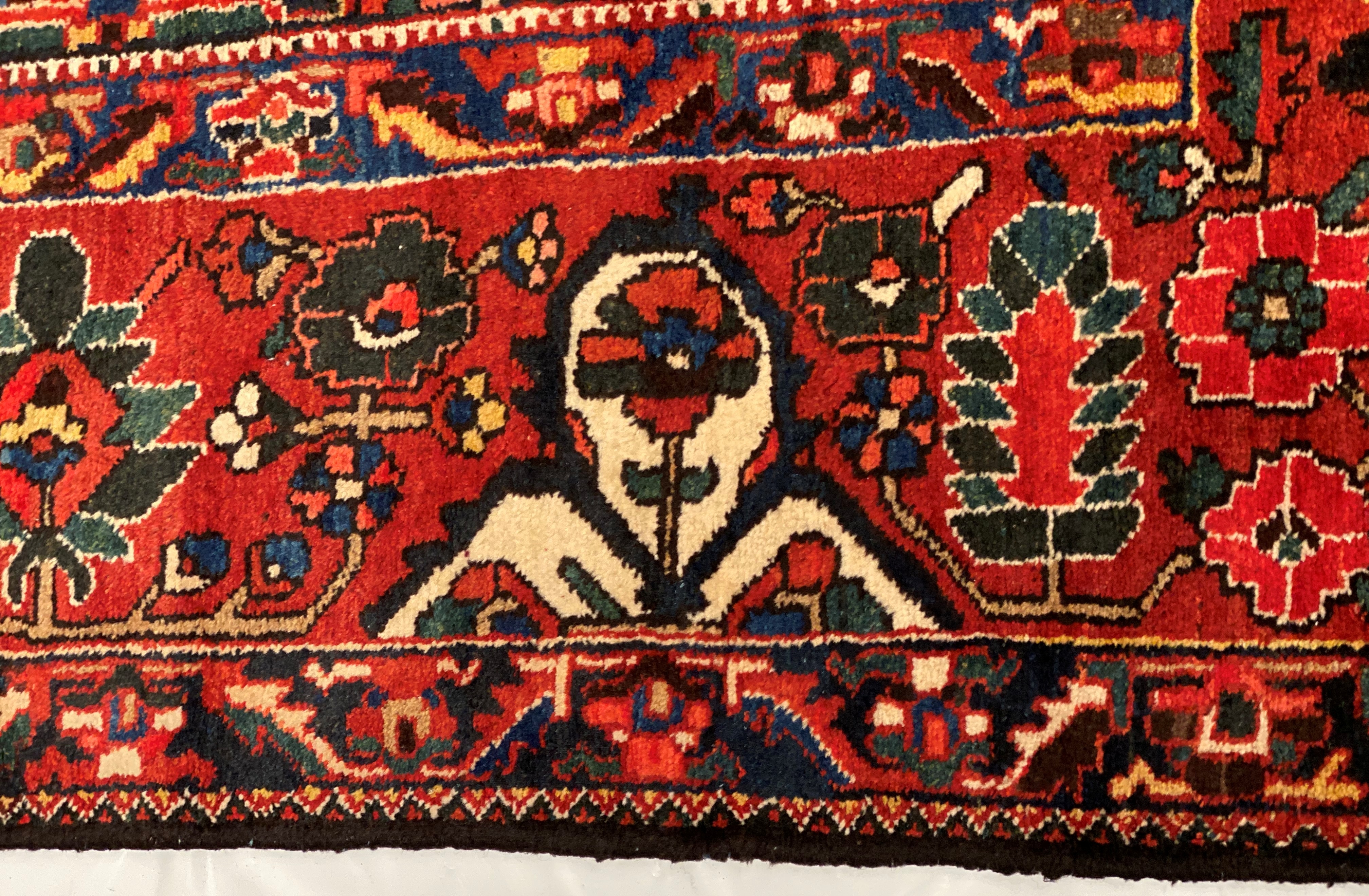 Persian Bakhtiari area rug. The luxurious hand-knotted pile is made from very fine lamb's wool and features a traditional Bakhtiari motif throughout. Handmade hand-knotted lamb's wool on a cotton foundation. This rug has a dense, soft pile, and excellent quality, to ensure that you will enjoy the look and feel of it for years to come.