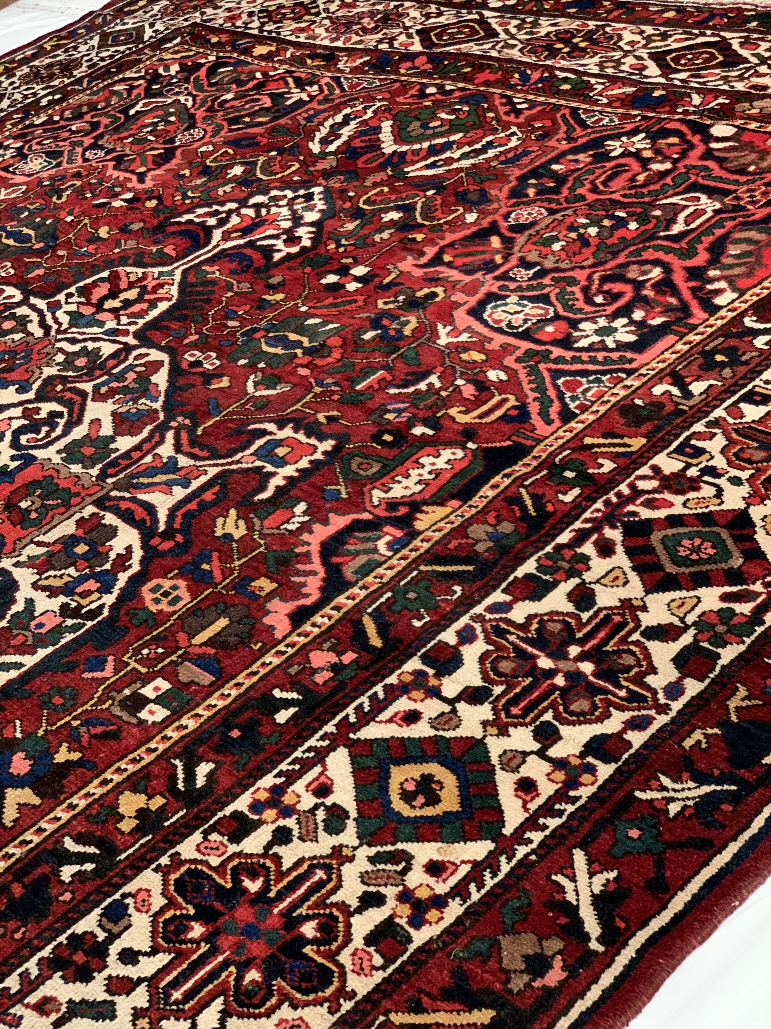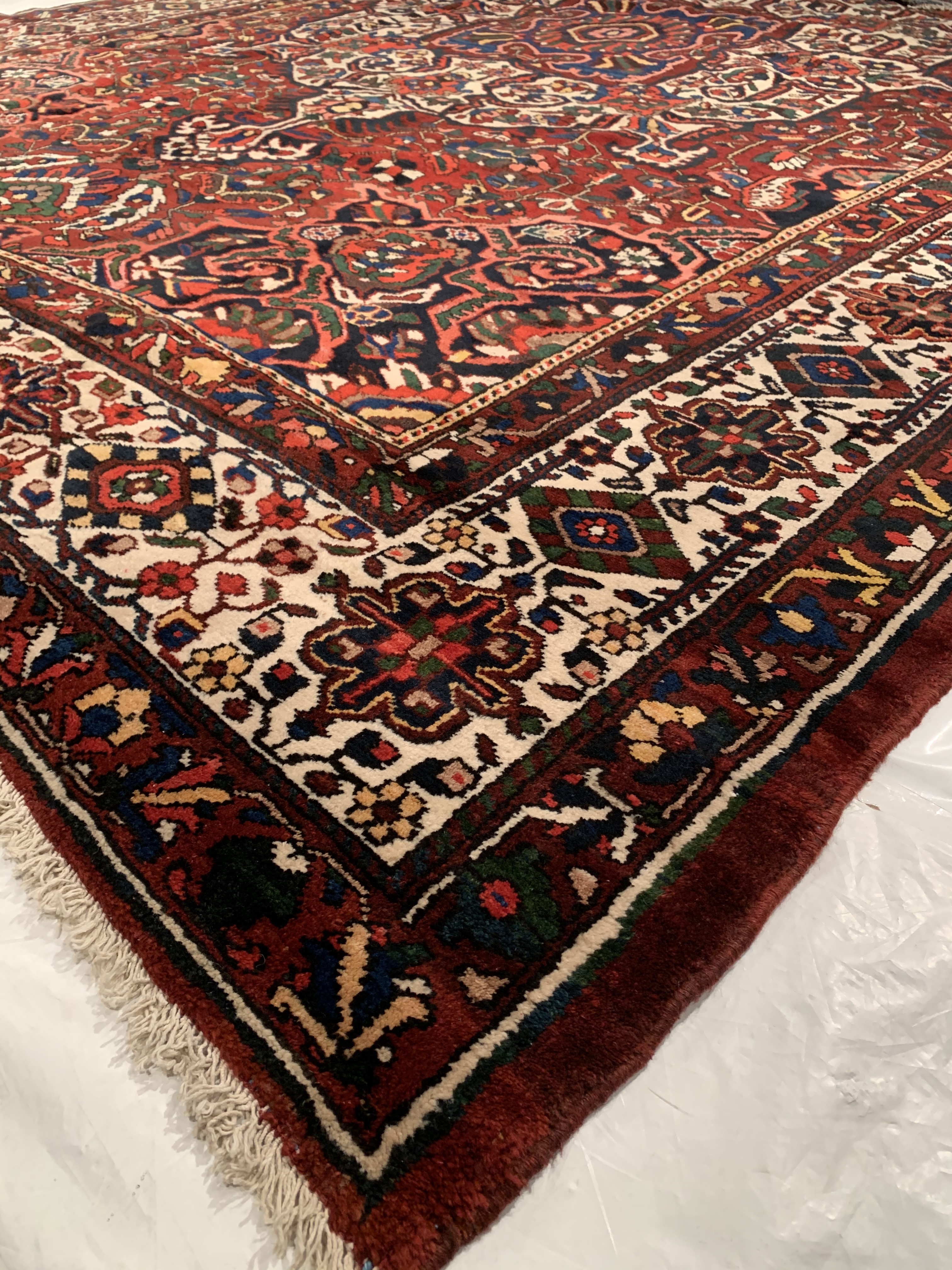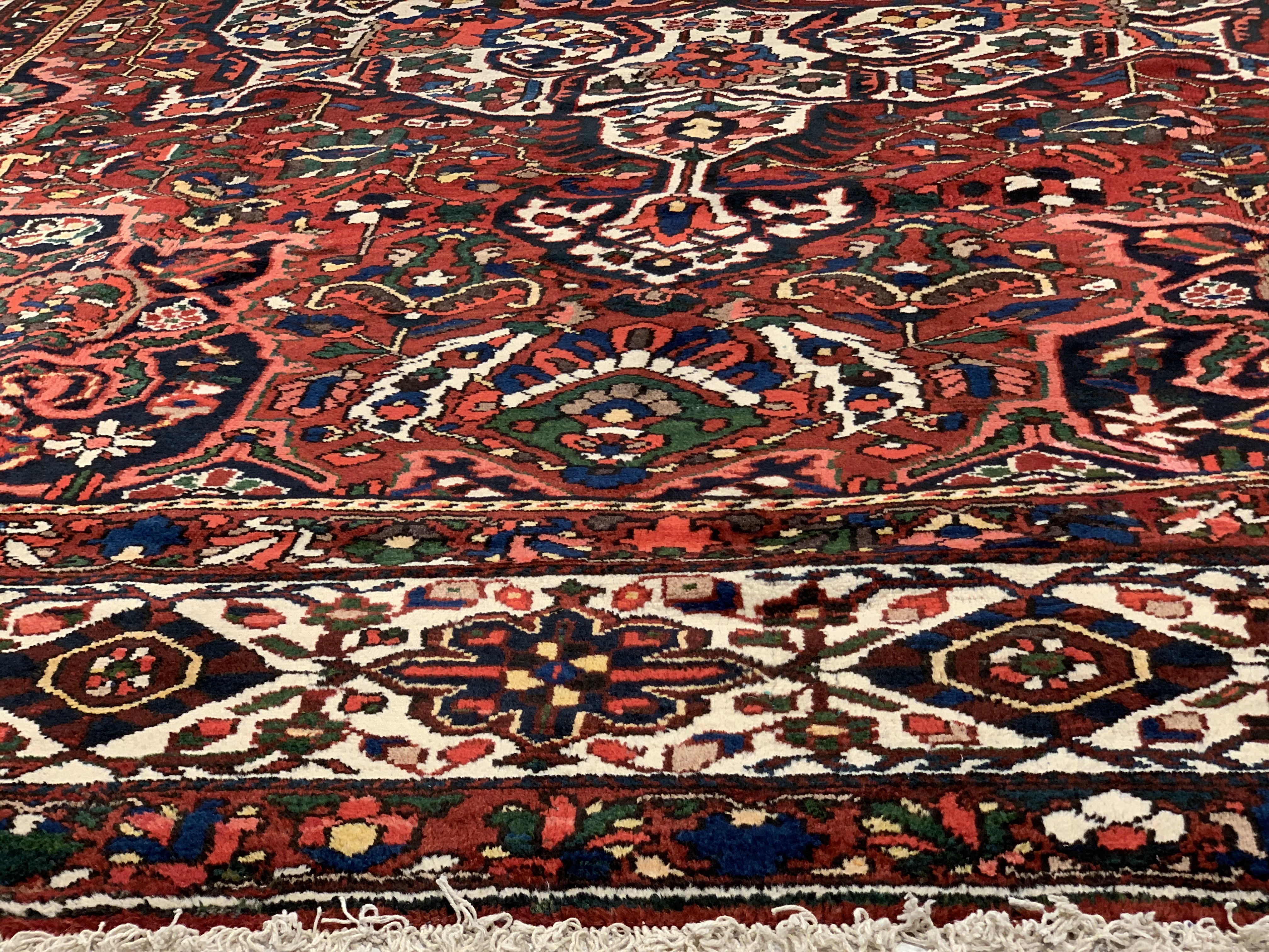 Persian Bakhtiari area rug. The luxurious hand-knotted pile is made from very fine lamb's wool and features a traditional Bakhtiari motif throughout. Handmade hand-knotted lamb's wool on a cotton foundation. This rug has a dense, soft pile, and excellent quality, to ensure that you will enjoy the look and feel of it for years to come.
