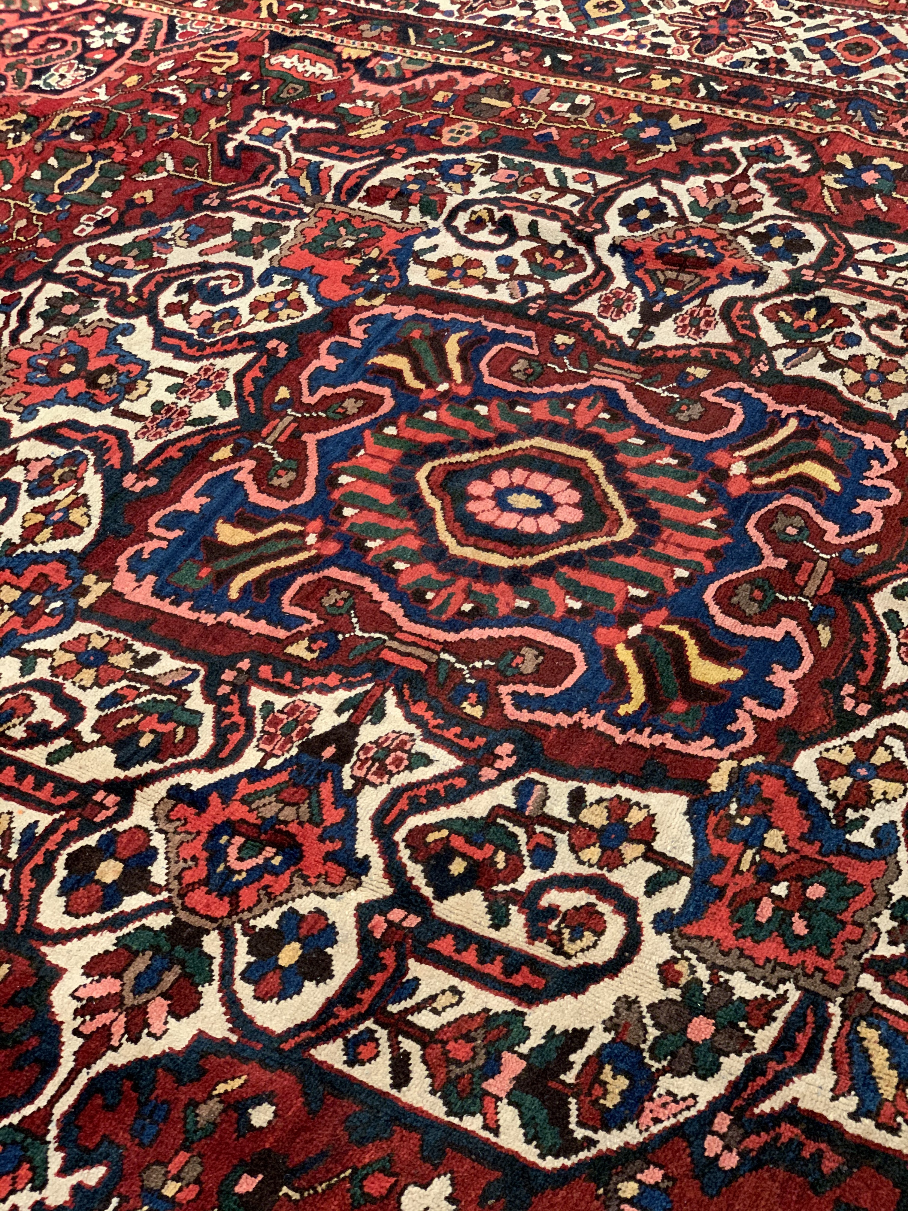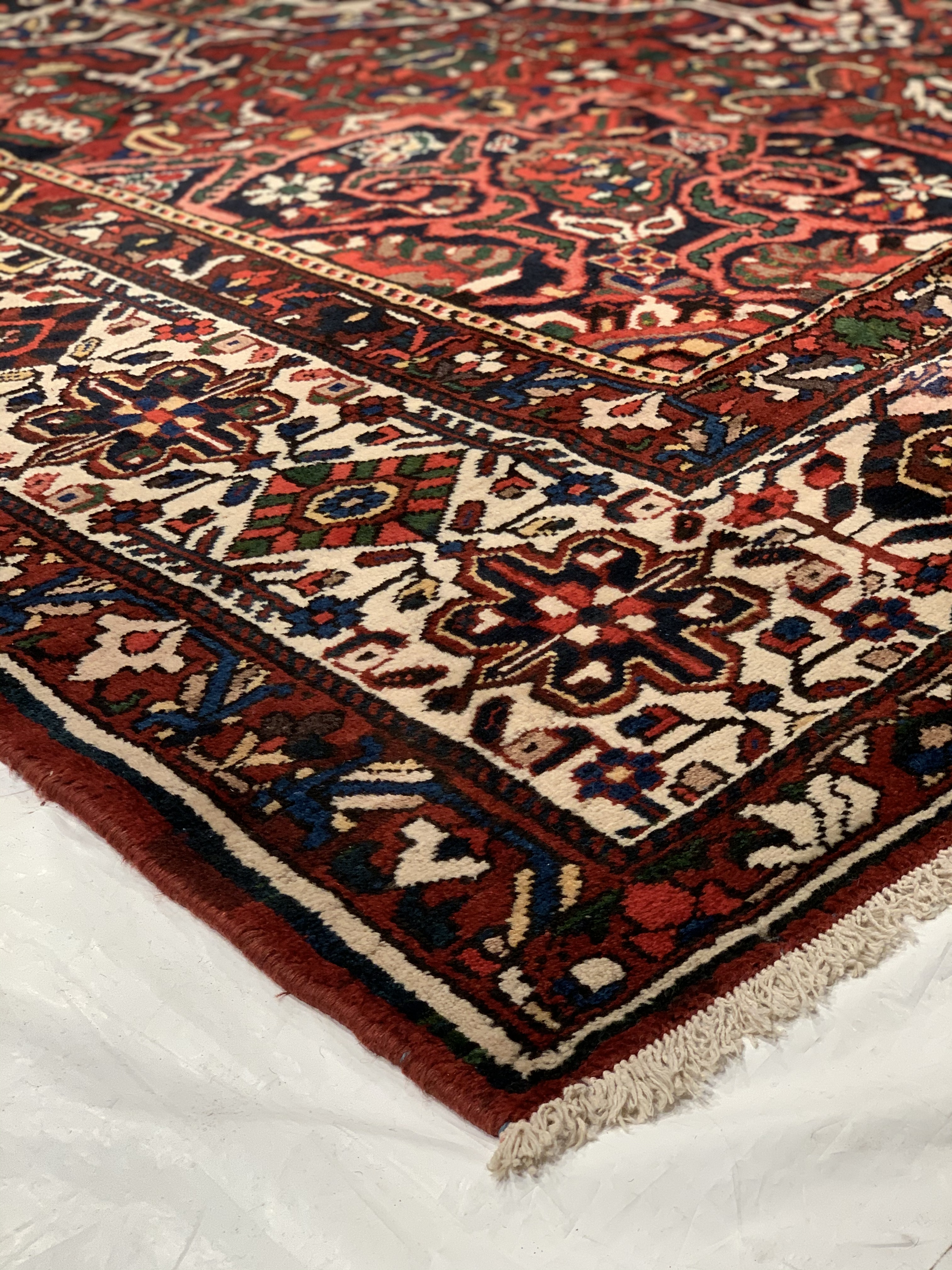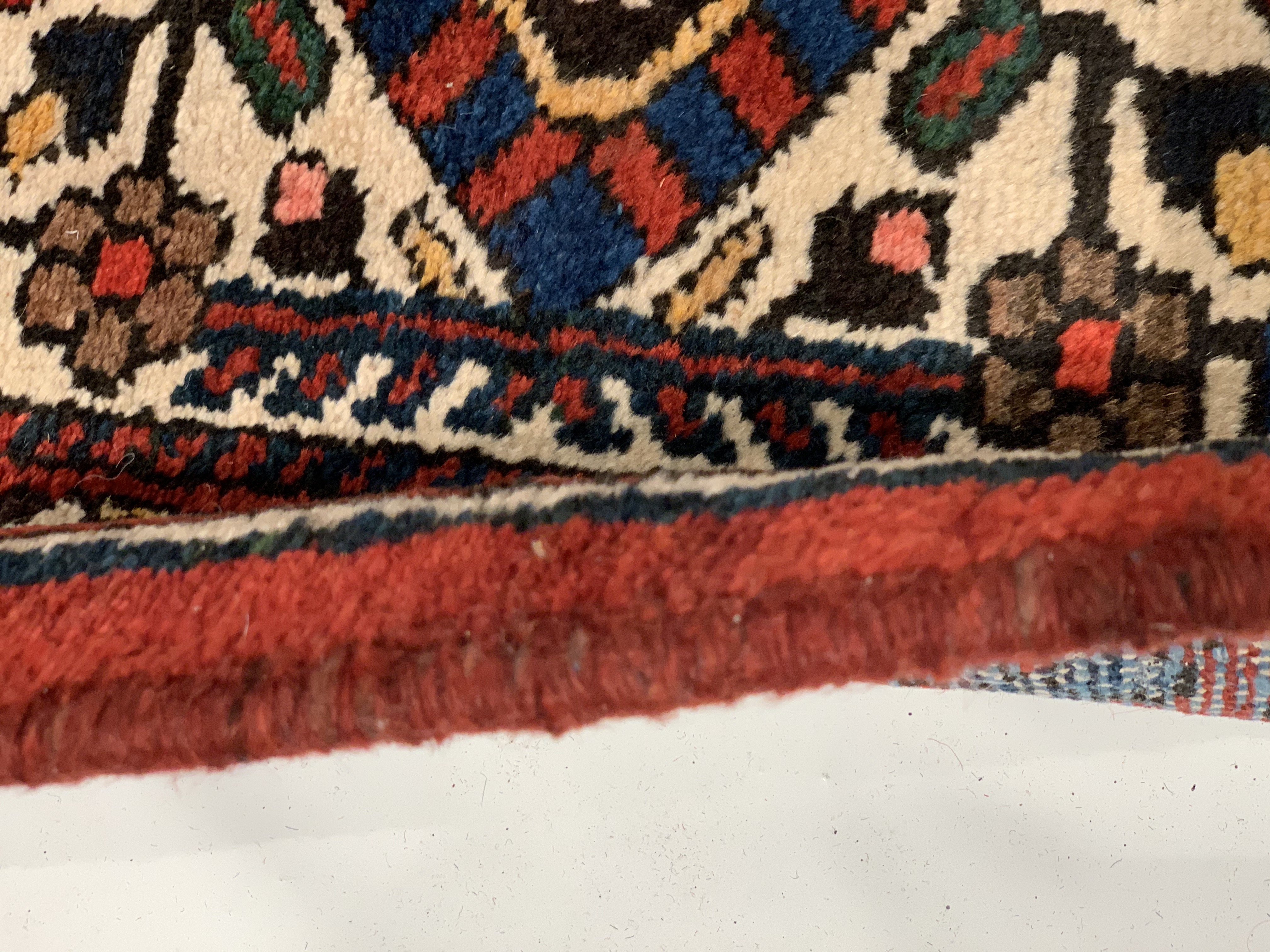 Persian Bakhtiari area rug. The luxurious hand-knotted pile is made from very fine lamb's wool and features a traditional Bakhtiari motif throughout. Handmade hand-knotted lamb's wool on a cotton foundation. This rug has a dense, soft pile, and excellent quality, to ensure that you will enjoy the look and feel of it for years to come.