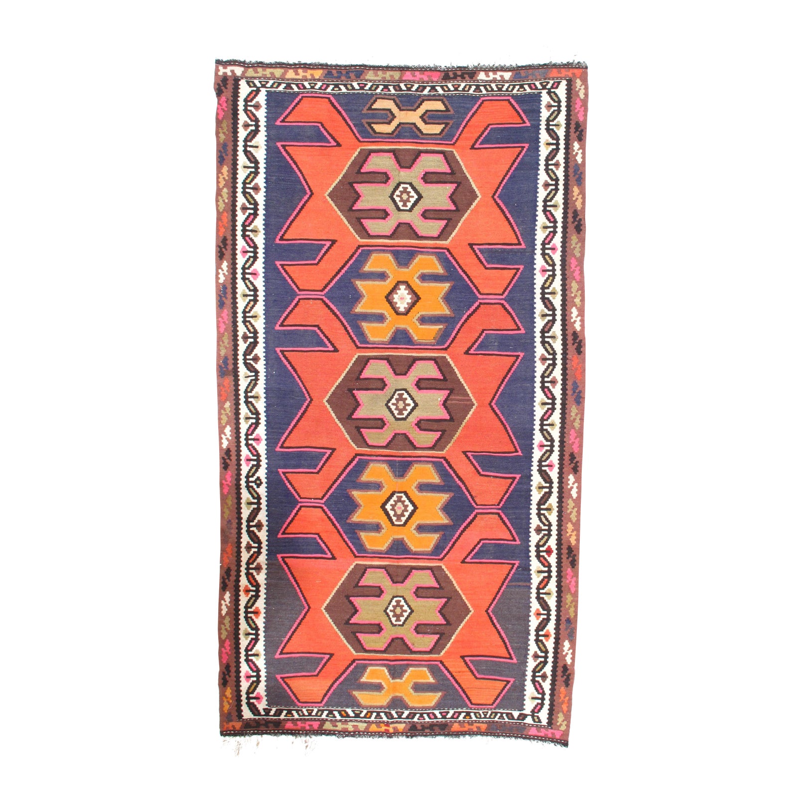 Semi-Antique Persian Shiraz Kilim Handmade Hand-woven. Lamb's Wool on a Wool Foundation. Very Fine Hand-Spun Wool Rug. Vegetable Dyed. Circa 1950
