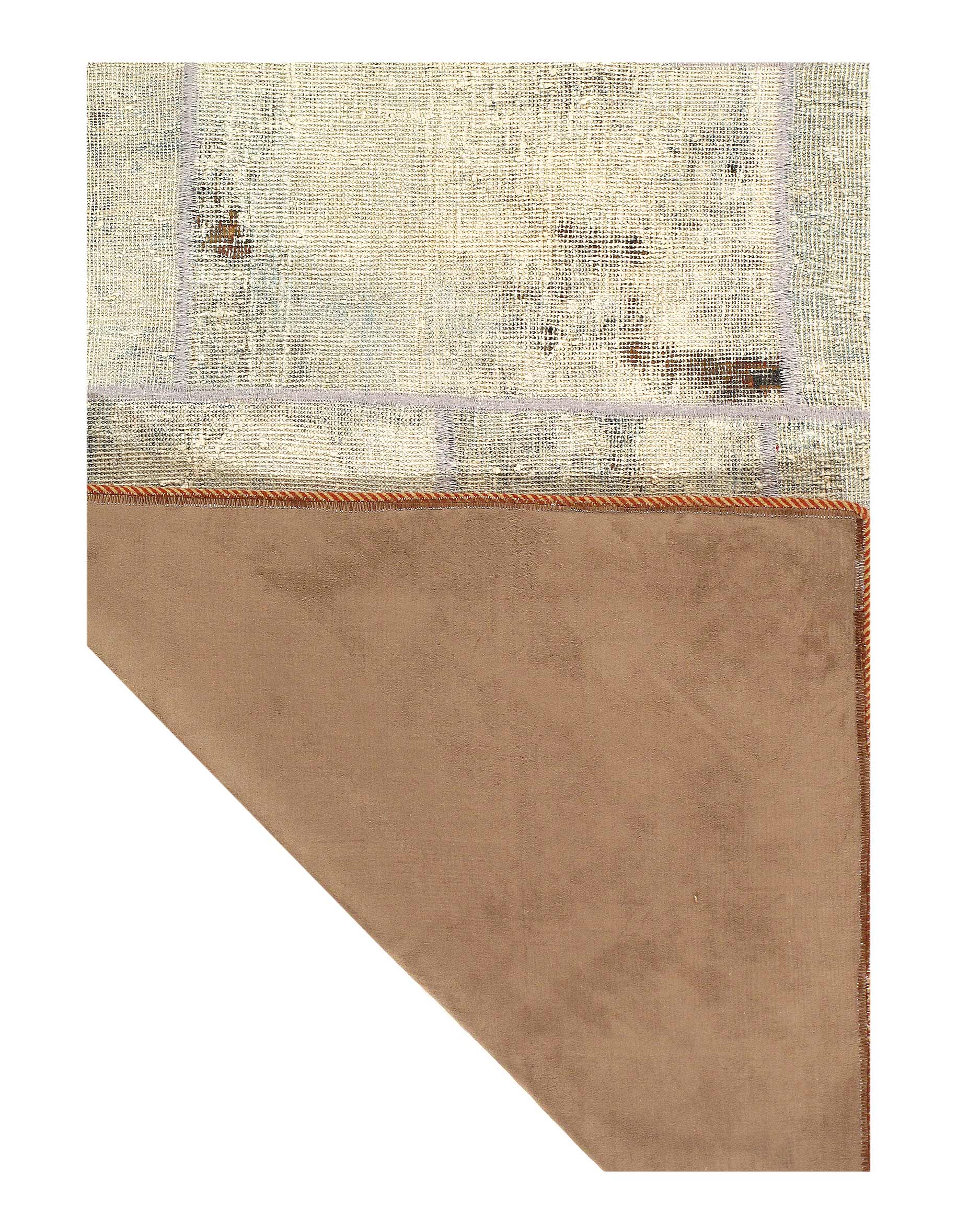 This vintage Persian rug is composed of various neutral-colored segments in a charming patchwork fashion. Colors include gray, Beige, ivory,