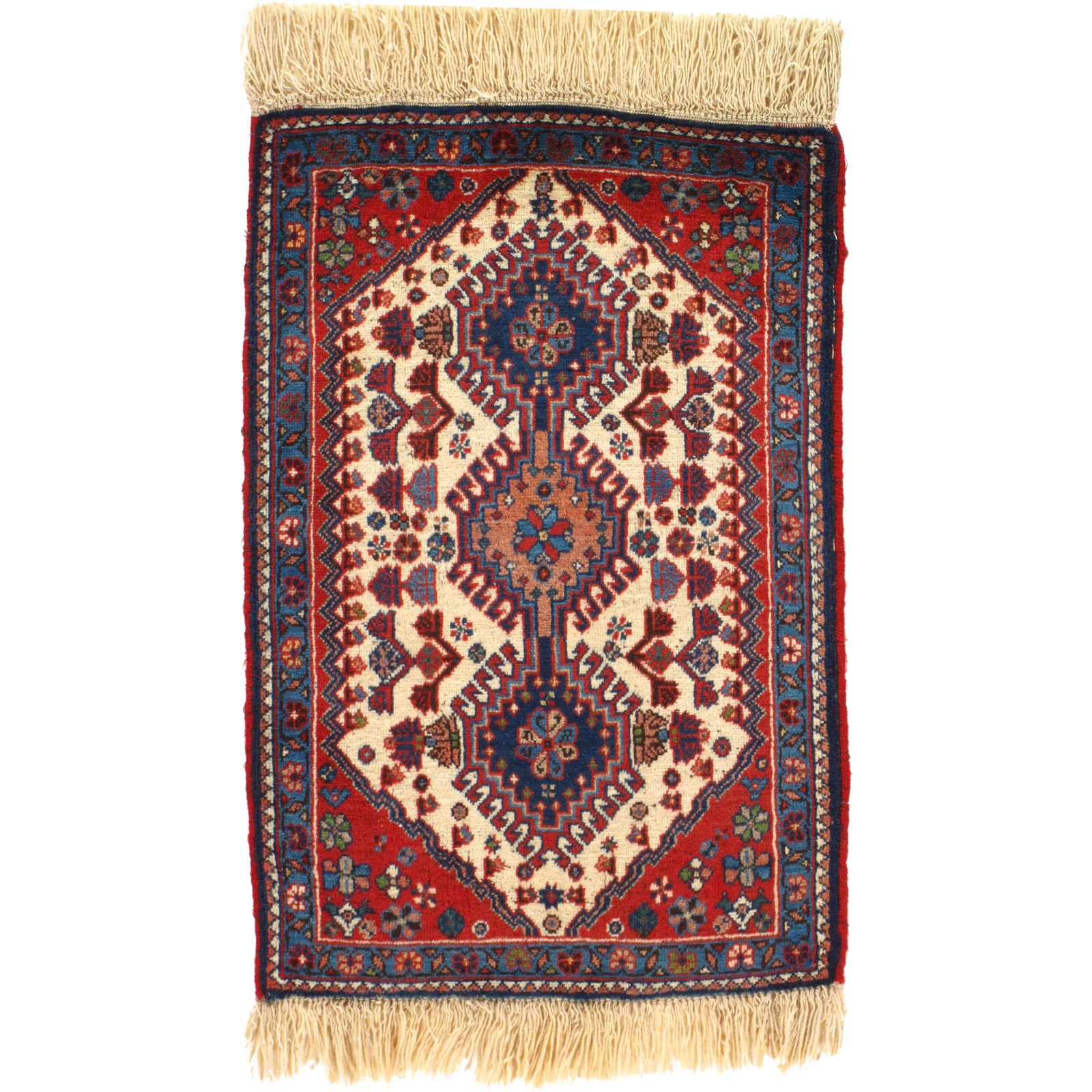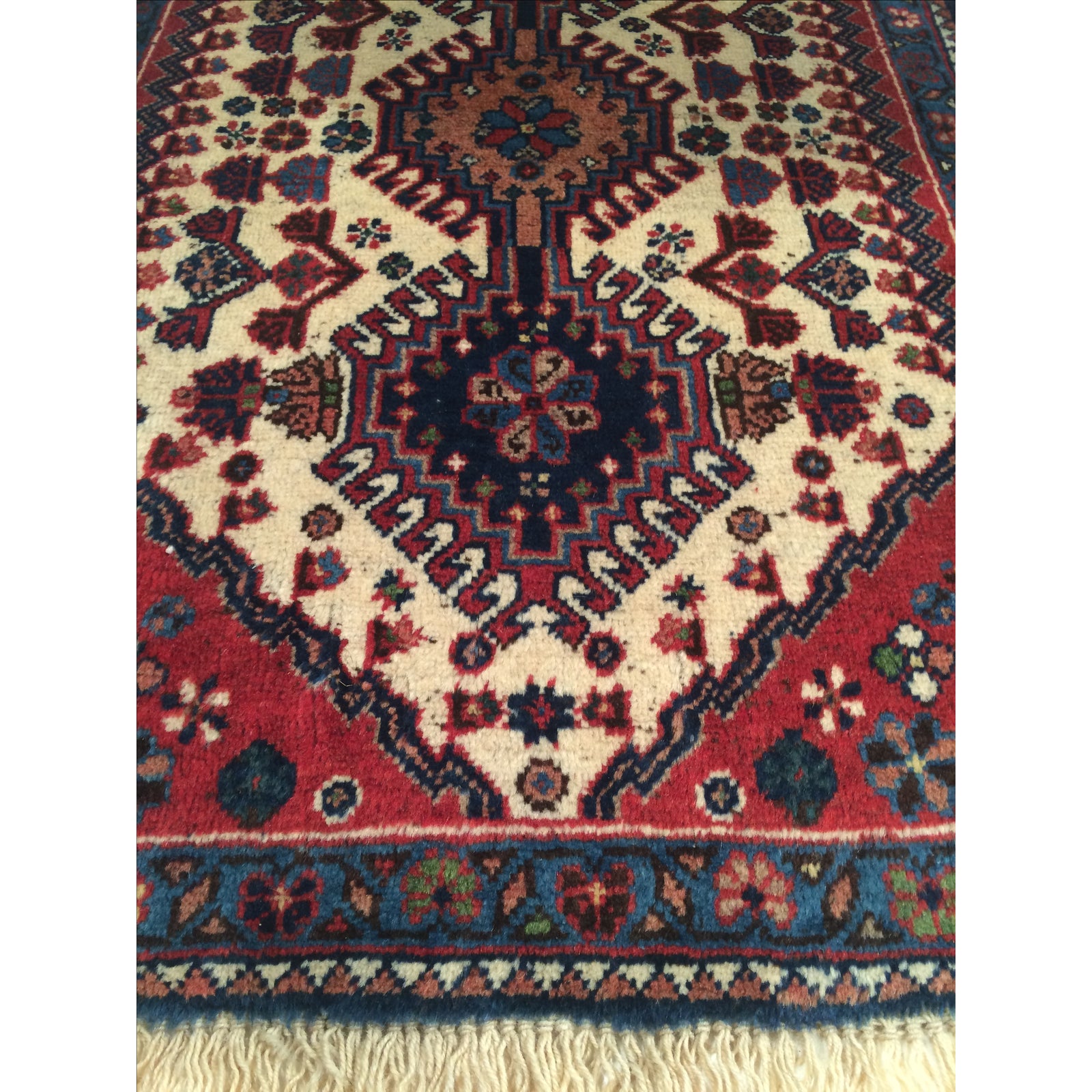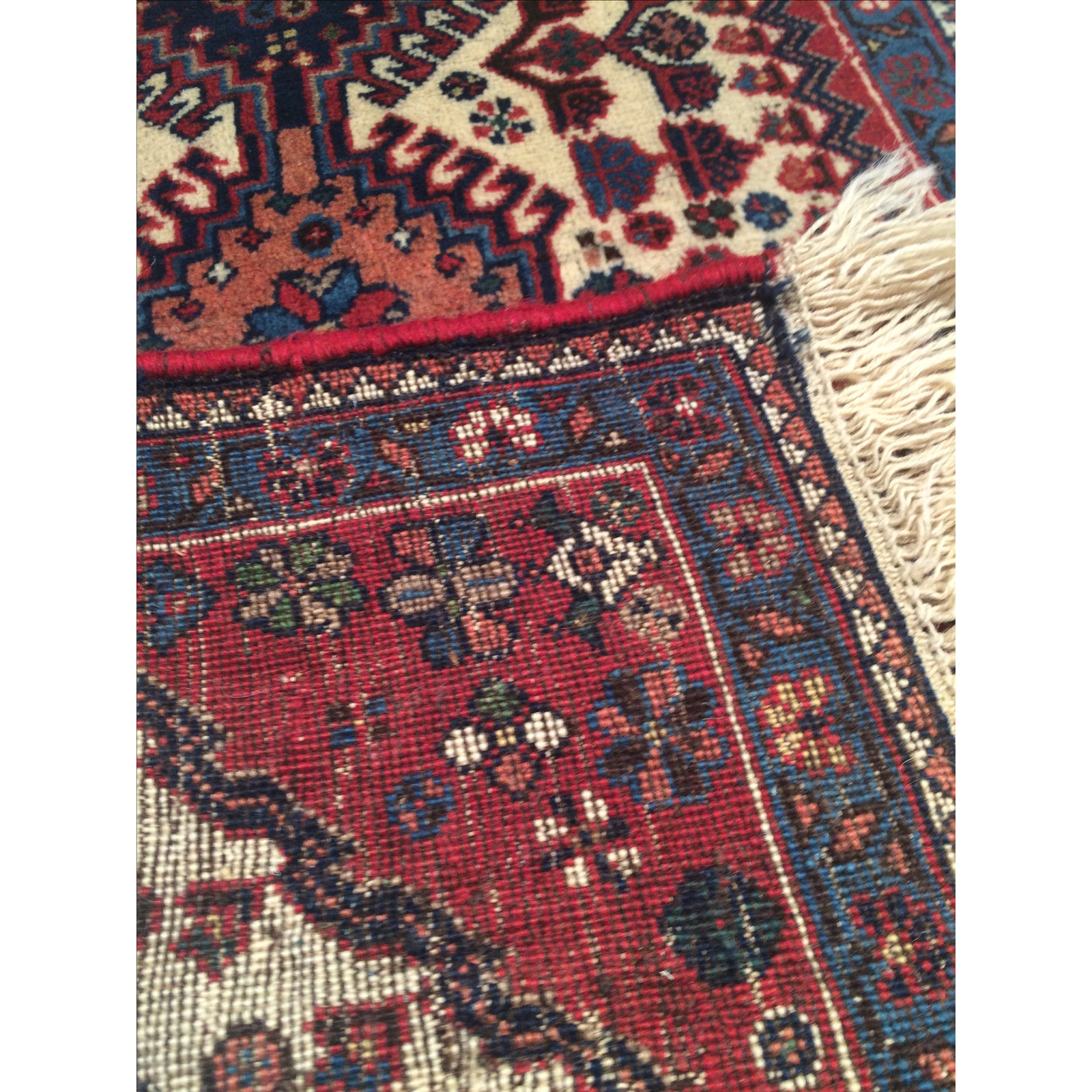 Hand knotted Yalameh rug. 100% lamb's wool and hand-spun lamb's wool rug with all natural dyes. Mint condition. From Persia.