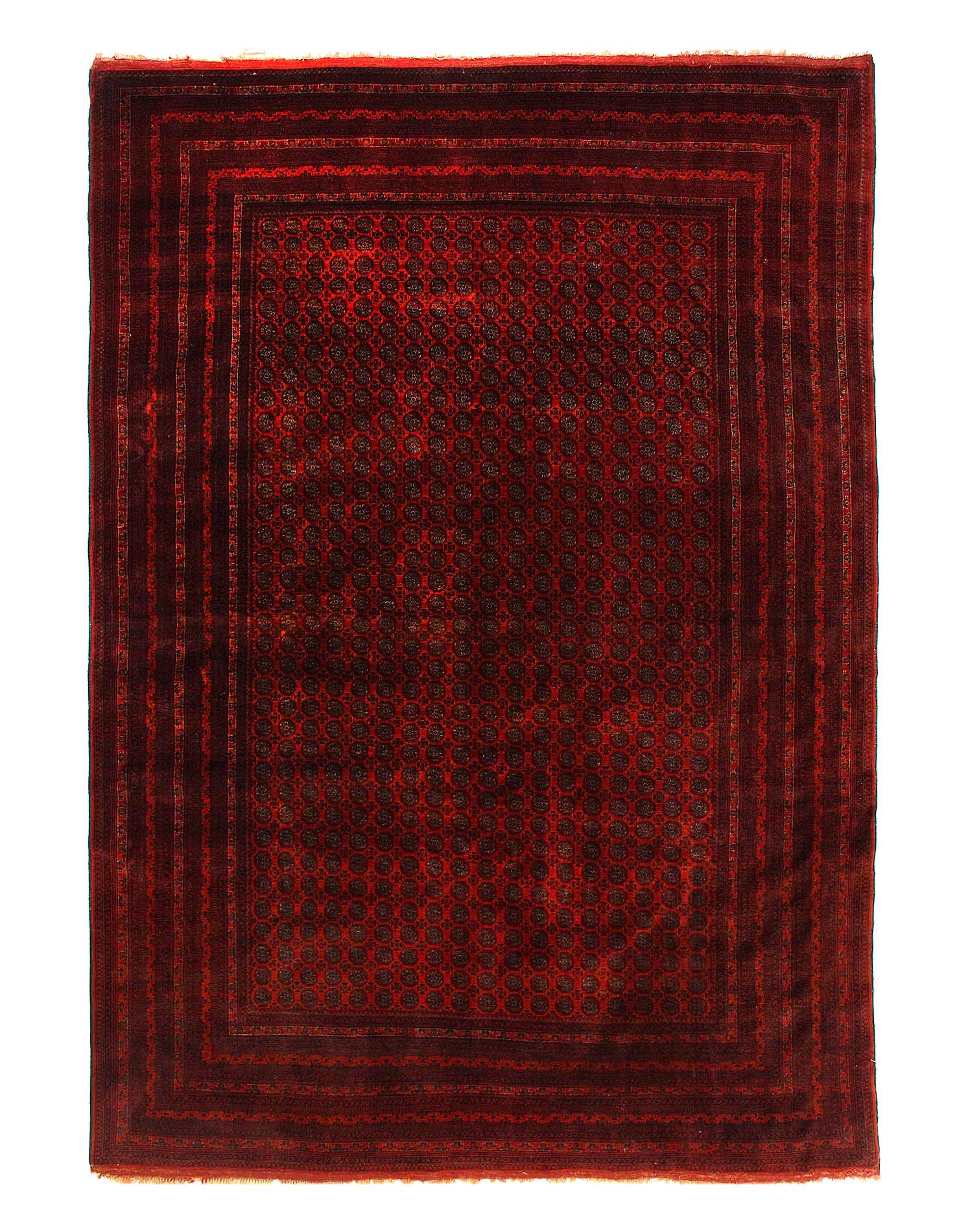 This Oriental rug is from the Yamoud collection and features an ornamental geometric pattern in a rich red color with subtle blue, orange, and cream accents. These rugs bring traditional sophistication to your home featuring 100% Premium wool, hand-knotted into elegant designs, perfect for your traditional decor. The varying pile heights will add a spark of interest to these rugs. Each rug has a dense, soft pile and excellent quality, to ensure that you will enjoy the look and feel of your rug for years to come. From Afghanistan