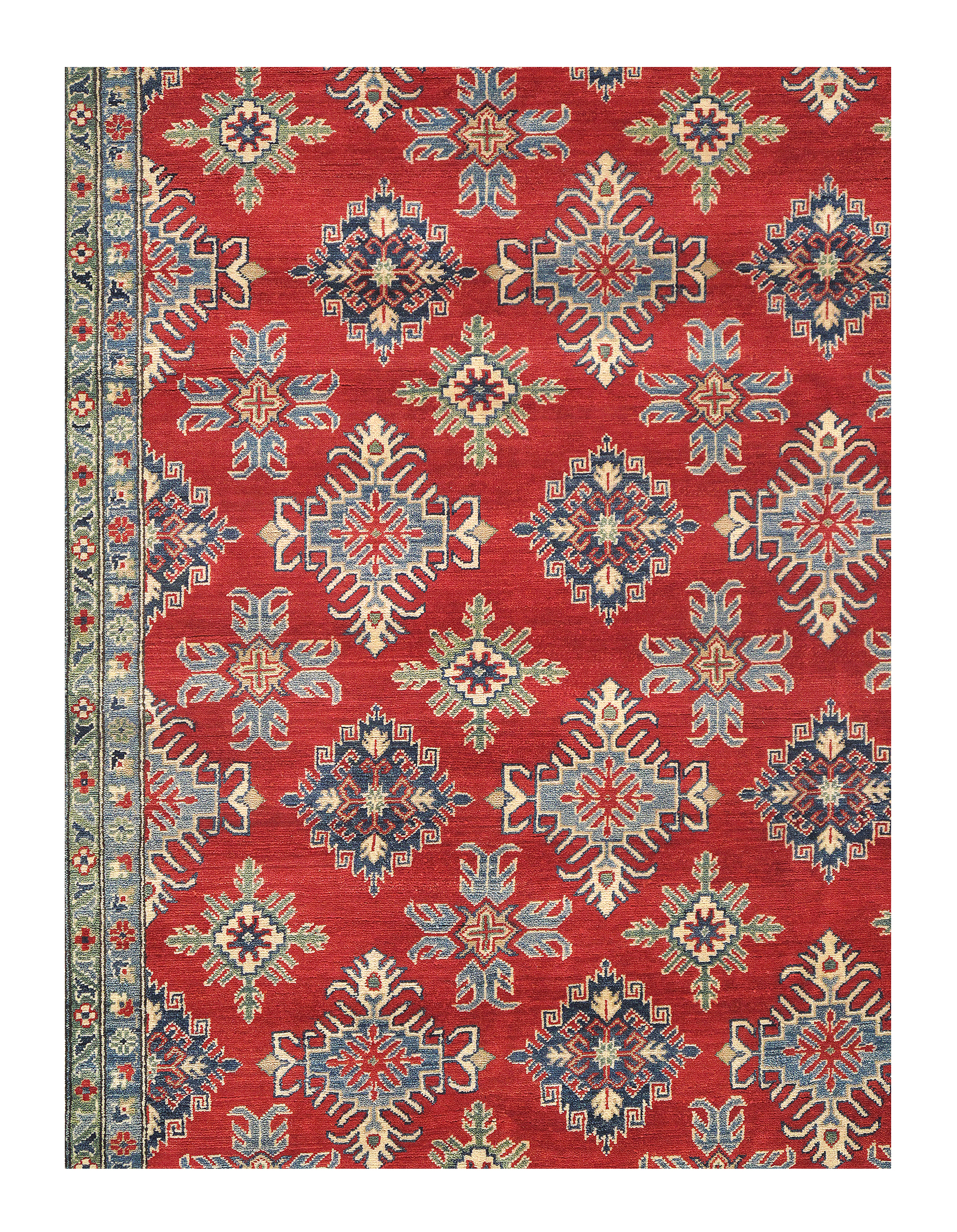 The Fine Kazak Collection of area rugs takes its source from Caucasian rugs of the Kazak areas. Multiple medallions, centralized patterns, and allover layouts have all been given a geometric treatment. These rugs are moderately thin and relatively coarsely knotted. Caucasian designs have always been popular for scatter rugs in virtually every decorative context.