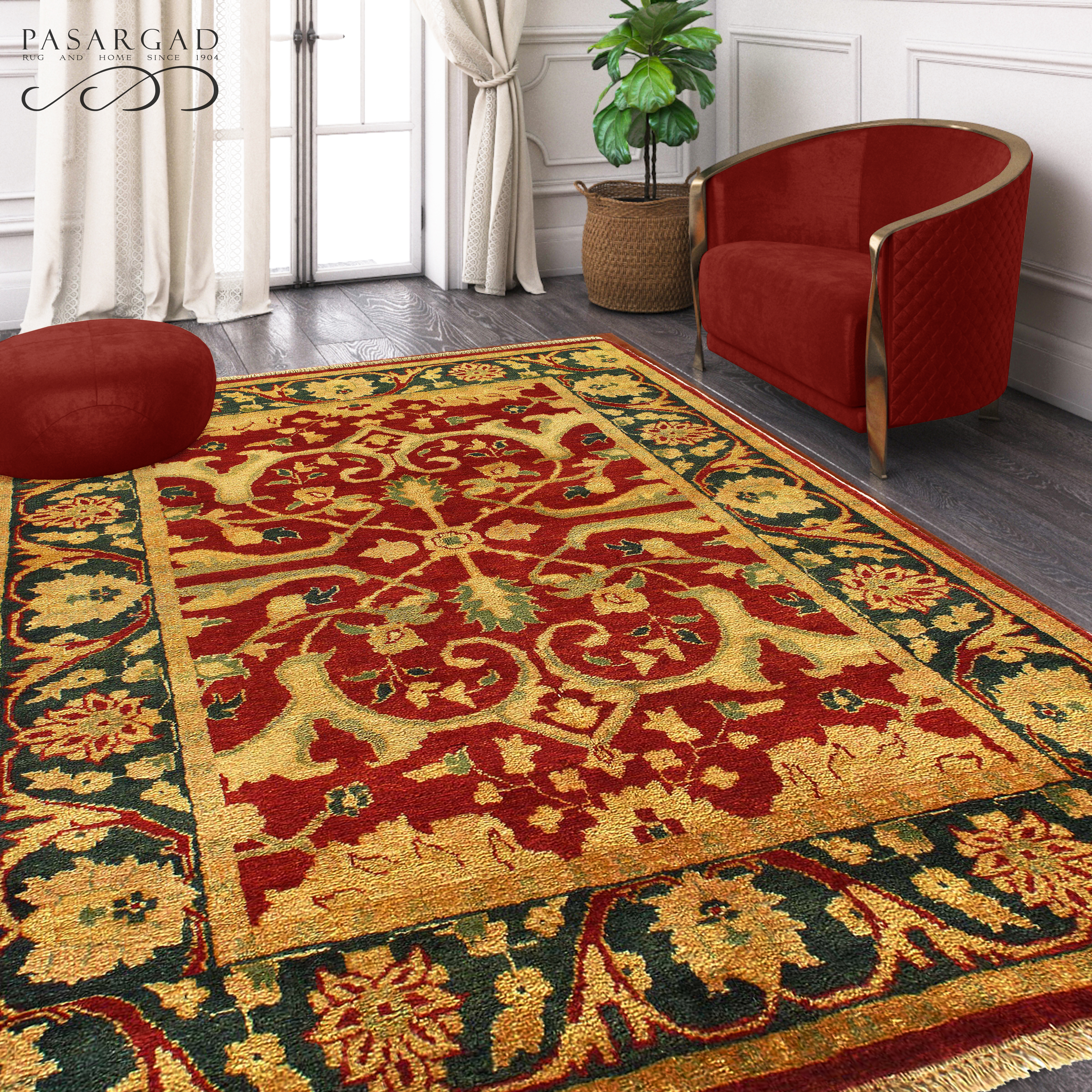 Add a fresh accent to your home with a new rug from the Agra collection. Agra collection is inspired by timeless, traditional designs. Each of these magnificent rugs is crafted using a hand-knotted construction with a softest lamb's wool pile by talented artisans of northern India and will show beautifully for years. This rug is a versatile, stylish and environmentally conscientious choice as it is made from 100% natural fibers