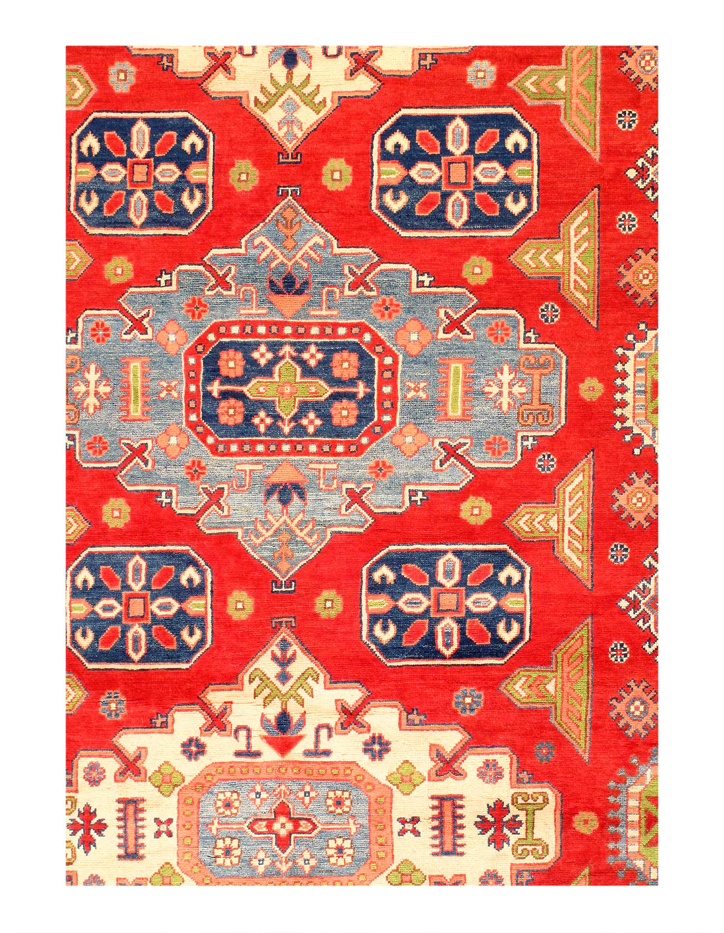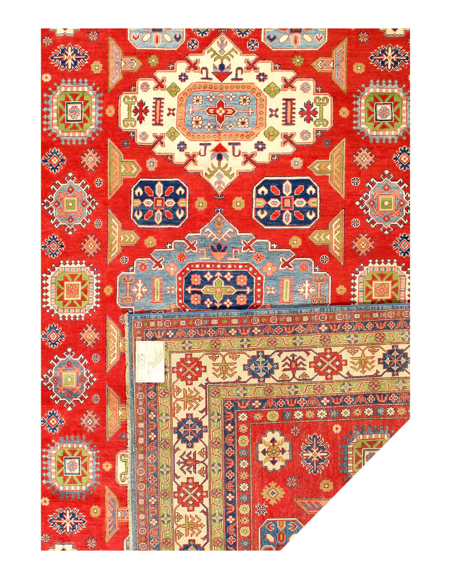Original Super Kazak Rug.Handmade Hand-knotted,Very Practical for High Traffic,Hand-Spun Lamb's Wool on a Cotton Foundation,Vegetable Dyed,This rug is handmade from 100-percent premium, hand-spun wool, and employ ancient pot-dying techniques to give them their authentic look.This rug is handmade from 100-percent premium, hand-spun wool, and employ ancient pot-dying techniques to give them their authentic look.Kazak is a modern shape of old Caucasian rugs which strictly adheres to traditional design elements of the Caucasus. It has elements such as the stepped hooked polygons, geometrical medallions and rosettes, presented in more stylized manner and with a new dimension. Natural dyes produce soft luminous shades and abrashes causing a beautiful sheen. Hand spun wool yarn is normally used in the variety of vibrant warm colors. Kazaks rugs in our collection are all fine quality pieces from Pakistan made with Ghazni handspun wool and natural dyes.