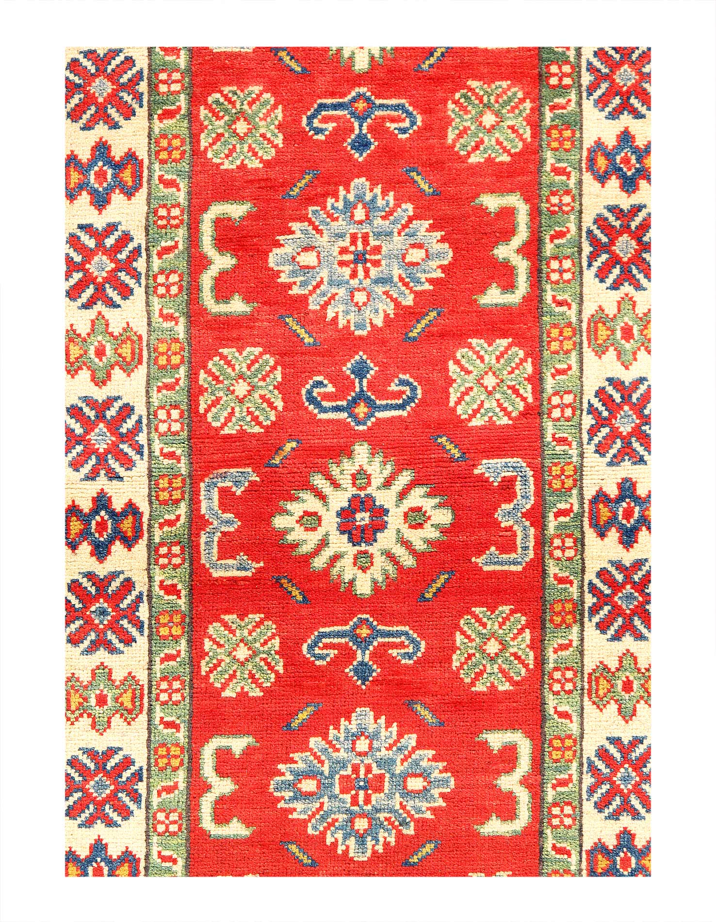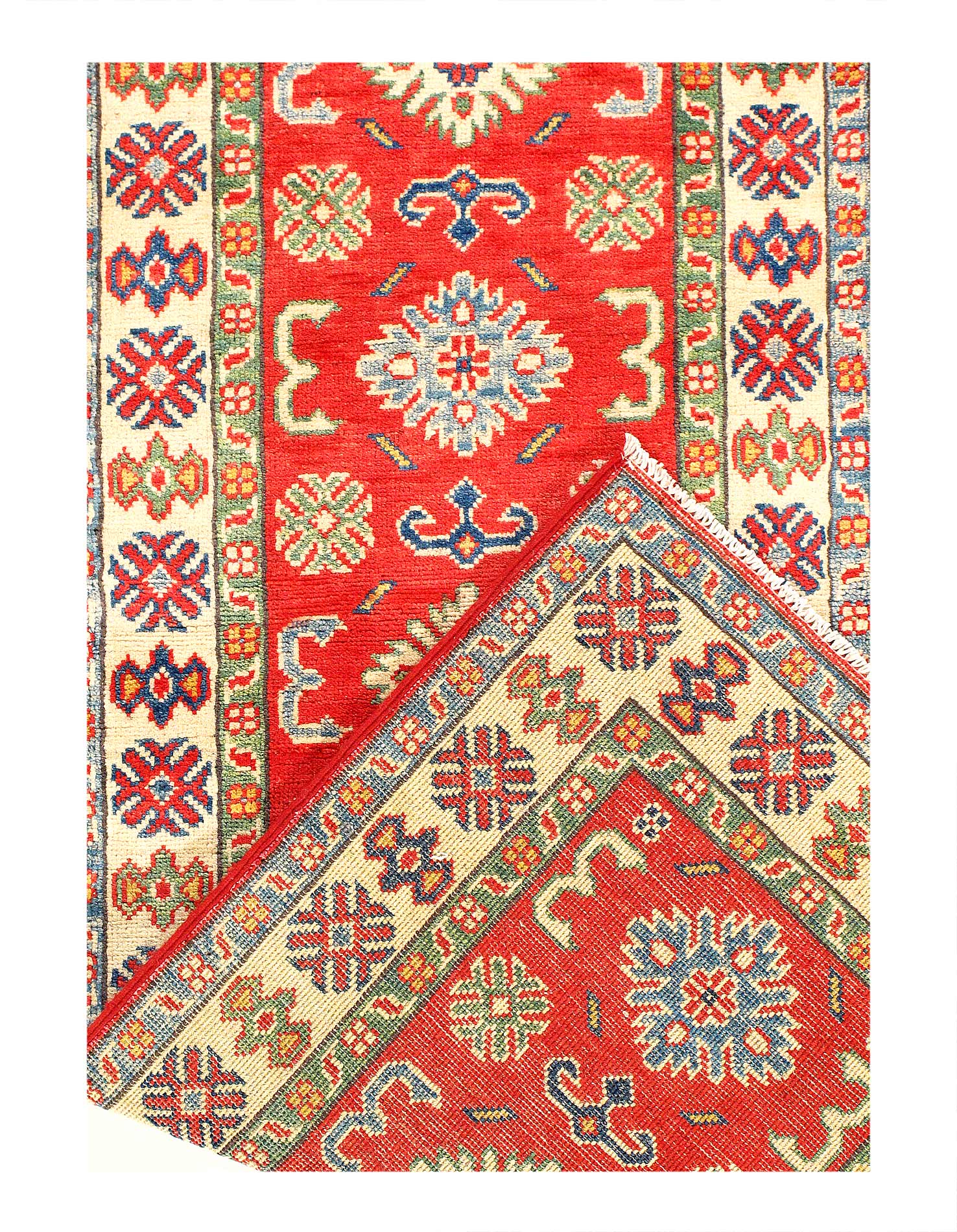 Original Super Kazak Rug. Handmade Hand-knotted,Very Practical for High Traffic,Hand-Spun Lamb's Wool on a Cotton Foundation,Vegetable Dyed,This rug is handmade from 100-percent premium, hand-spun wool, and employ ancient pot-dying techniques to give them their authentic look.Kazak is a modern shape of old Caucasian rugs which strictly adheres to traditional design elements of the Caucasus. It has elements such as the stepped hooked polygons, geometrical medallions and rosettes, presented in more stylized manner and with a new dimension. Natural dyes produce soft luminous shades and abrashes causing a beautiful sheen. Hand spun wool yarn is normally used in the variety of vibrant warm colors. Kazaks rugs in our collection are all fine quality pieces from Pakistan made with Ghazni hand spun wool and natural dyes.