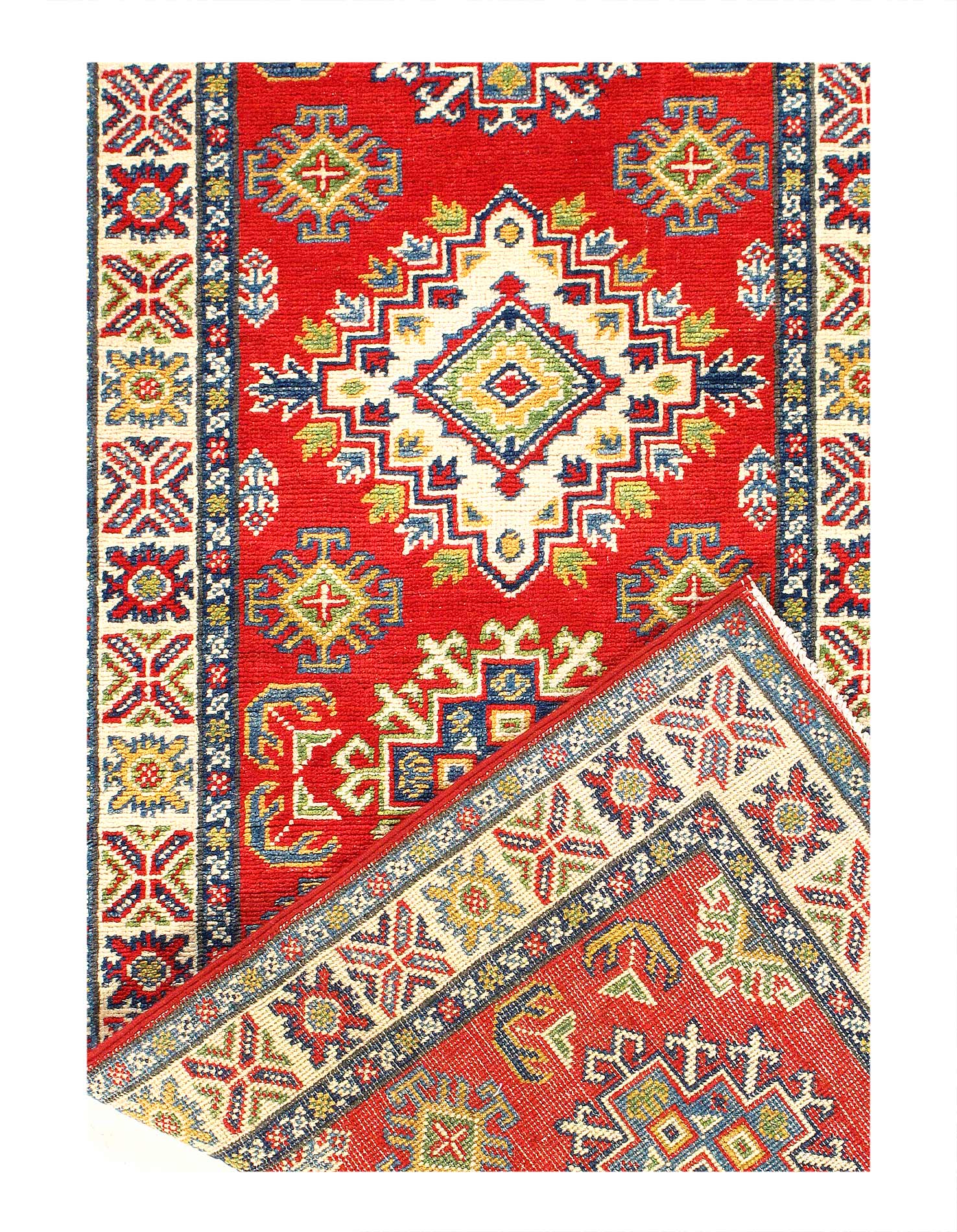 Original Super Kazak Rug. Handmade Hand-knotted,Very Practical for High Traffic,Hand-Spun Lamb's Wool on a Cotton Foundation,Vegetable Dyed,This rug is handmade from 100-percent premium, hand-spun wool, and employ ancient pot-dying techniques to give them their authentic look.Kazak is a modern shape of old Caucasian rugs which strictly adheres to traditional design elements of the Caucasus. It has elements such as the stepped hooked polygons, geometrical medallions and rosettes, presented in more stylized manner and with a new dimension. Natural dyes produce soft luminous shades and abrashes causing a beautiful sheen. Hand spun wool yarn is normally used in the variety of vibrant warm colors. Kazaks rugs in our collection are all fine quality pieces from Pakistan made with Ghazni hand spun wool and natural dyes.