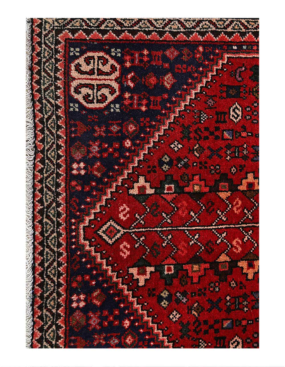 A very attractive and durable carpet woven in the village of Abadeh in southwestern Persia. The pattern is influenced by nomads and usually consists of a hexagon in the middle containing a rosette or a medallion. A good bargain since the carpet retains its value for a long time.