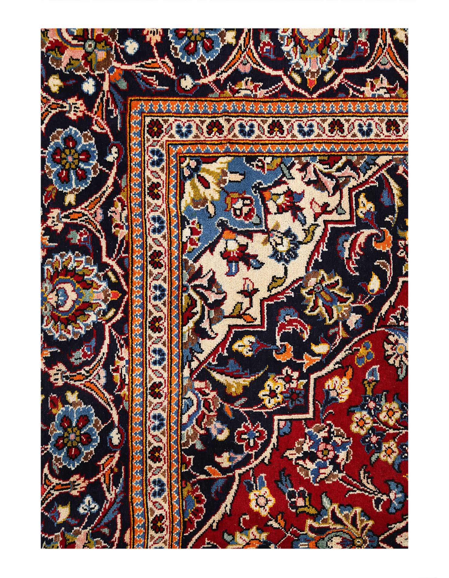 Beautiful and Finely Woven Antique Persian Kashan Rug, Country Of Origin: Persia, this inscribed Semi antique Persian carpet features an incomparable medallion-and-pendant cartoon spread over an immense palace-sized field. The distinctive offered composition focuses on a superb ovel medallion embellished with re-curving calyces and undulating ribbons. An expanse of spiraling vine-scrolls adorns the fiery brick-colored ground that encircles the stunning medallion and cuts into the decorative inner borders, which are filled with a lush network of millennium forests that complement the superlative borders. Ogival arches and ornamental niches give the regal composition an architectural formality infused with Persian geometry. The expansive field of this beautiful Semi antique Persian Kashan rug is framed by outstanding flower head borders that are drawn with an extraordinary level of finesse and detail. Subtle color changes, minute outlines and expert compositional details exaggerate the extreme beauty of this rug from Kashan.