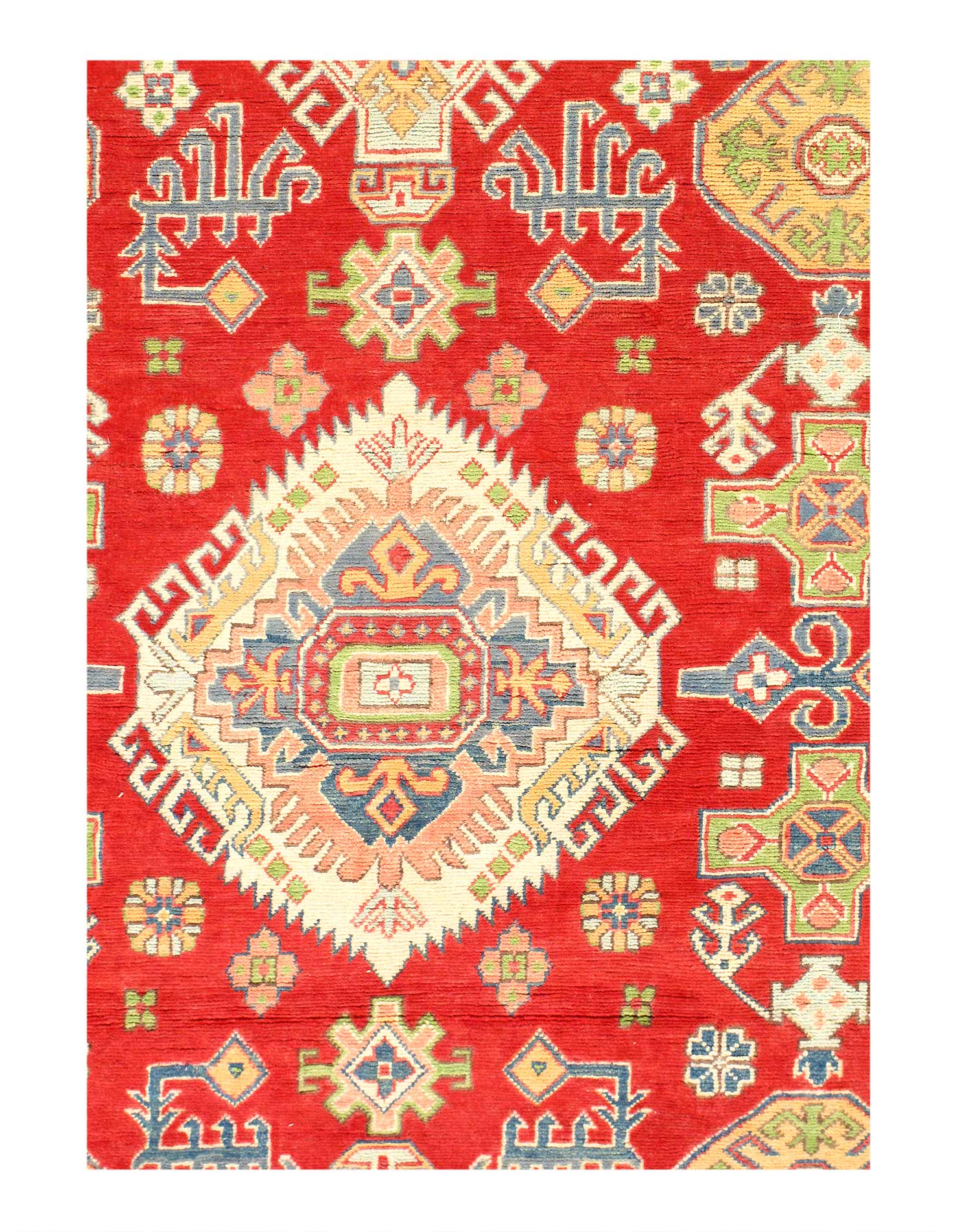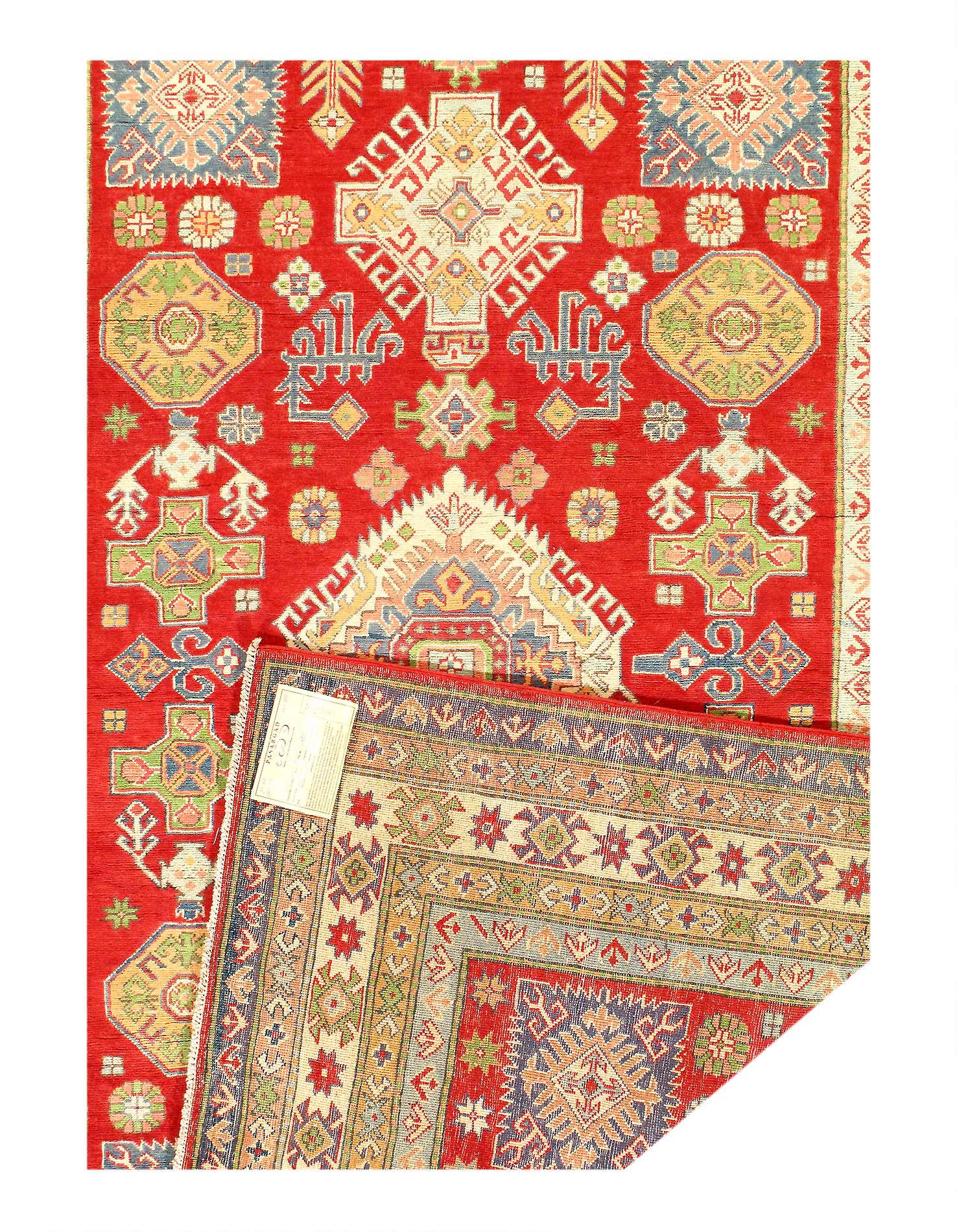 Vegetable Dyed,This rug is handmade from 100-percent premium, hand-spun wool, and employ ancient pot-dying techniques to give them their authentic look.This rug is handmade from 100-percent premium, hand-spun wool, and employ ancient pot-dying techniques to give them their authentic look.Kazak is a modern shape of old Caucasian rugs which strictly adheres to traditional design elements of the Caucasus. It has elements such as the stepped hooked polygons, geometrical medallions and rosettes, presented in more stylized manner and with a new dimension. Natural dyes produce soft luminous shades and abrashes causing a beautiful sheen. Hand spun wool yarn is normally used in the variety of vibrant warm colors. Kazaks rugs in our collection are all fine quality pieces from Pakistan made with Ghazni handspun wool and natural dyes.