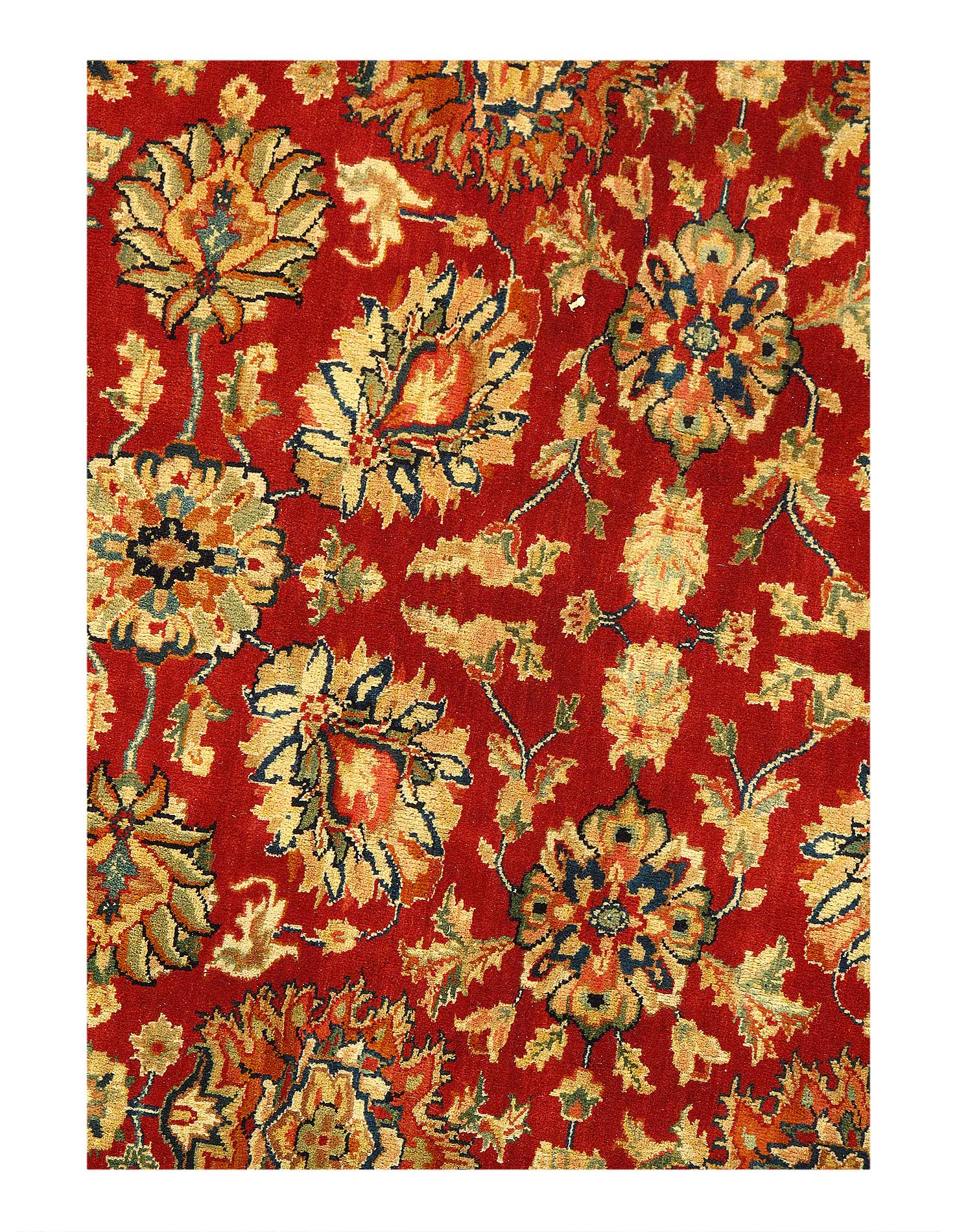 Augra rugs are distinguished by their excellent weave, they have the most diverse display of designs which often reflect scenes of falconry, and ferocious lions. Some of the most well know Augra rugs were inspired by hand painted covers of Ancient books. The dominant colors for these rugs tend to be, cream, red, navy blue, and many more. Their material is often woven with wool or silk. Augra rugs are not only one of the finest groups of Indian rugs but also the most decorative as well.