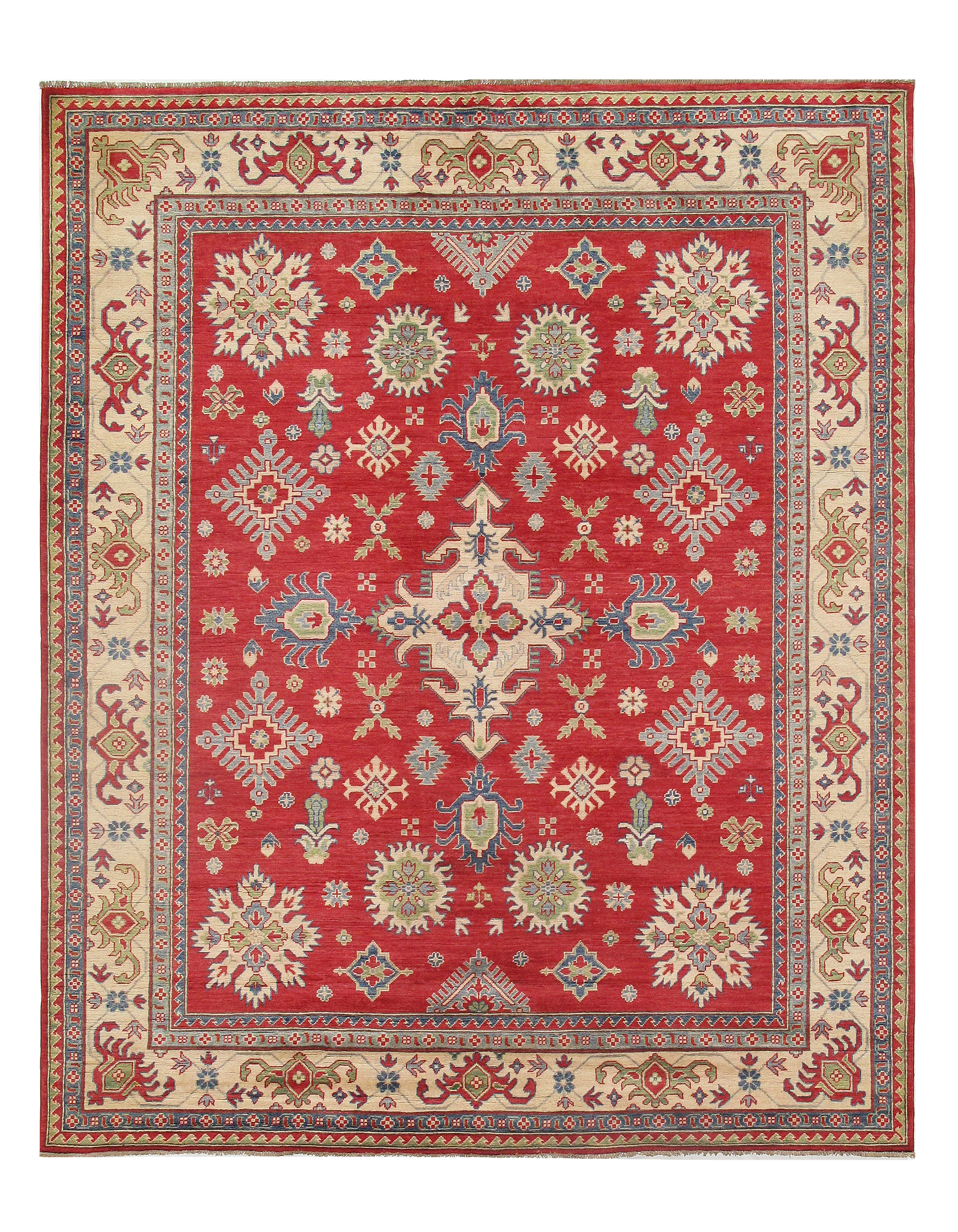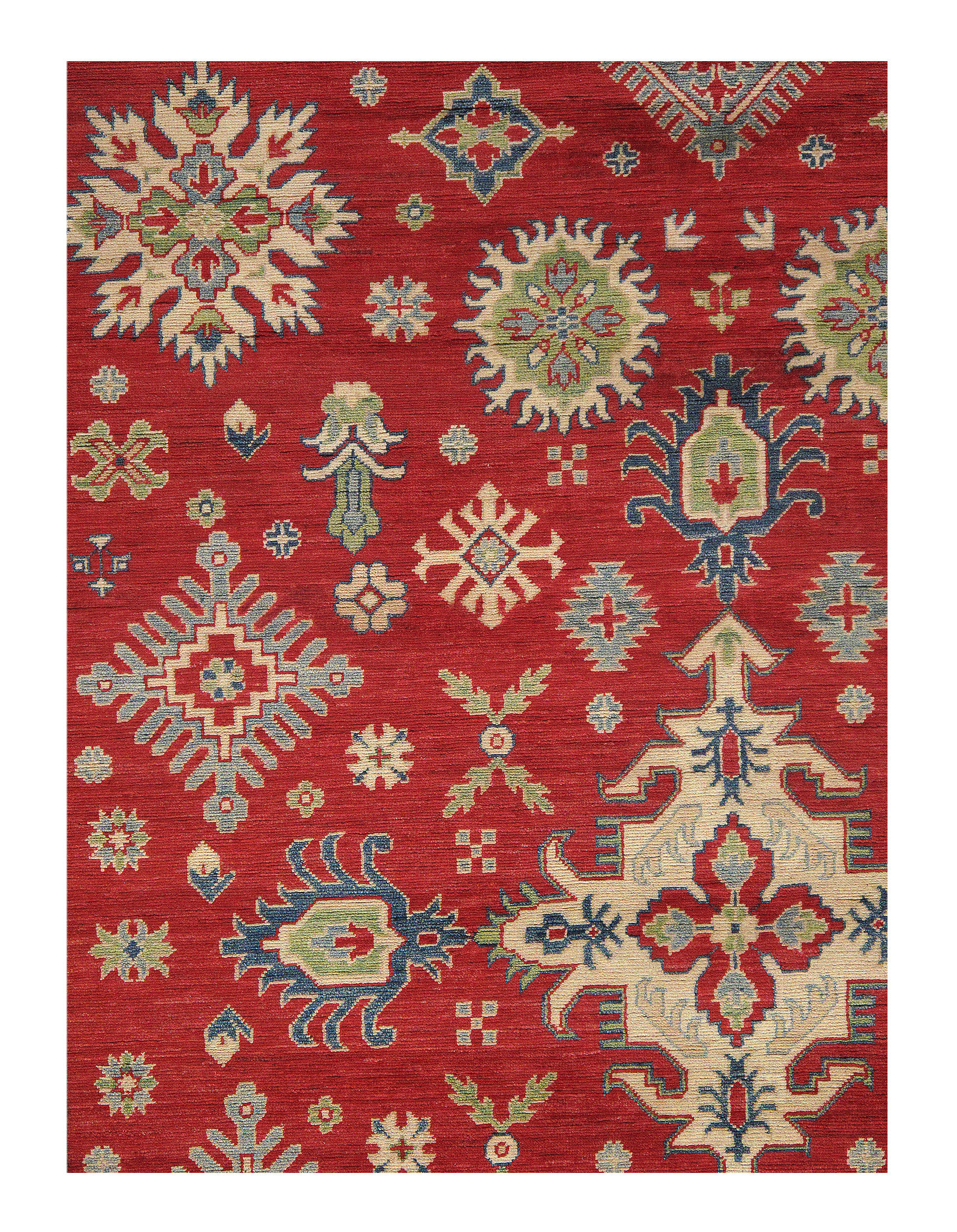 The Fine Kazak Collection of area rugs takes its source from Caucasian rugs of the Kazak areas. Multiple medallions, centralized patterns, and allover layouts have all been given a geometric treatment. These rugs are moderately thin and relatively coarsely knotted. Caucasian designs have always been popular for scatter rugs in virtually every decorative context.