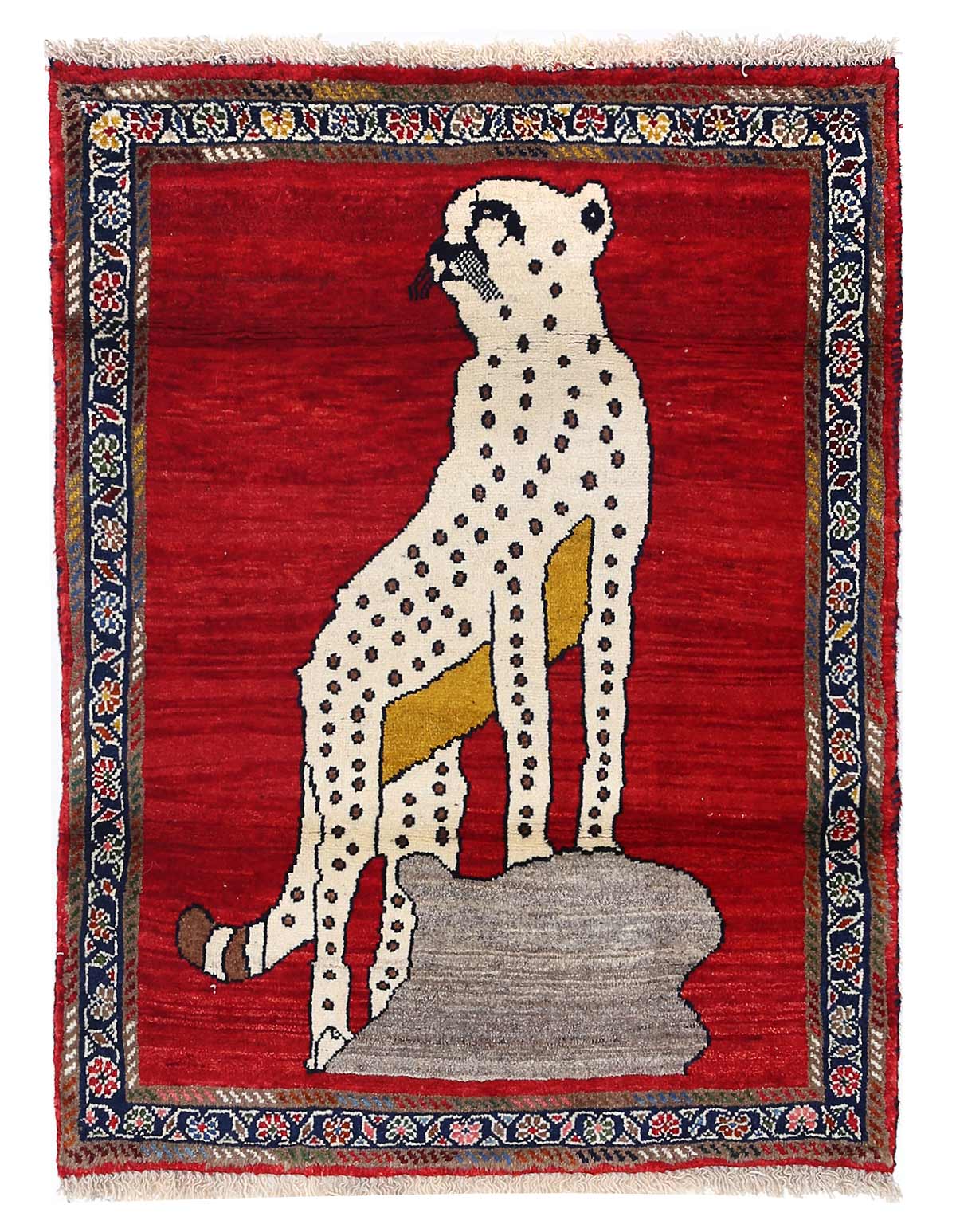 One of A Kind Antique Authentic Qashqai cheetah Pictorial Tribal Gabbeh Rug handmade 100%wool. All hand spun wool