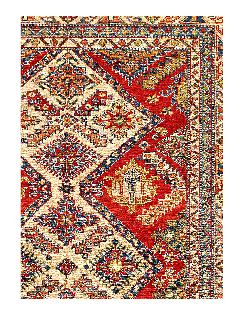 The Afghan weavers earlier only had access to two or three colors of dye, usually black, white, grey or deep red. However, the easier access to more dyes, better tools of the trade and diverse resources added versatility to their earlier, more basic rug-making endeavors. The newly created Kazak rugs began to be known for their reds, indigo blues and ivories as well as their warm, casual appearance, which again attests to them being a modern version of the traditional Caucasian rugs.