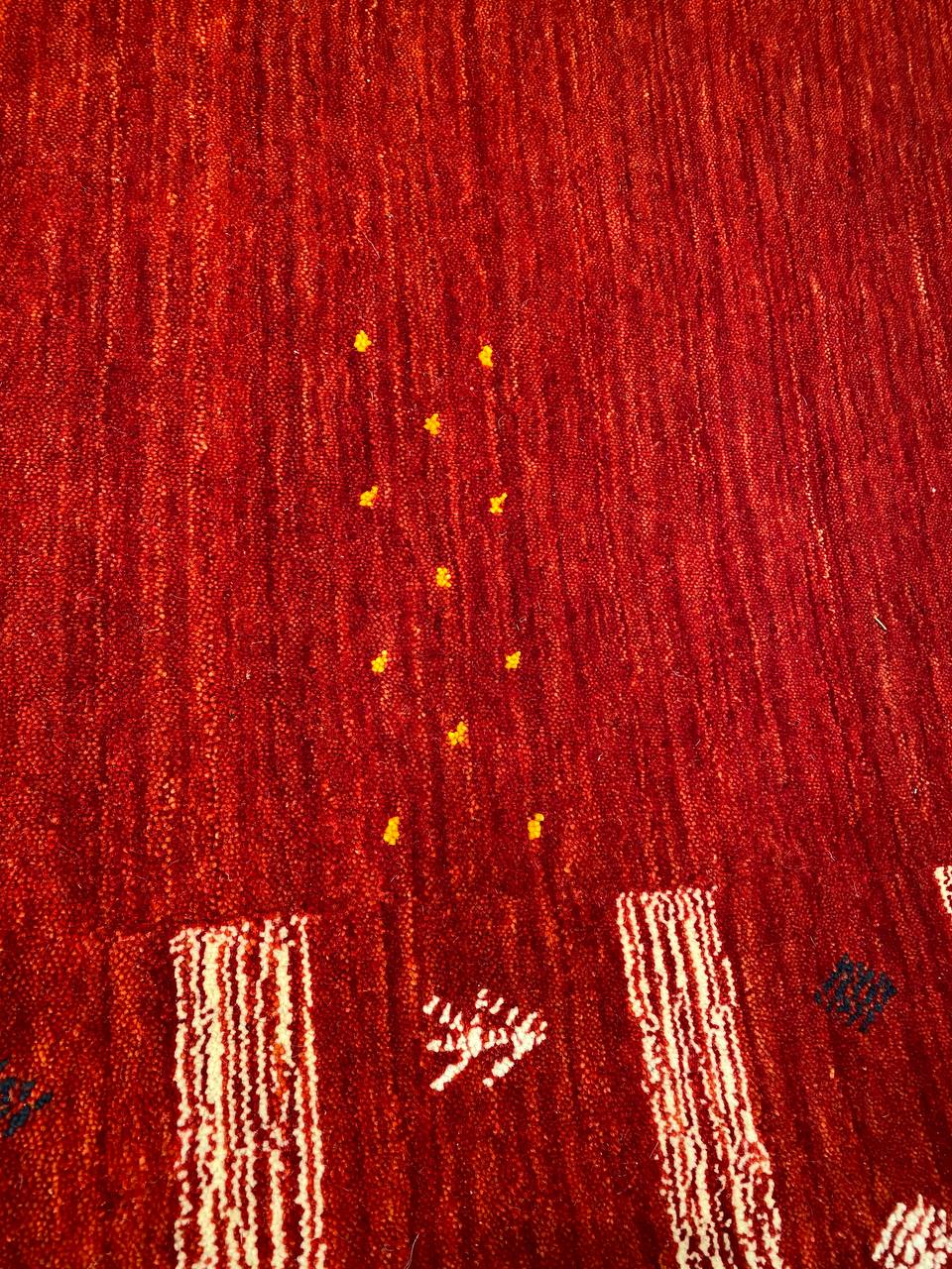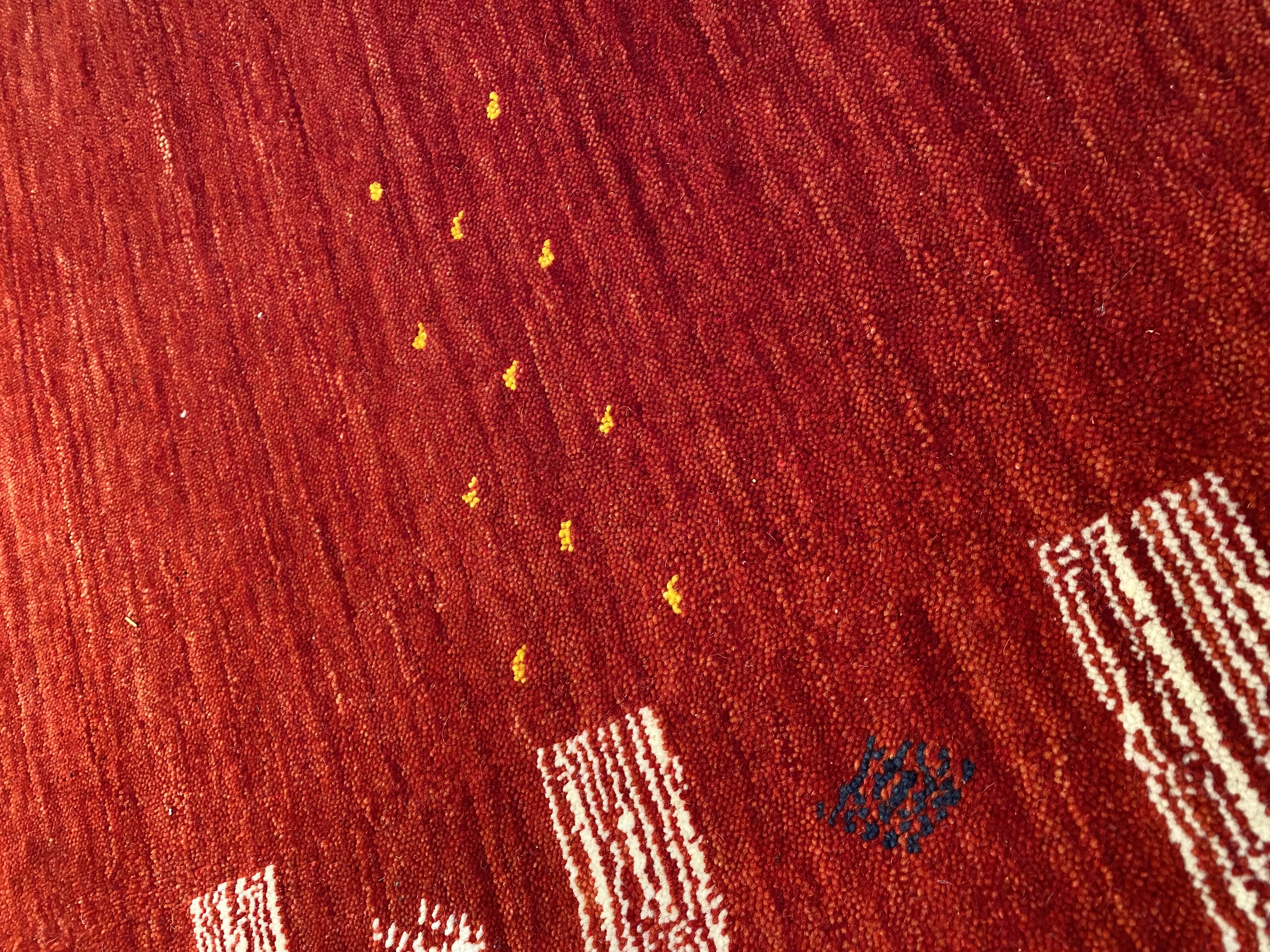 Gabbeh rug Handmade Hand-knotted. Fine lamb's wool. A lovely piece for your home. Lamb's Wool on a Wool Foundation Vegetable Dyed Hand-Spun Wool Rug this rug has a dense, soft pile, and excellent quality, to ensure that you will enjoy the look and feel of your rug for years to come. From India