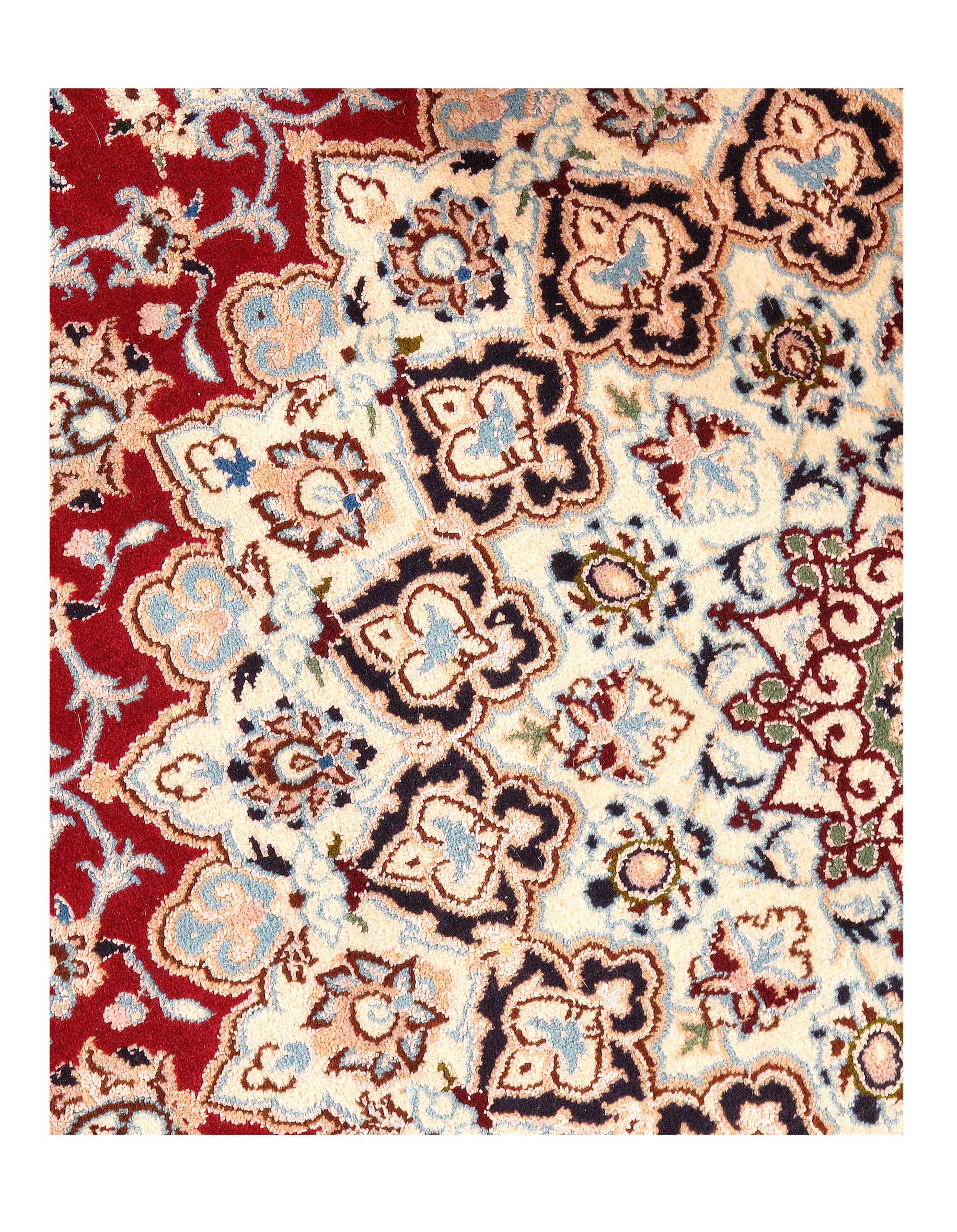 These rugs are particularly popular, they have a high knot density and the materials consist of wool and silk warp. In addition to the high quality of the material itself the designs and color combinations are simply magnificent for Nain rugs. Most have patterns with medallions in the middle and floral motifs. Silk is used as a highlighting tool in the detail of the design. Nain rugs are clipped short so the design stands out even more than on other rugs.