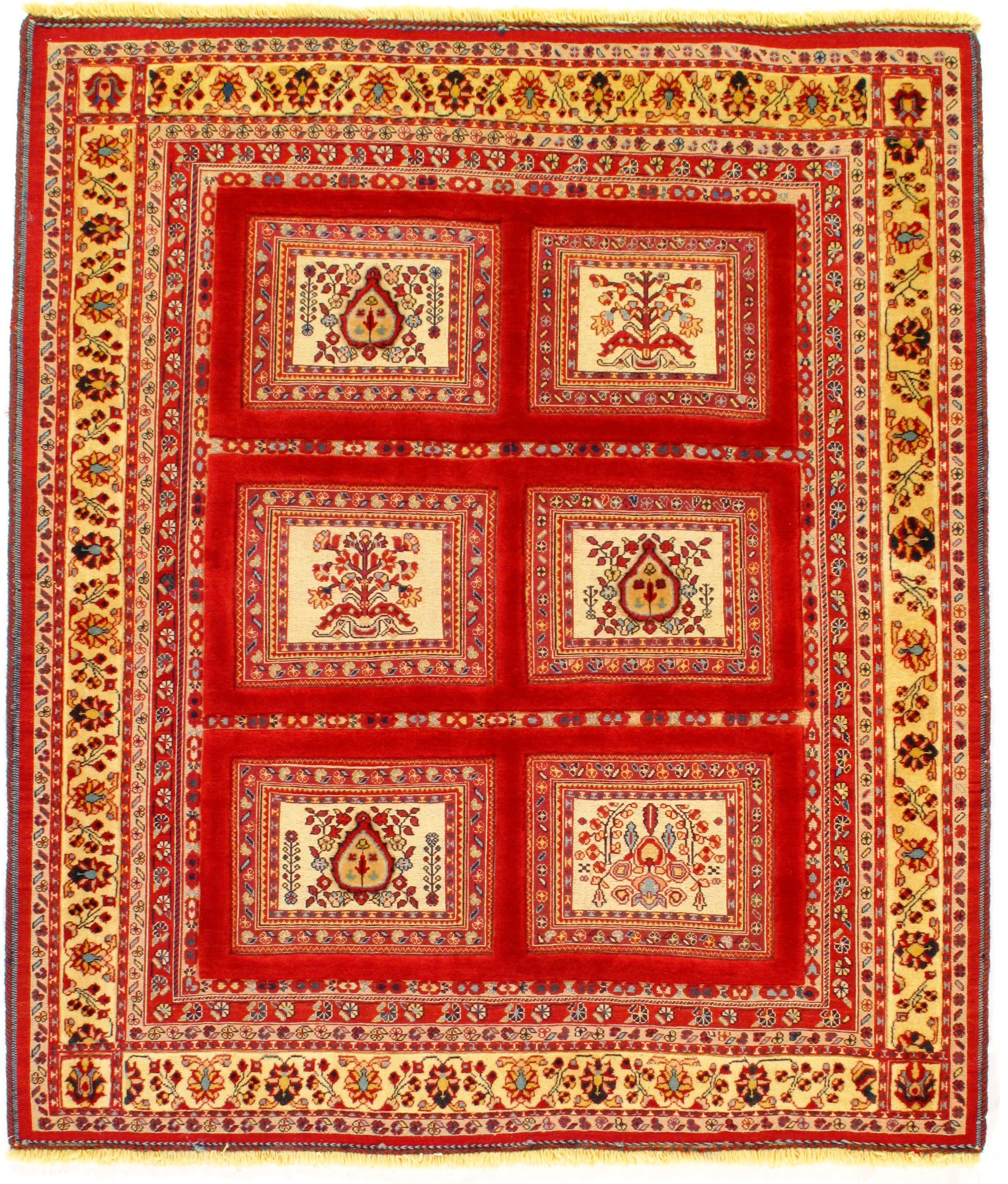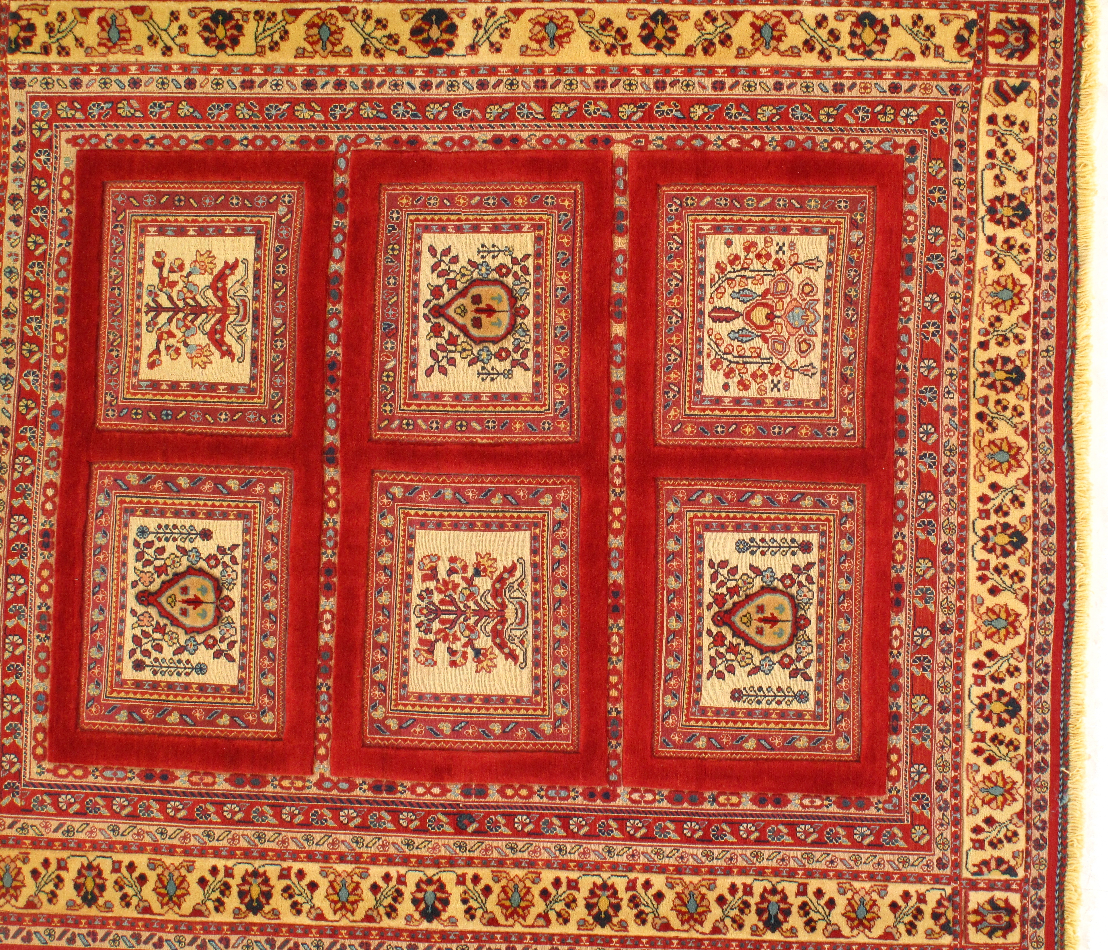 Employing an historic technique older even than traditional piled carpet weaving, Soumak weavers create flat-weave rugs that fall somewhere between traditional Kilims and knotted pile carpets. They work by wrapping each weft over four warps, then pulling the wefts back through first two warps, on and on in a repeated pattern until pieces as large as full-sized carpets are complete. It's a labor-intensive process, usually performed by an individual weaver, but the resultant Soumaks are stronger than their most closely related tribal form, the Kilim. They are somewhat less durable than piled Oriental carpets, but Soumak rugs are exceptionally finely woven, made in the utilitarian tribal tradition for daily use.