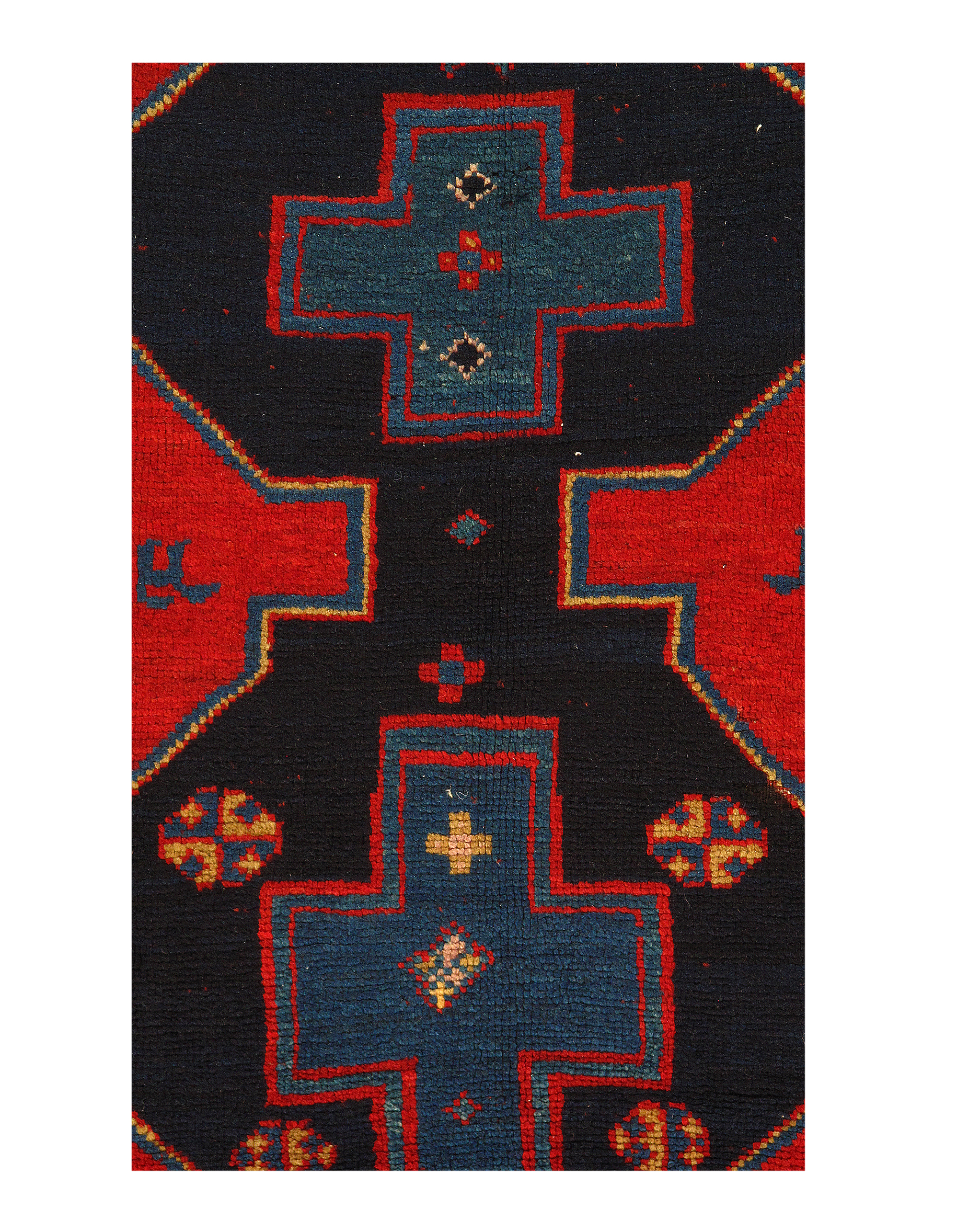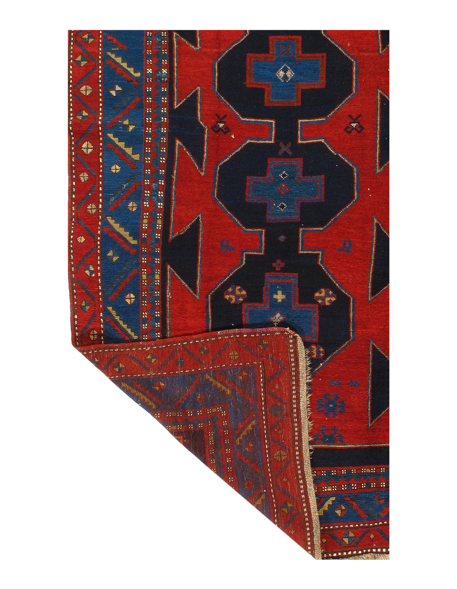 Kazak is a modern shape of old Caucasian rugs which strictly adheres to traditional design elements of the Caucasus. It has elements such as the stepped hooked polygons, geometrical medallions and rosettes, presented in more stylized manner and with a new dimension. Natural dyes produce soft luminous shades and abrashes causing a beautiful sheen. Handspun wool yarn is normally used in the variety of vibrant warm colors.