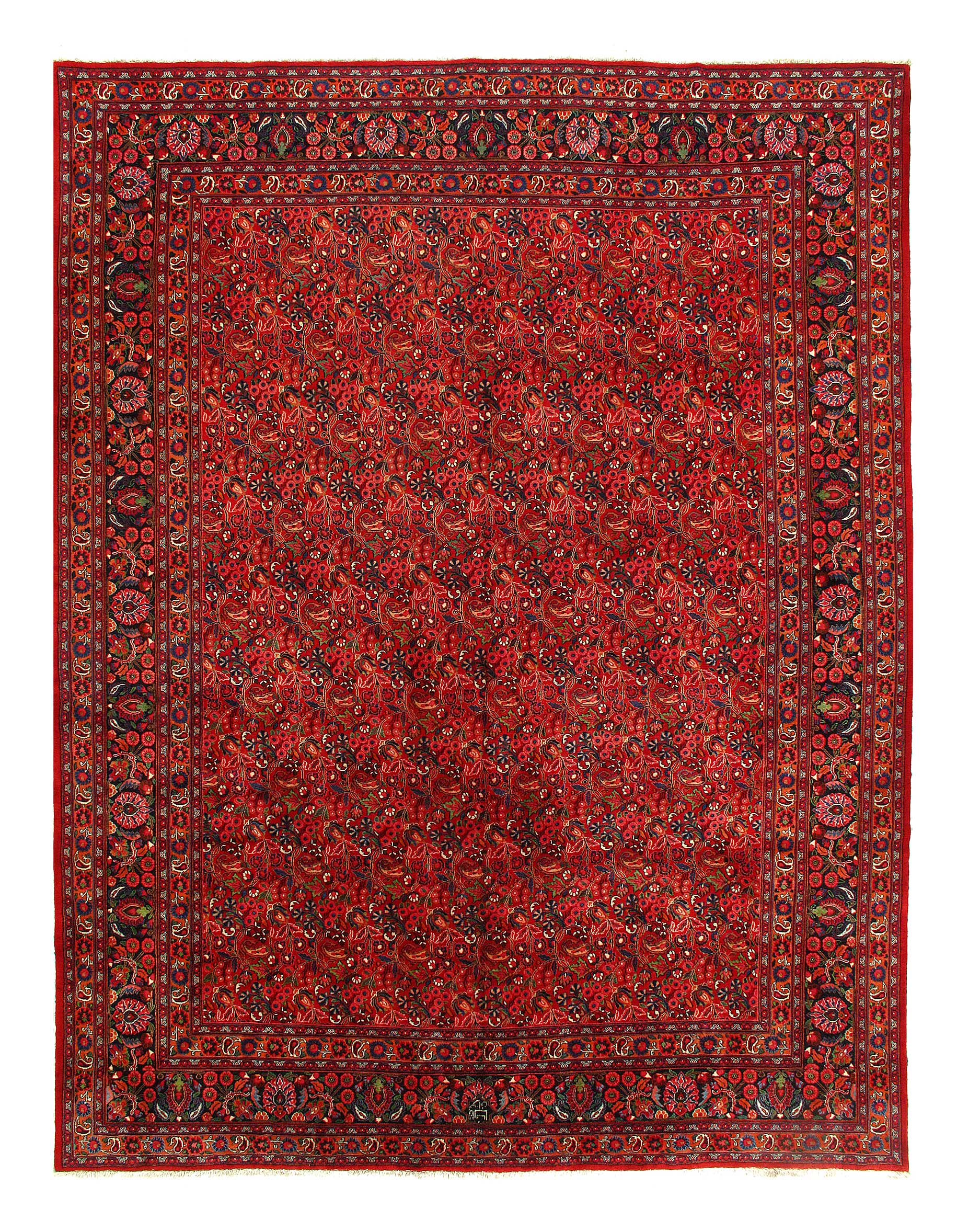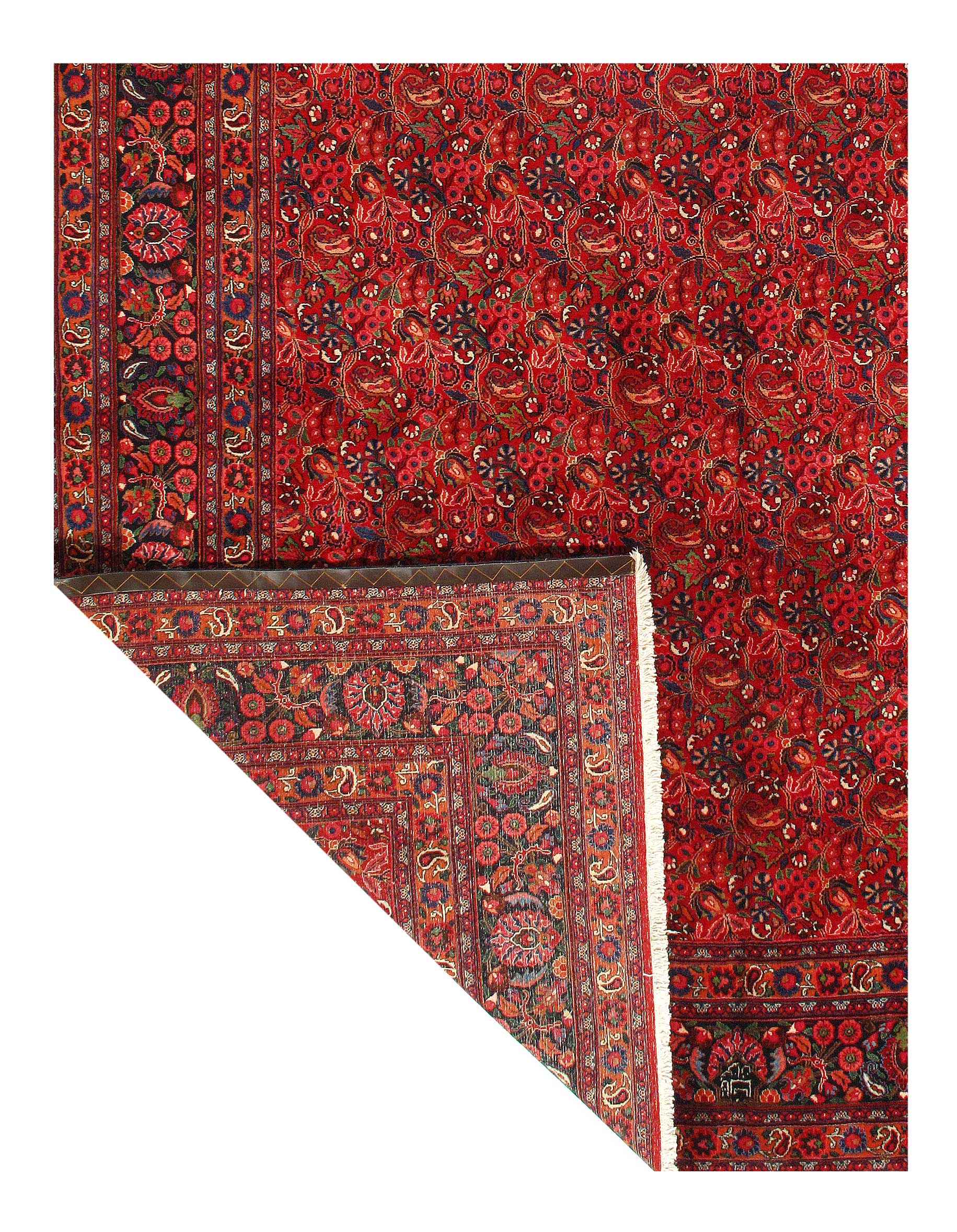 Persian Mashhad Rug. Handmade, Vegetable Dyed, Hand-Spun, Hand-Knotted Lamb's Wool Pile on a Cotton Foundation This rug has a dense, soft pile, and excellent quality, to ensure that you will enjoy the look and feel of your rug for years to come.