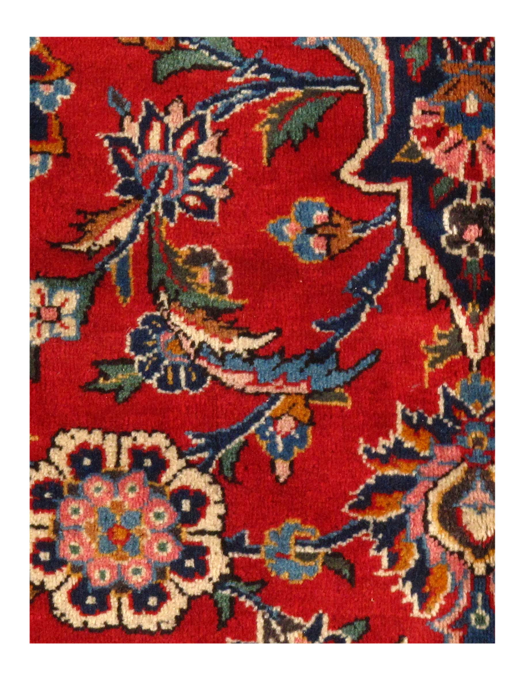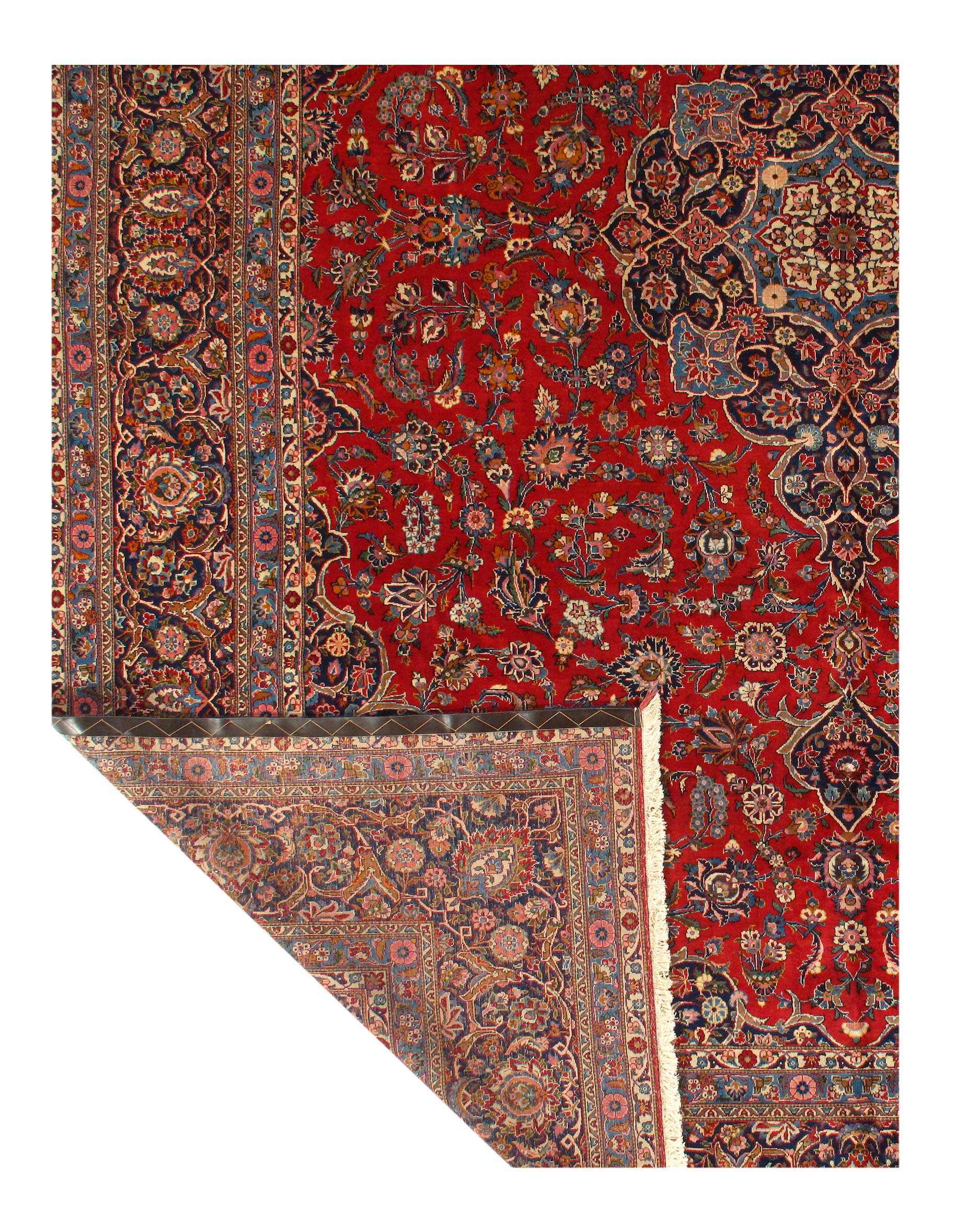 Beautiful and Finely Woven Antique Persian Kashan Rug, Country Of Origin: Persia, this inscribed Semi antique Persian carpet features an incomparable medallion-and-pendant cartoon spread over an immense palace-sized field. The distinctive offered composition focuses on a superb ovel medallion embellished with re-curving calyces and undulating ribbons. An expanse of spiraling vine-scrolls adorns the fiery brick-colored ground that encircles the stunning medallion and cuts into the decorative inner borders, which are filled with a lush network of millennium forests that complement the superlative borders. Ogival arches and ornamental niches give the regal composition an architectural formality infused with Persian geometry. The expansive field of this beautiful Semi antique Persian Kashan rug is framed by outstanding flower head borders that are drawn with an extraordinary level of finesse and detail. Subtle color changes, minute outlines and expert compositional details exaggerate the extreme beauty of this rug from Kashan.