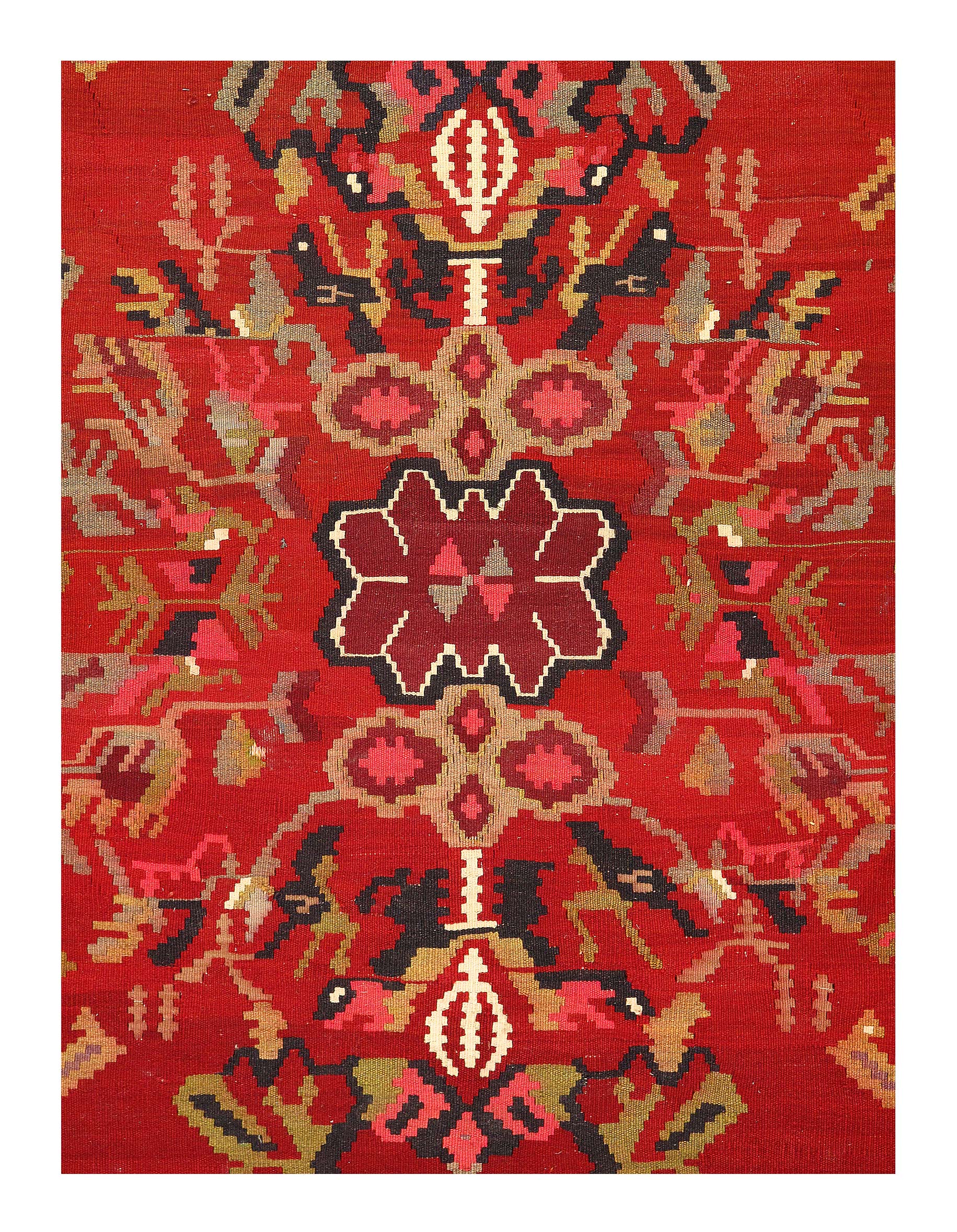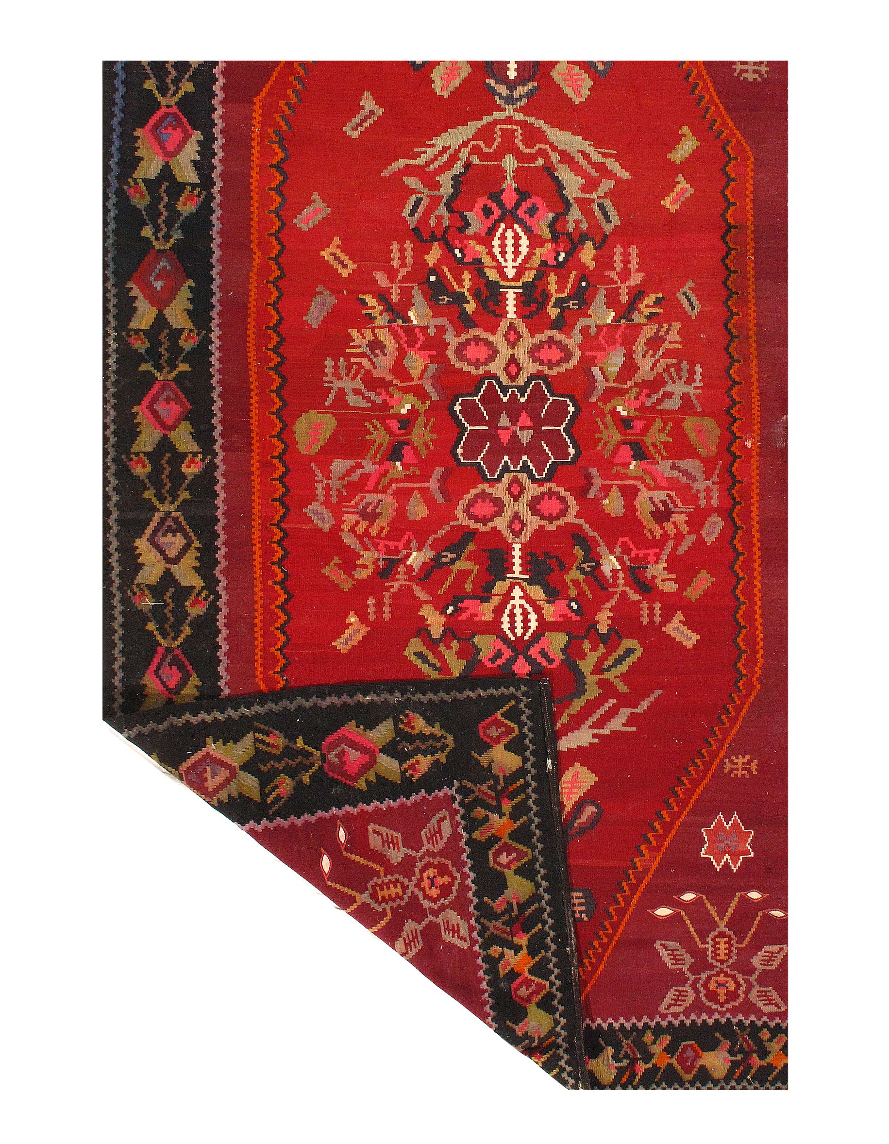Vintage Kilim rug. Hand knotted. 100% Lamb’s wool and lamb’s wool pile. Flat weave. This collection complements any room looking for a fresh update. The unique trait about these thin rugs is that they’re reversible. From Turkey.