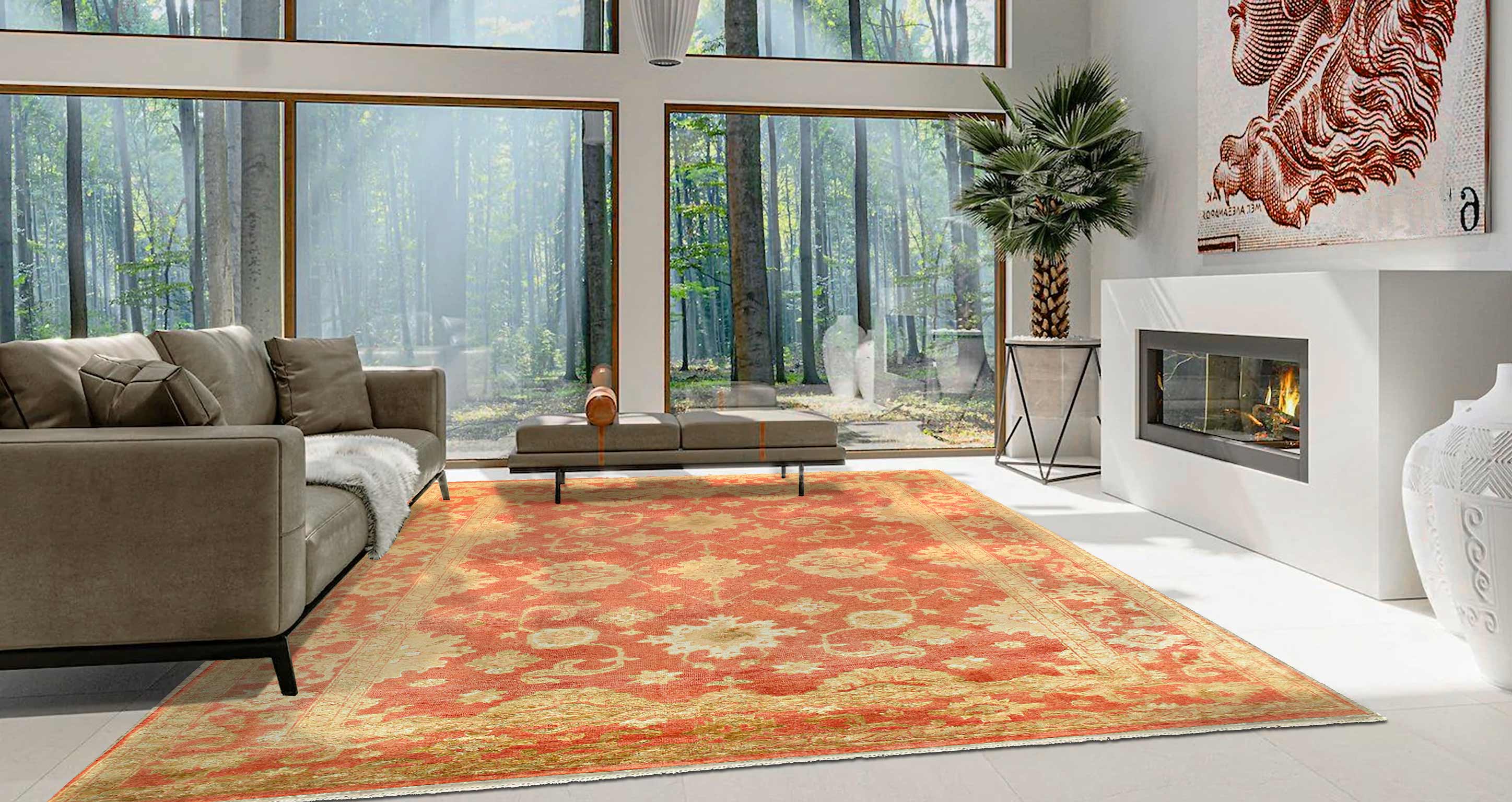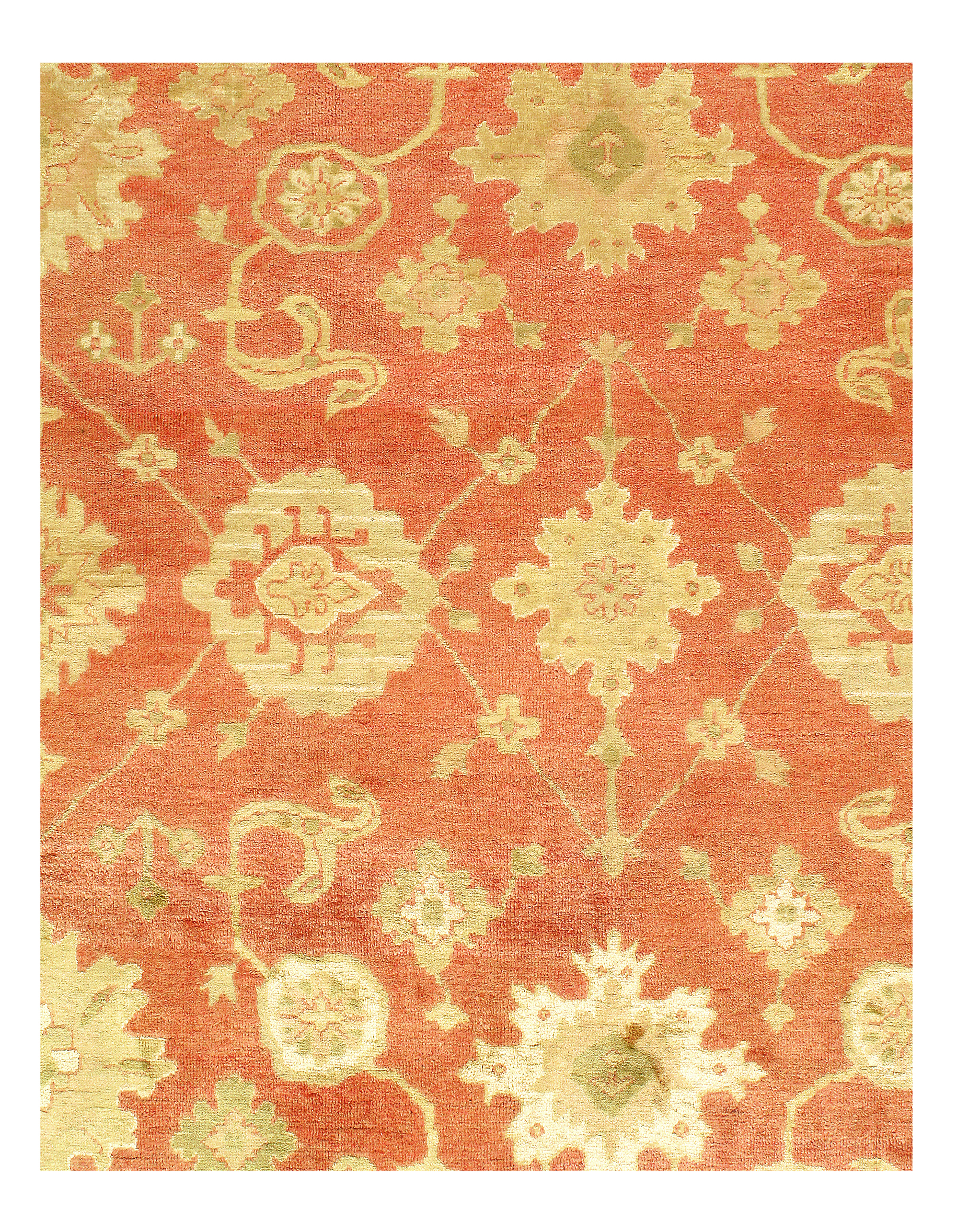 Oushak Rugs Upholding a timeless, elegant style of design that has been the centerpiece of divine decor for generations, this exquisite rug will surely fashion an ideal addition to your space. With a striking oriental design and smooth coloring, this flawless piece will radiate both opulence and classic charm from room to room within any home. These rugs are handmade from 100-percent premium, hand-Knotted Lamb's wool, and employ ancient pot-dying techniques to give them their authentic look. The soft palettes and open fields make these rugs easy to match to any decor. Each rug has a dense, soft pile, and excellent quality, to ensure that you will enjoy the look and feel of your rug for years to come.