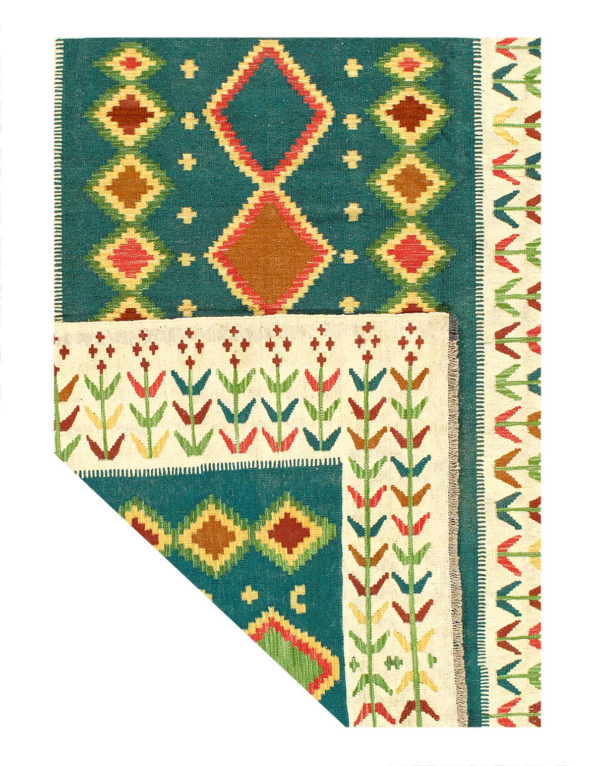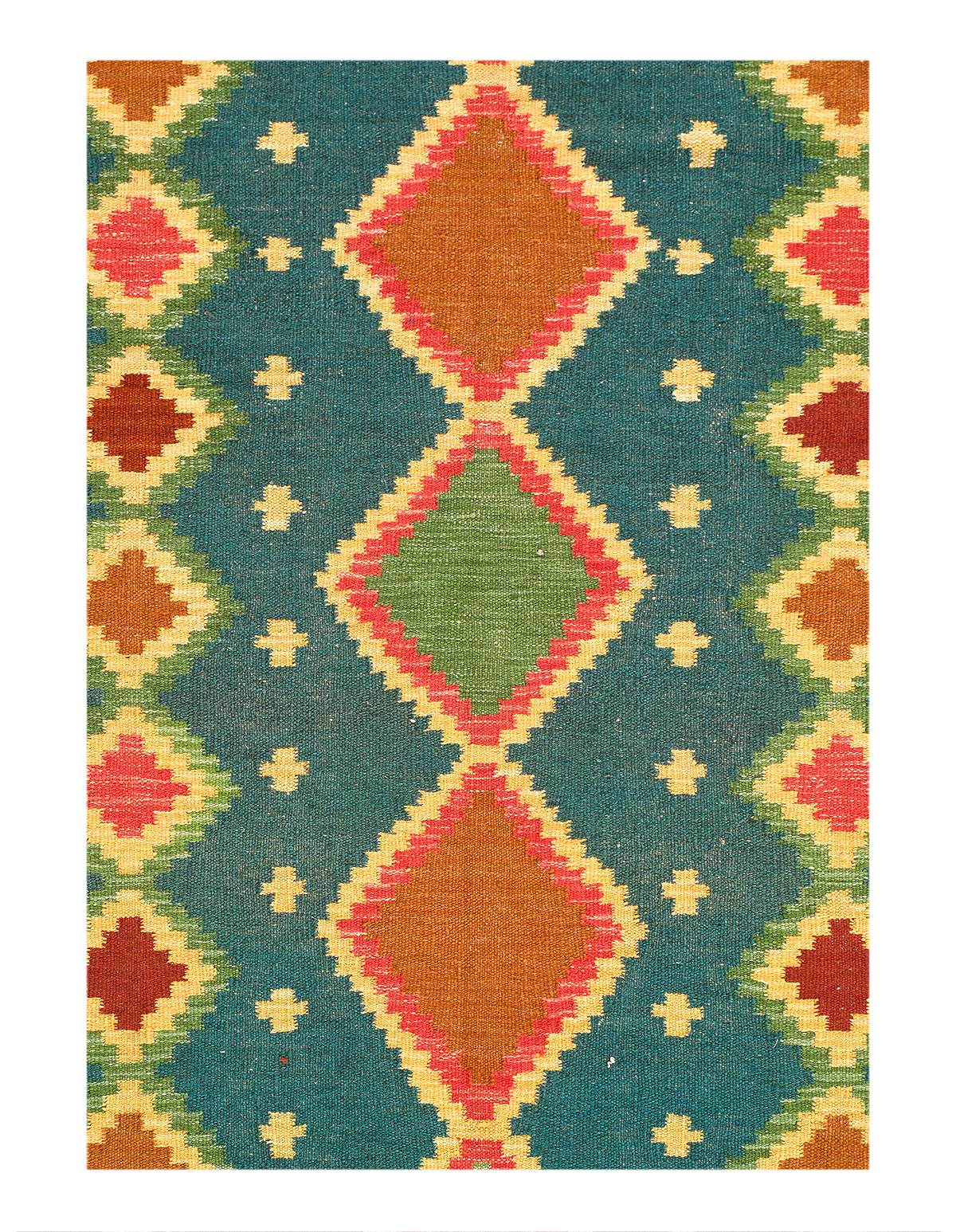 A kilim rug is a flat-woven rug. Kilim rugs are known for their intricate geometric patterns, vibrant colors, and durable construction. Unlike traditional pile rugs, kilims have a smooth surface with no pile, making them lightweight and versatile. They are often used as decorative pieces, floor coverings, or wall hangings, reflecting the cultural heritage and artistic expression of the regions they originate from.