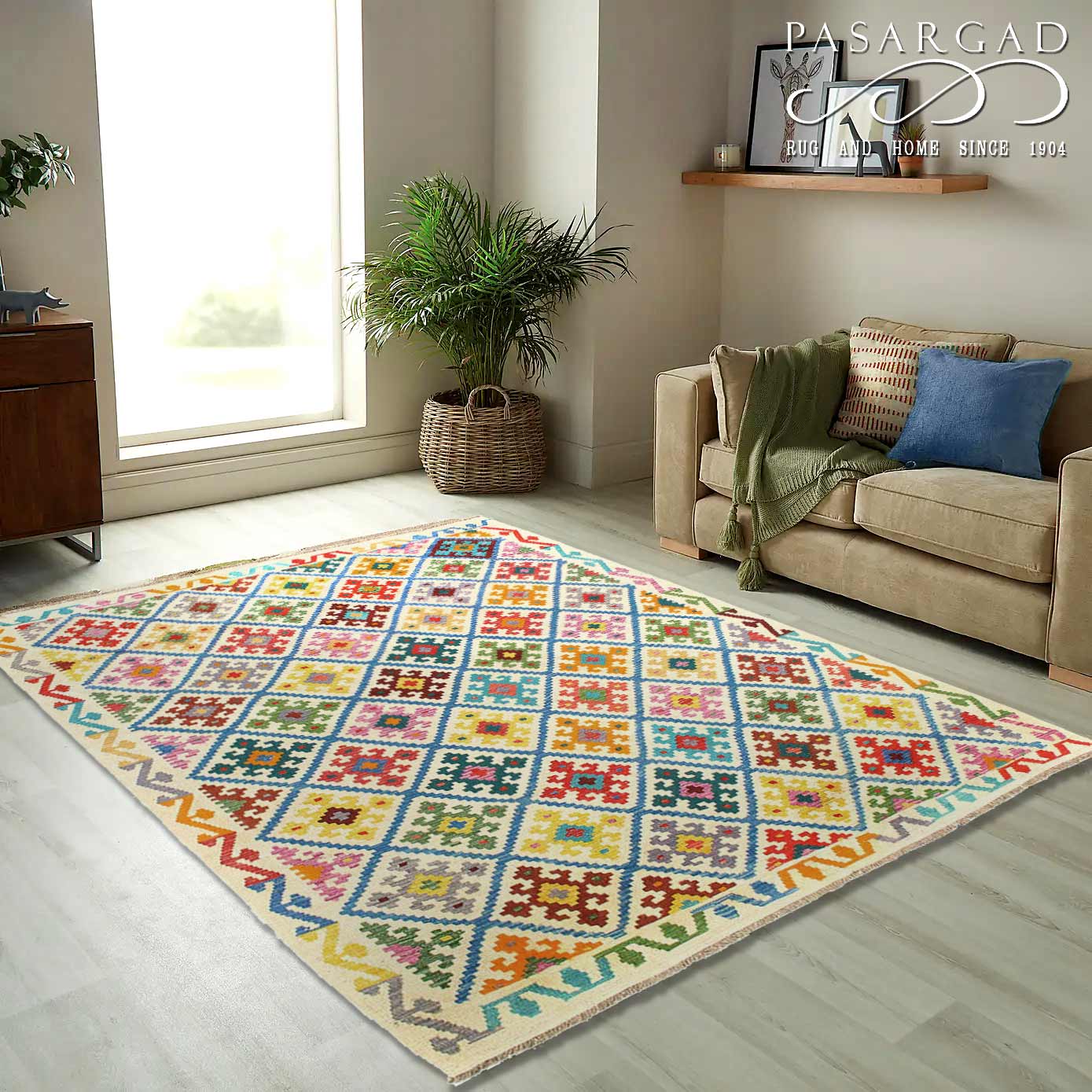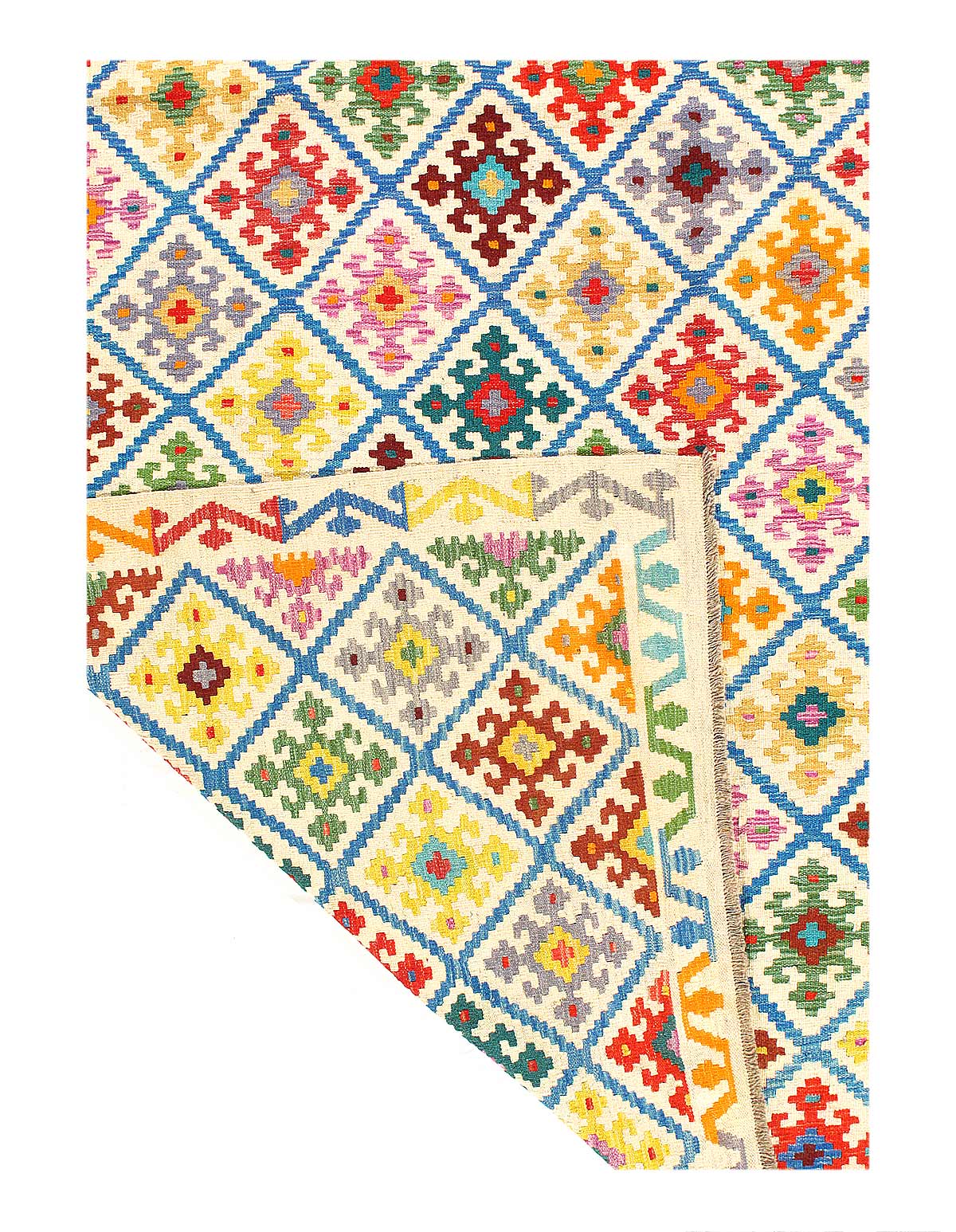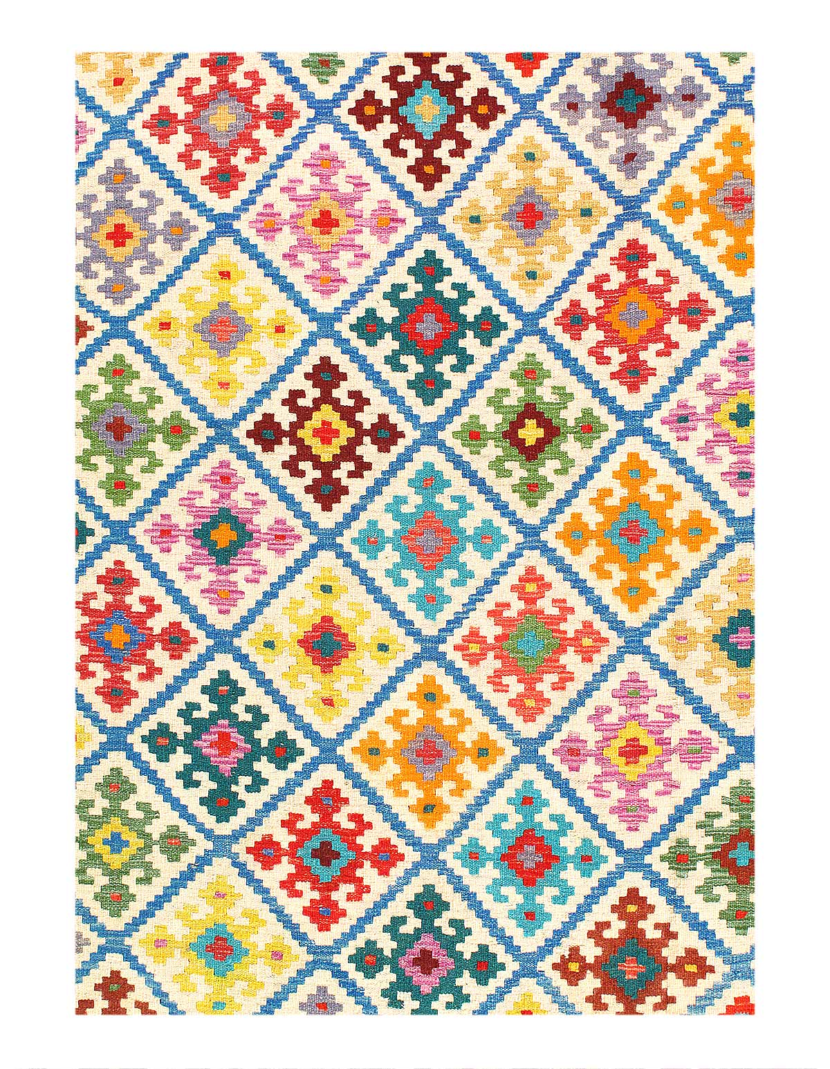 A kilim rug is a flat-woven rug. Kilim rugs are known for their intricate geometric patterns, vibrant colors, and durable construction. Unlike traditional pile rugs, kilims have a smooth surface with no pile, making them lightweight and versatile. They are often used as decorative pieces, floor coverings, or wall hangings, reflecting the cultural heritage and artistic expression of the regions they originate from.