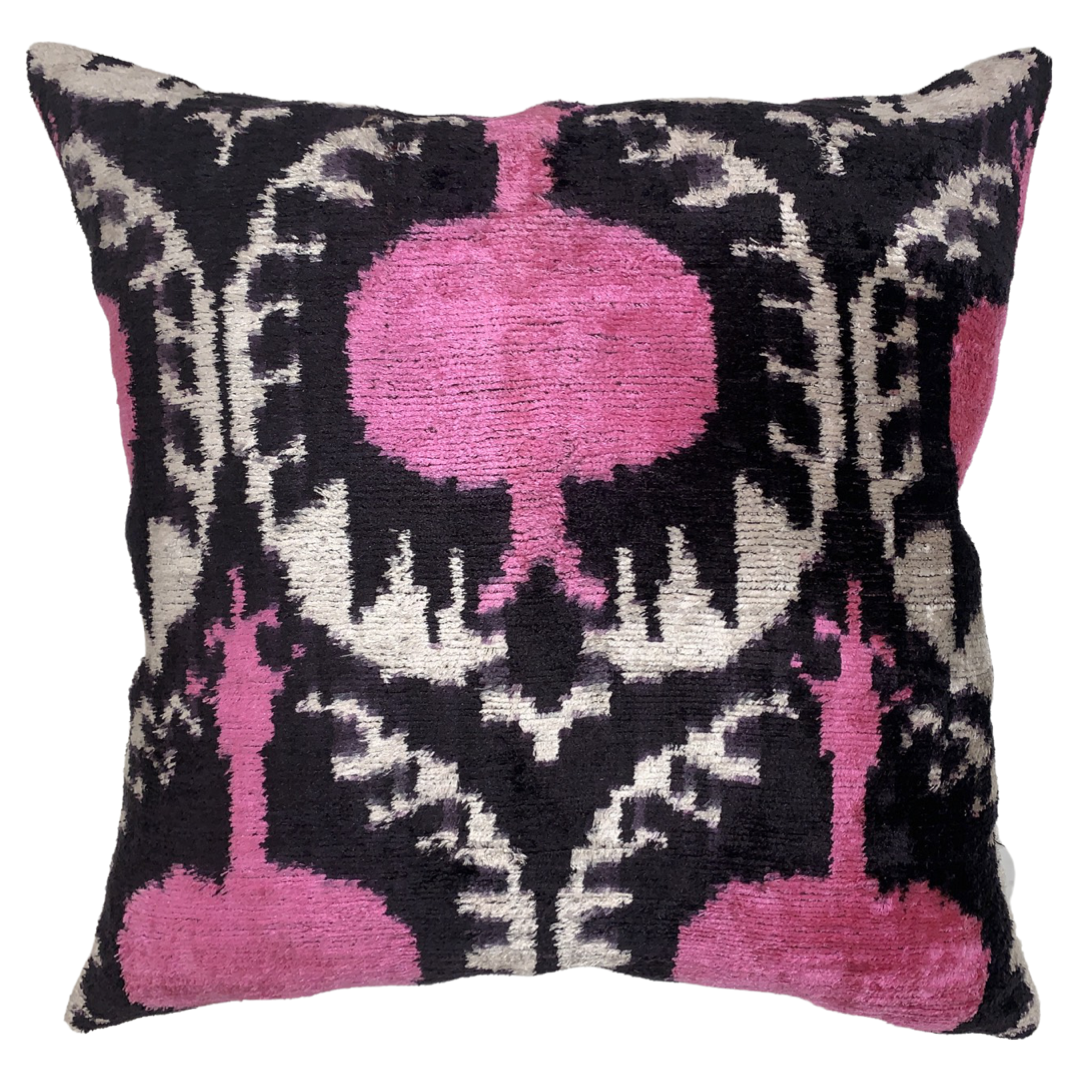 Velvet Pillow Cover / Gold Pomegranate Style Ikat Pillow