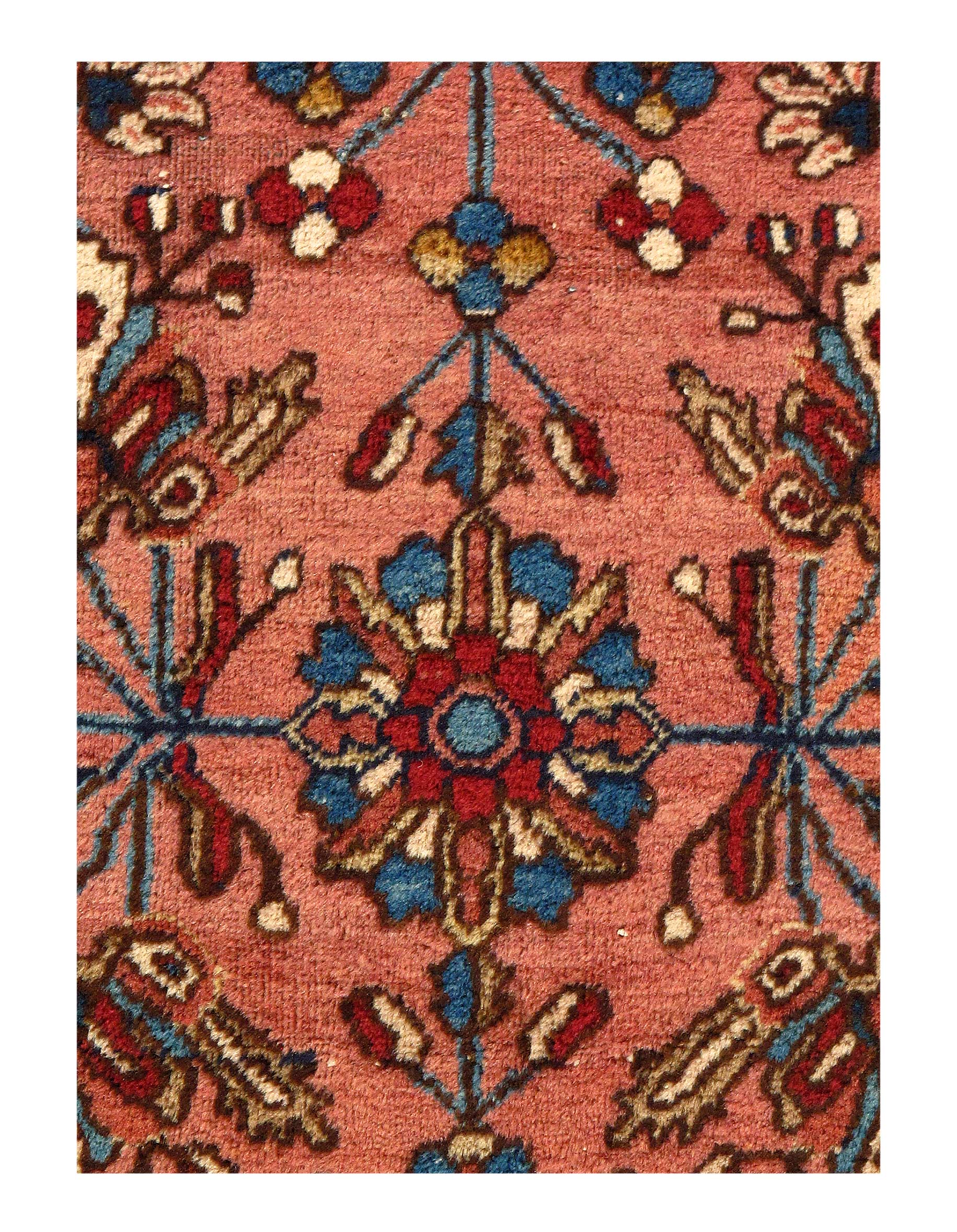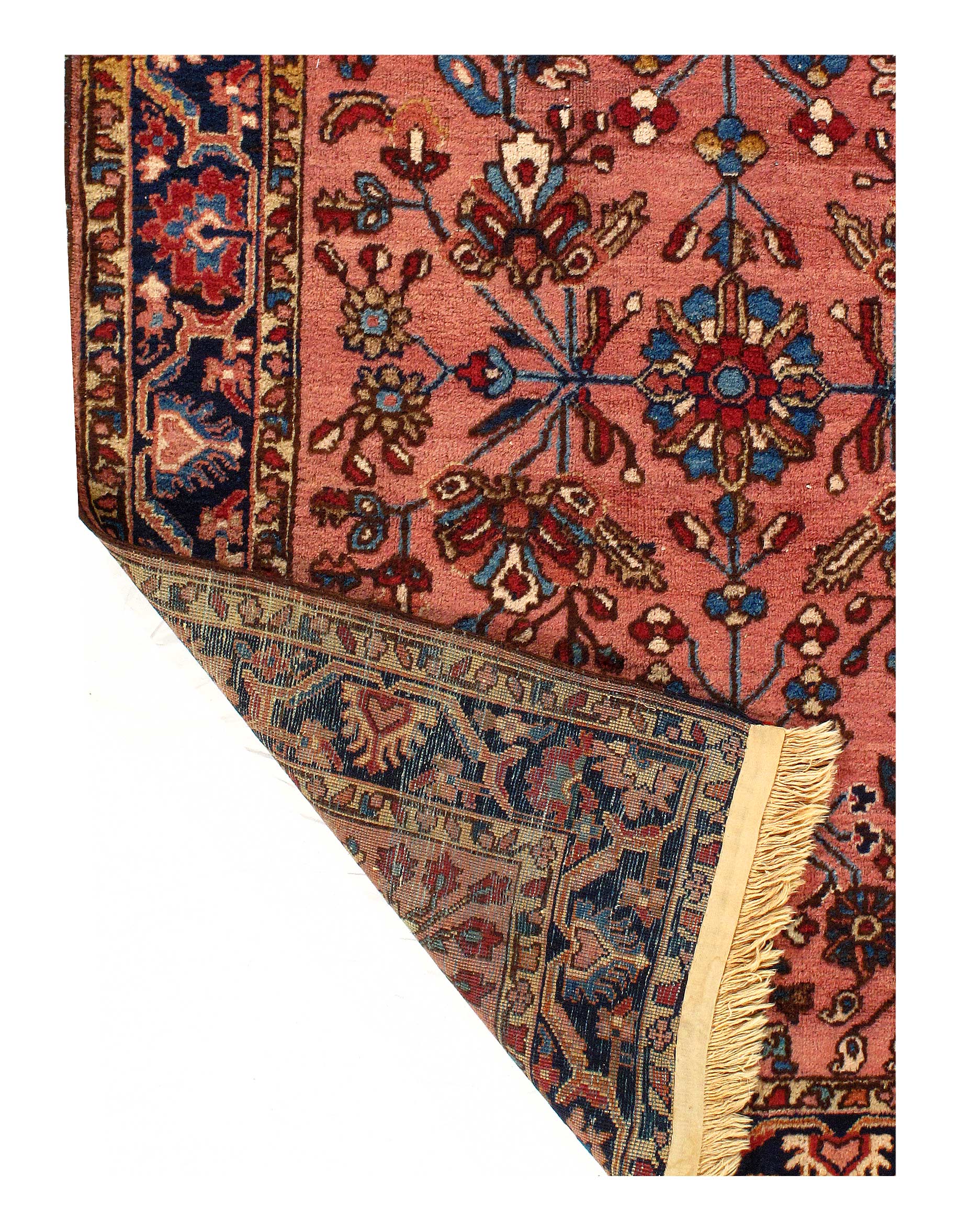 his is an antique handmade rug from the early 20th century. The piece was crafted from lamb's wool on a cotton foundation and was vegetable dyed. It has a dense, soft pile, and excellent quality, to ensure that you will enjoy it for years to come.