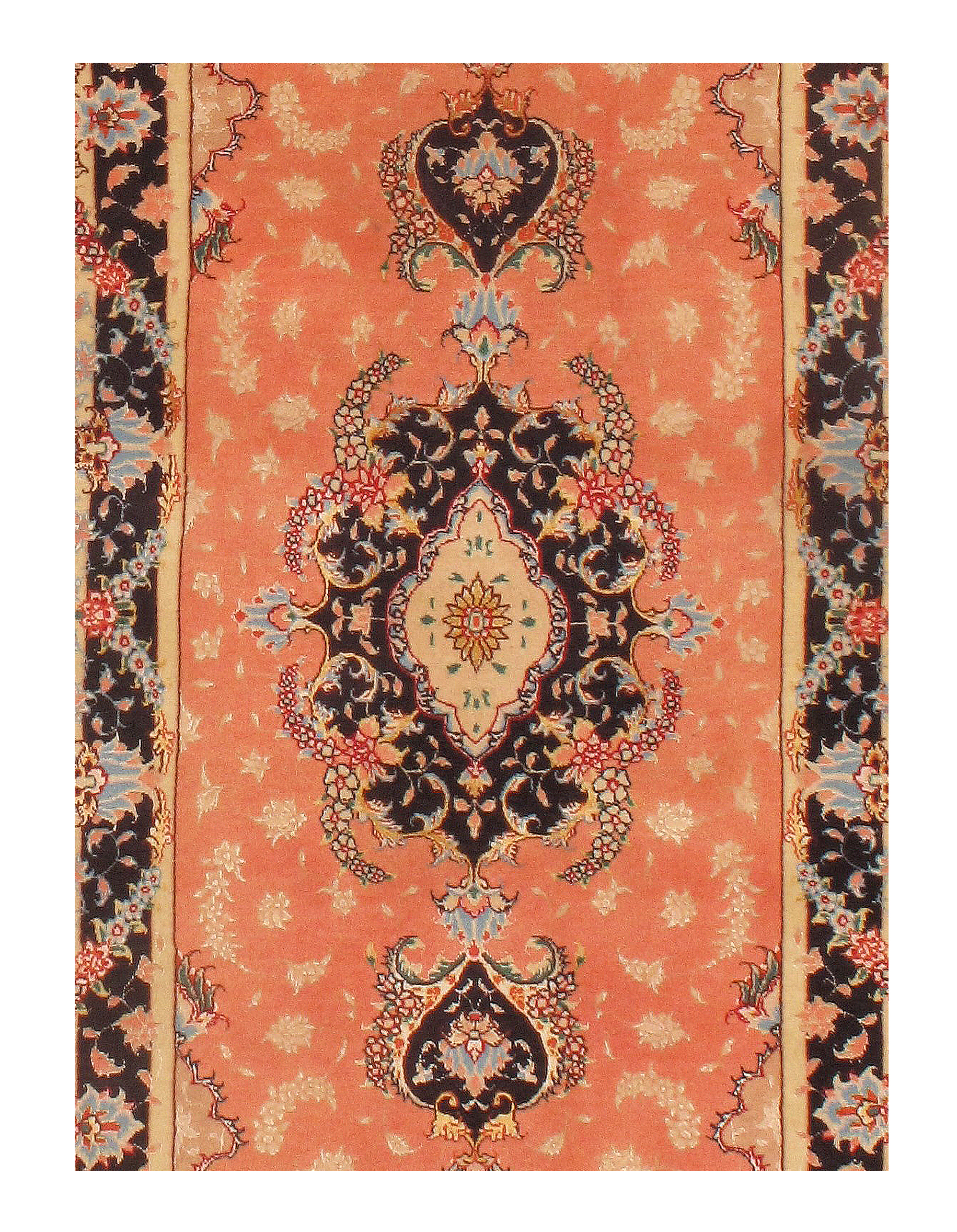 During the great revival of rug weaving in the nineteenth century, Tabriz still had it's master rug weavers designers like the famed Haji Jalili. Given this long and distinguished tradition, it comes as no surprise that no other Persian center of rug weaving can demonstrate such a wide range of designs or pattern types. The Tabriz design repertory is in fact so varied and extensive, that its products cannot be identified according to the rug’s design pattern or motif, but rather through the distinctive combination of refined classical Persian motifs with a preference for symmetrical knotting, extra wefts, and dyed warps.