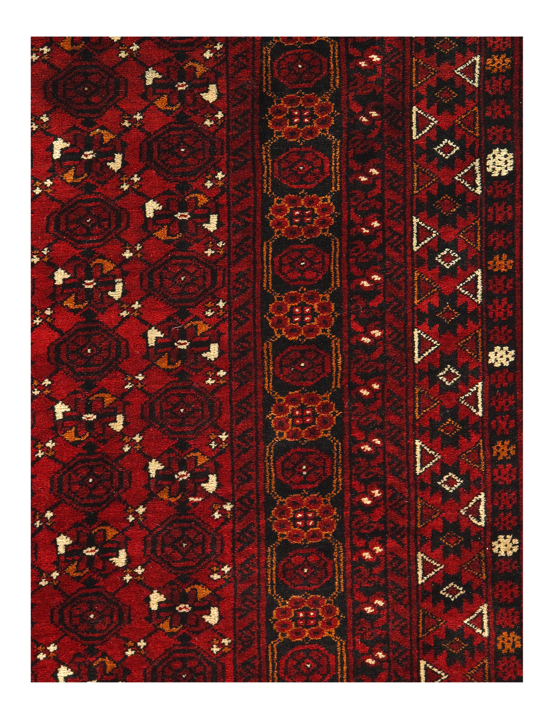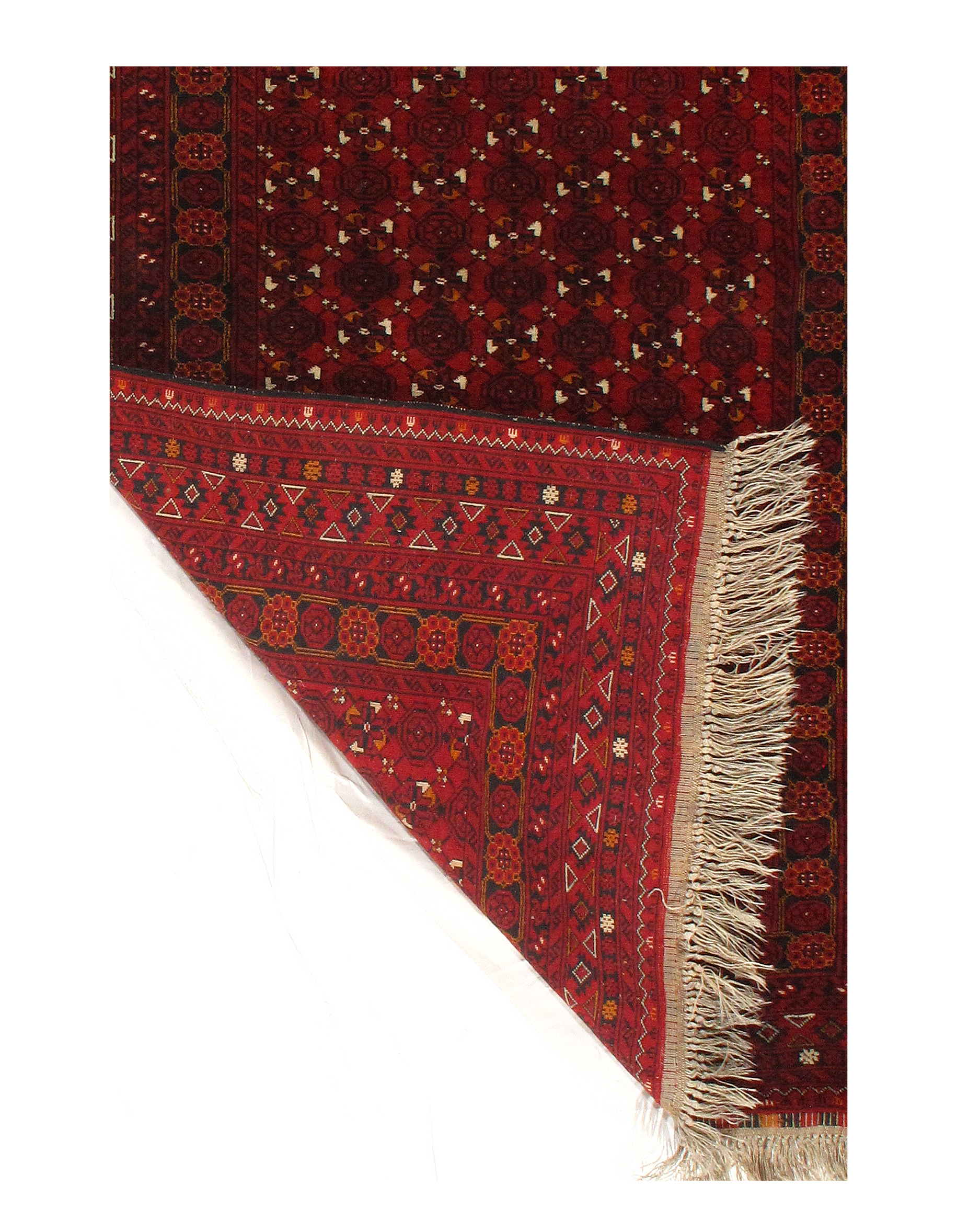 Created by Bashir weavers, this Afghan prayer rug displays a distinctive compartmental pattern filled with small-scale ornaments and geometric figures.