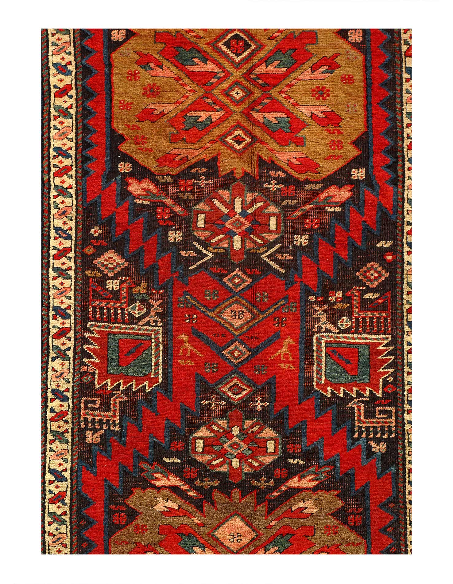 North West Persian Rugs – is the area straddling the Caucasus mountains, Caspian sea and borders with South Asiaa. Rugs produced in North West Persia represent a convergence of cultures from the Kazakhs and Khazars to the invading Mughals. The region of N. West Persia includes parts of Iran, Azerbaijan and Armenia. Carpet weavers in N. West Persia were not the most prolific craftspeople but their rare high quality carpets are sought after commodities that regularly sell for record breaking sums. Historic evidence depicting looms and detailed carpet patterns confirms the development of knotted pile carpets and flat woven Kilim rugs during the Timurid dynasty which thrived