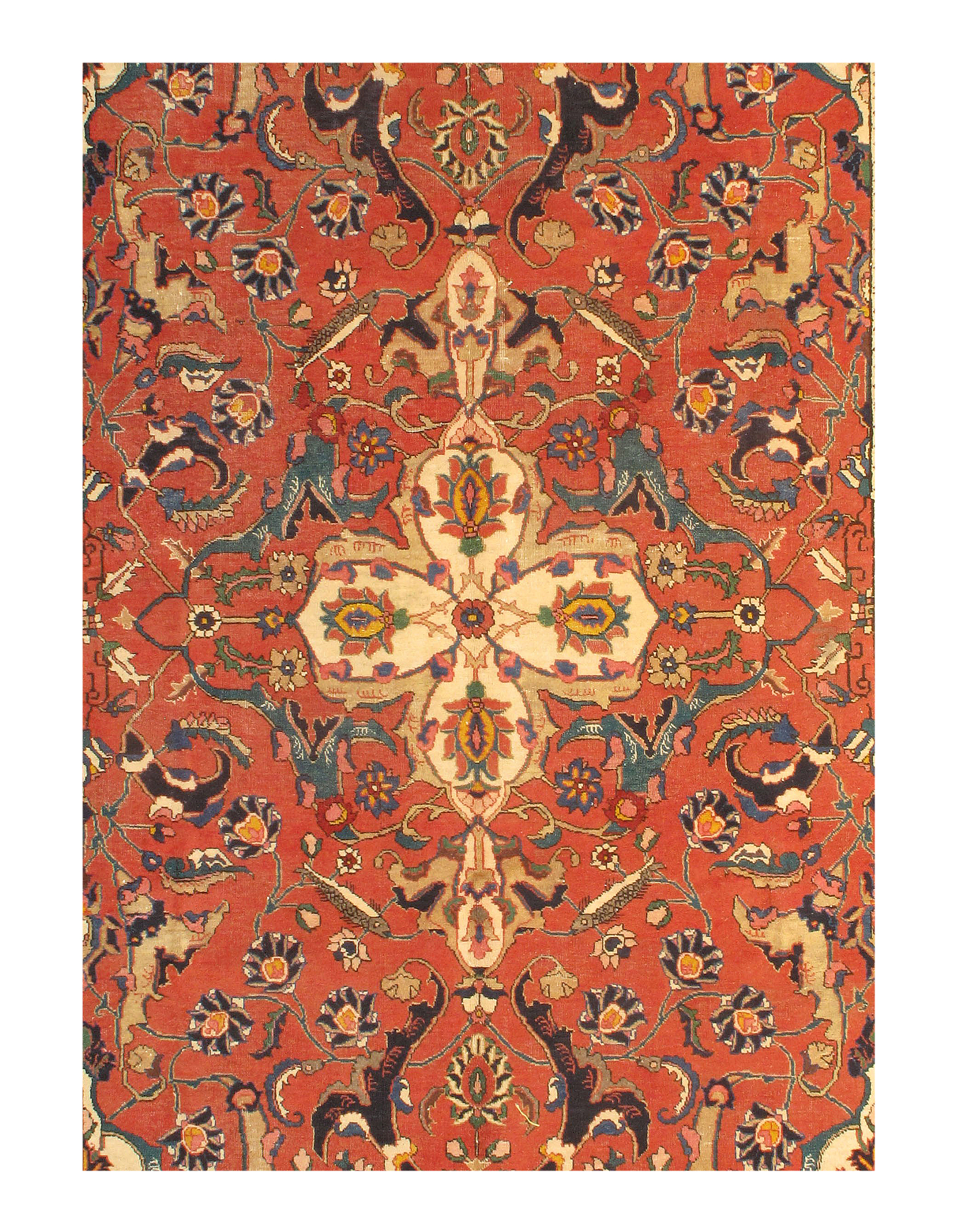 During the great revival of rug weaving in the nineteenth century Tabriz still had its master rug weavers designers like the famed Haji Jalili. Given this long and distinguished tradition, it comes as no surprise that no other Persian center of rug weaving can demonstrate such a wide range of designs or pattern types. The Tabriz design repertory is in fact so varied and extensive, that its products cannot be identified according to the rug’s design pattern or motif, but rather through the distinctive combination of refined classical Persian motifs with a preference for symmetrical knotting, extra wefts, and dyed warps.