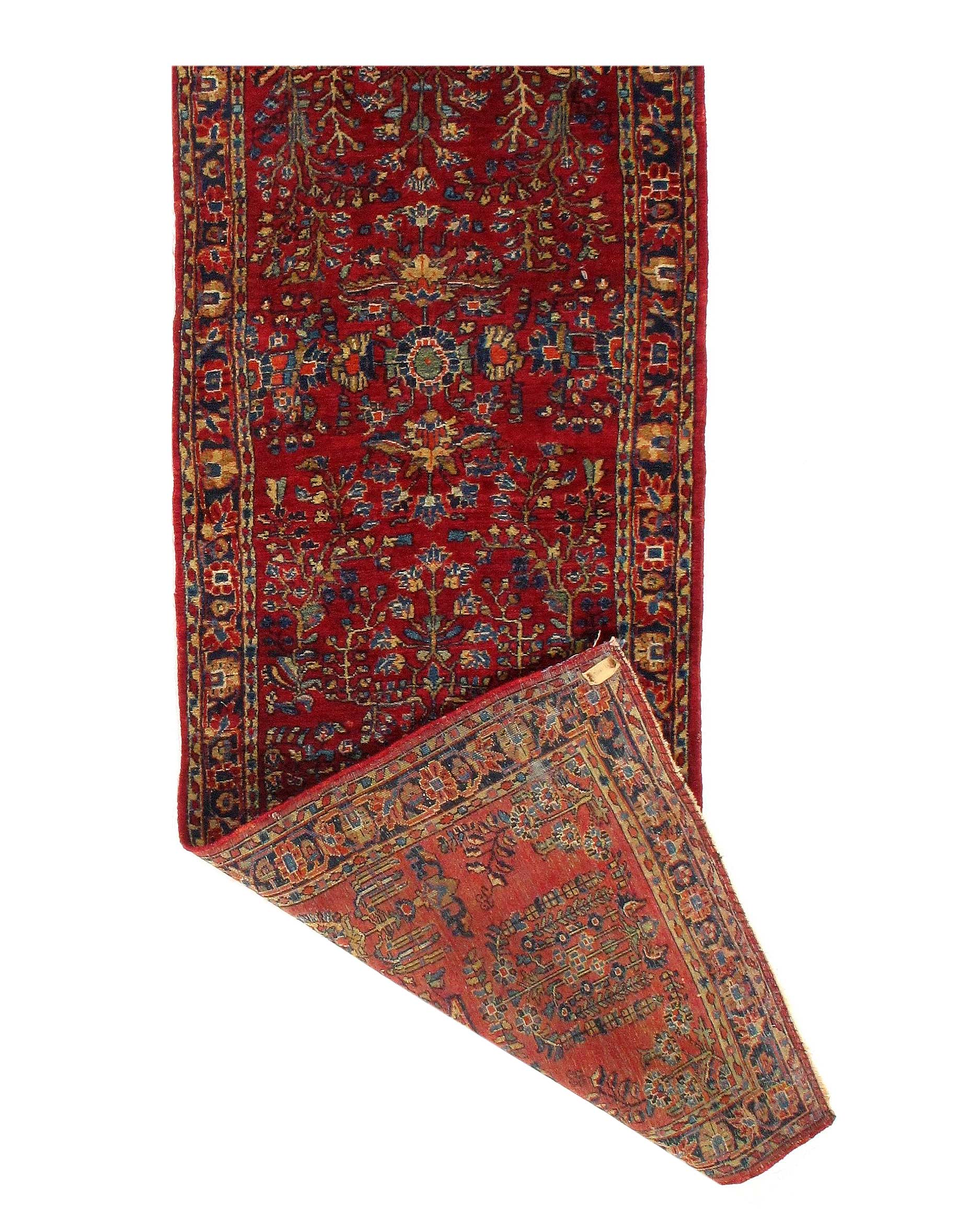 A hand knotted antique Sarouk rug.