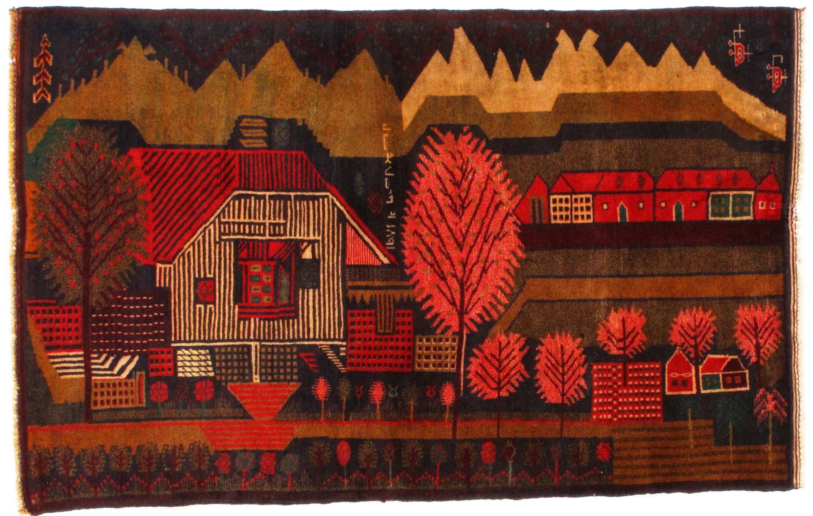 The Balouch carpets have a close relationship with carpets from Afghanistan and Turkmenistan. The colors are often dull and dark red, dark blue, black and brown. The patterns are geometrical with curvilinear life trees. They are often designed as prayer carpets with a prayer niche.