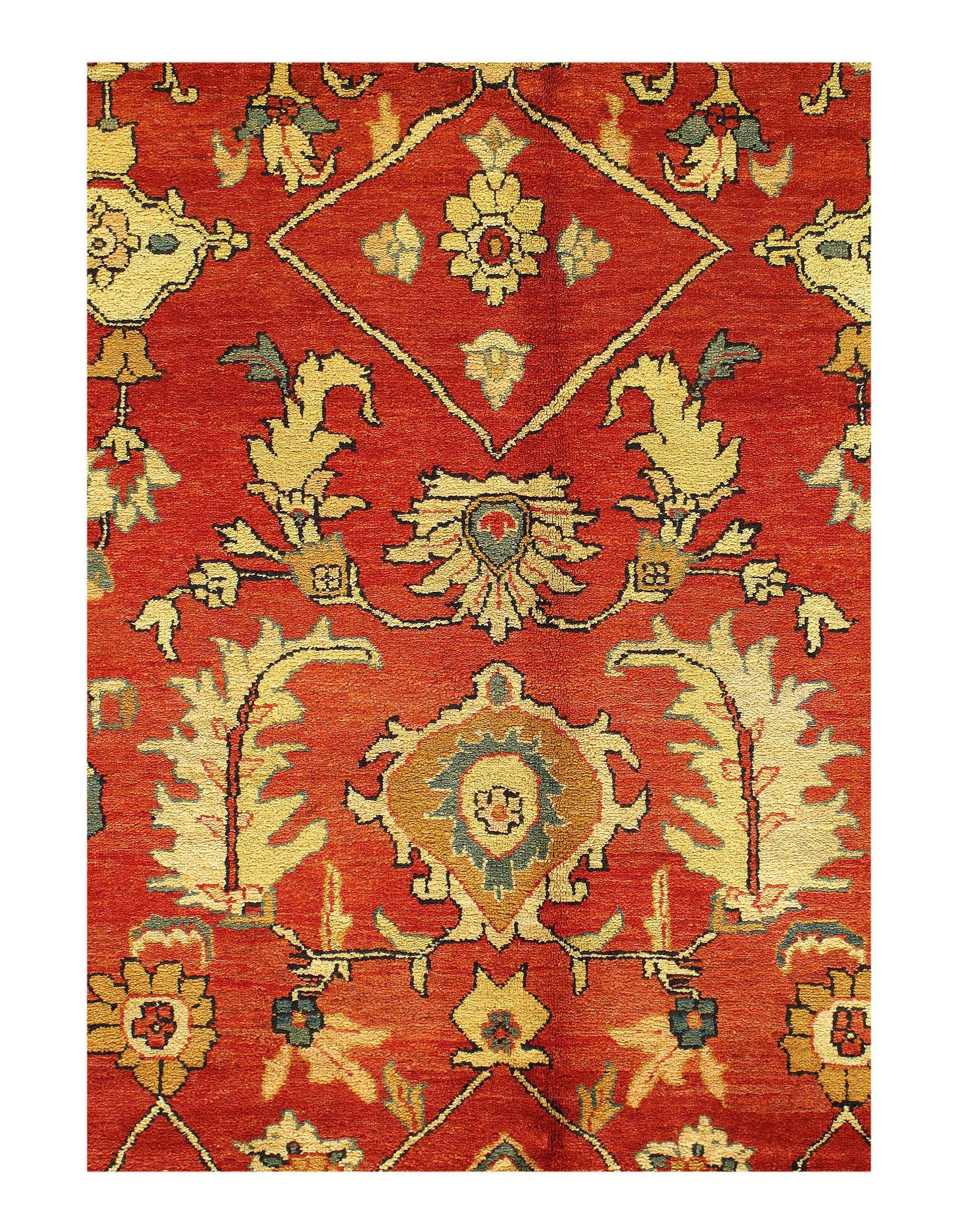 Add a fresh accent to your home with a new rug from the Agra collection. Agra collection is inspired by timeless, traditional designs. Each of these magnificent rugs is crafted using a hand-knotted construction with a softest lamb's wool pile by talented artisans of northern India and will show beautifully for years. This rug is a versatile, stylish and environmentally conscientious choice as it is made from 100% natural fibers.