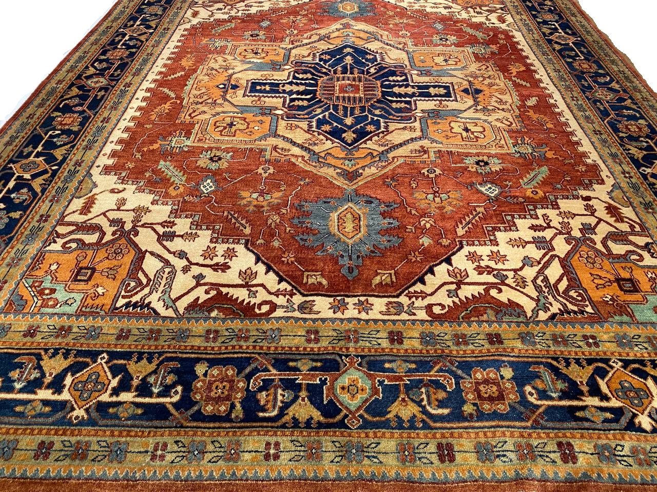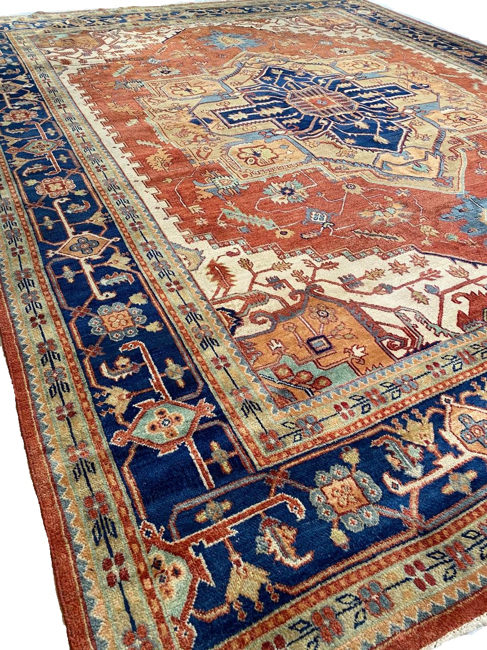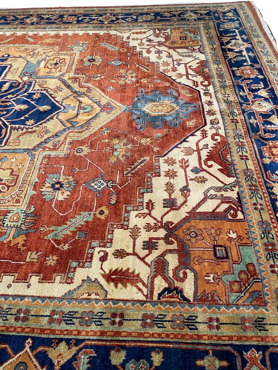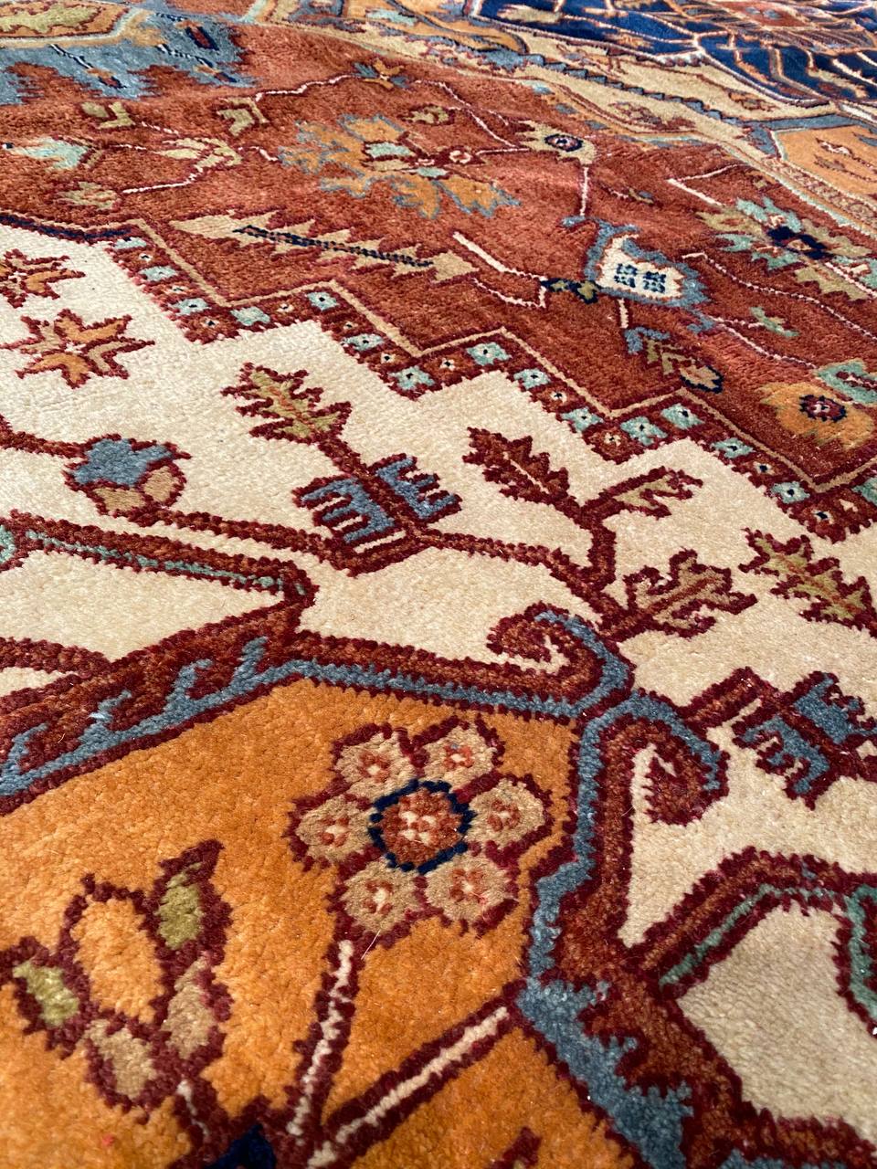 Serapi design rug. Handmade and hand-knotted in fine lambswool on a cotton foundation. Vegetable dyed hand-spun wool rug.