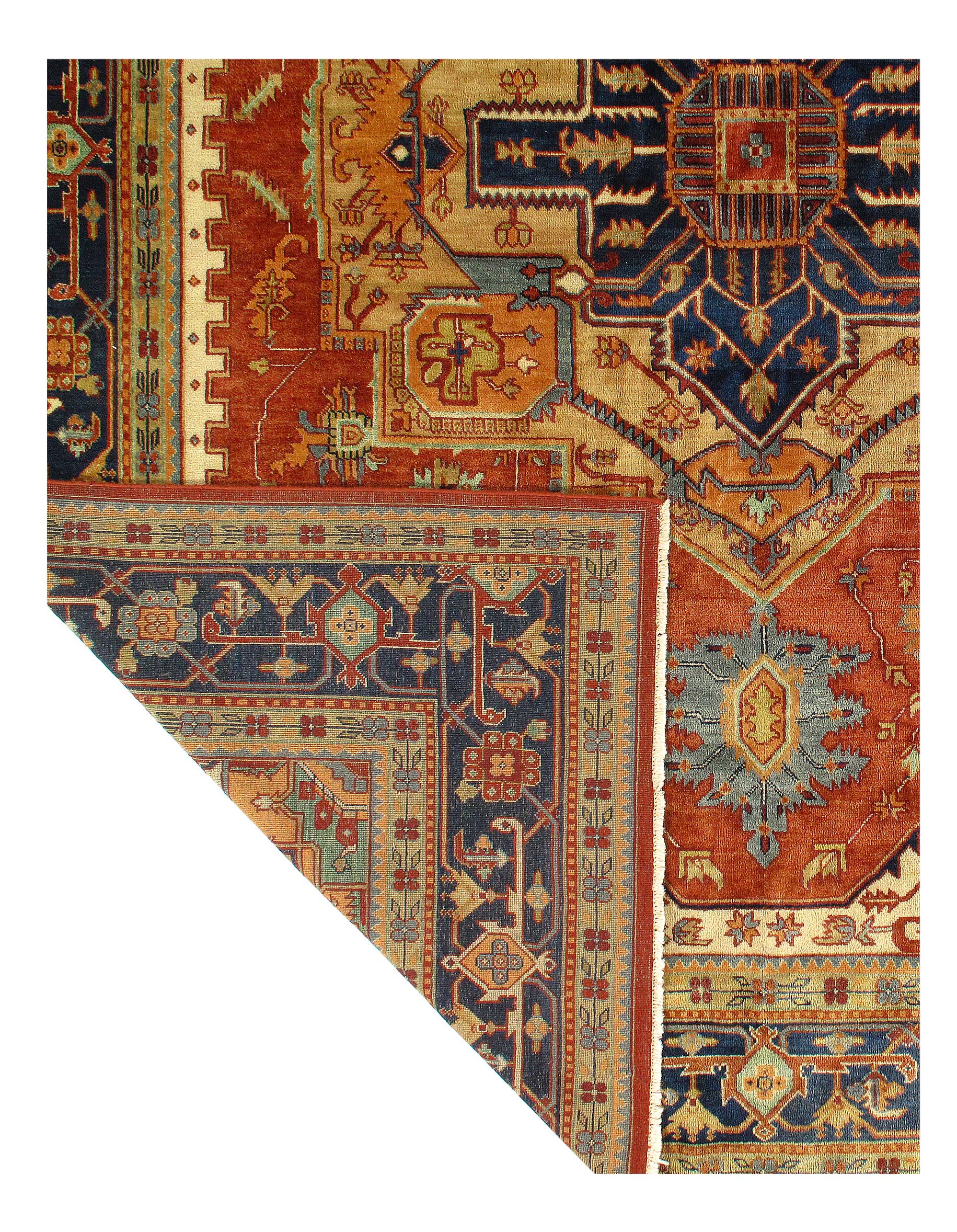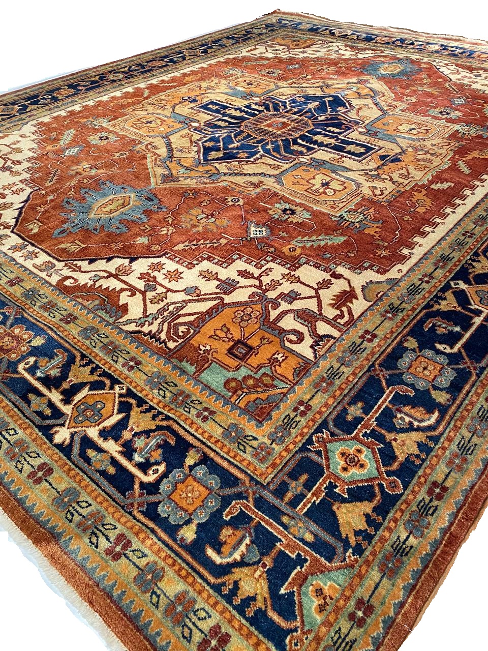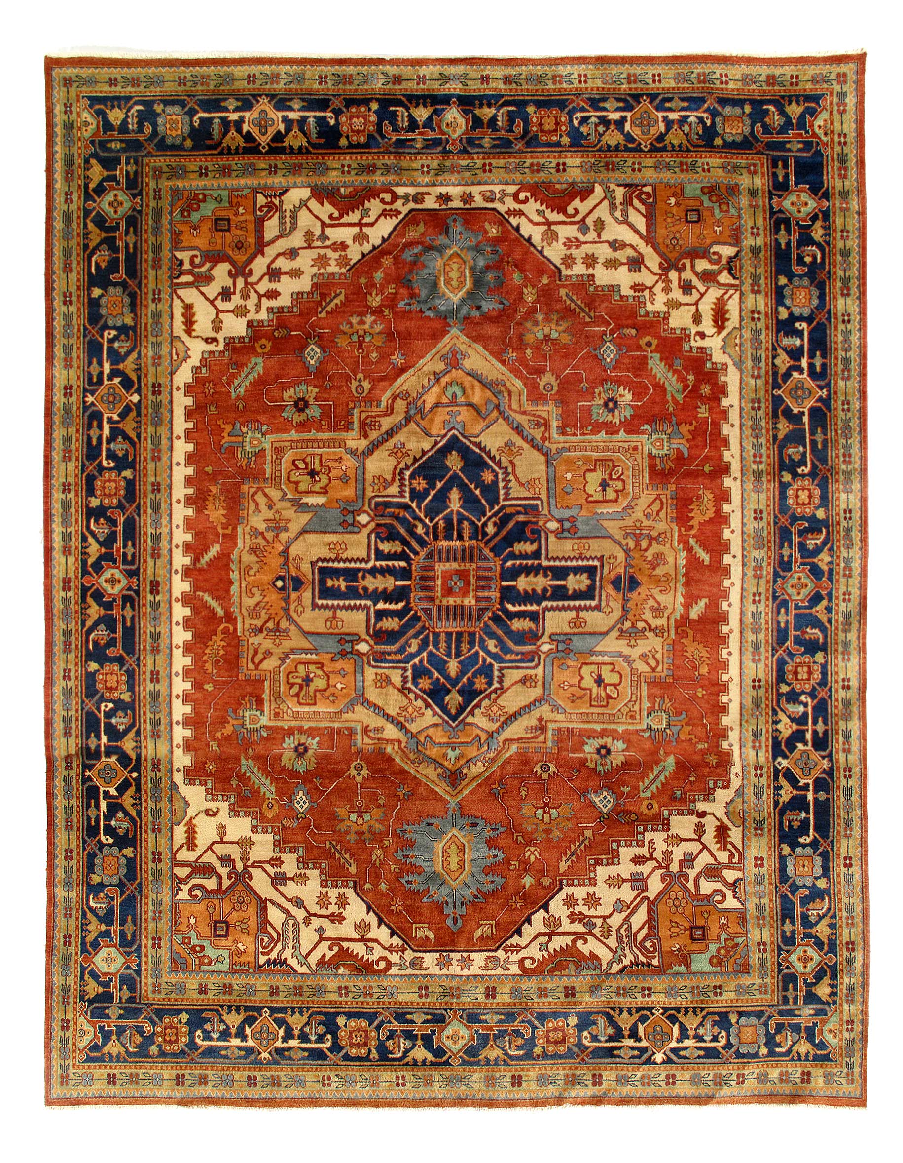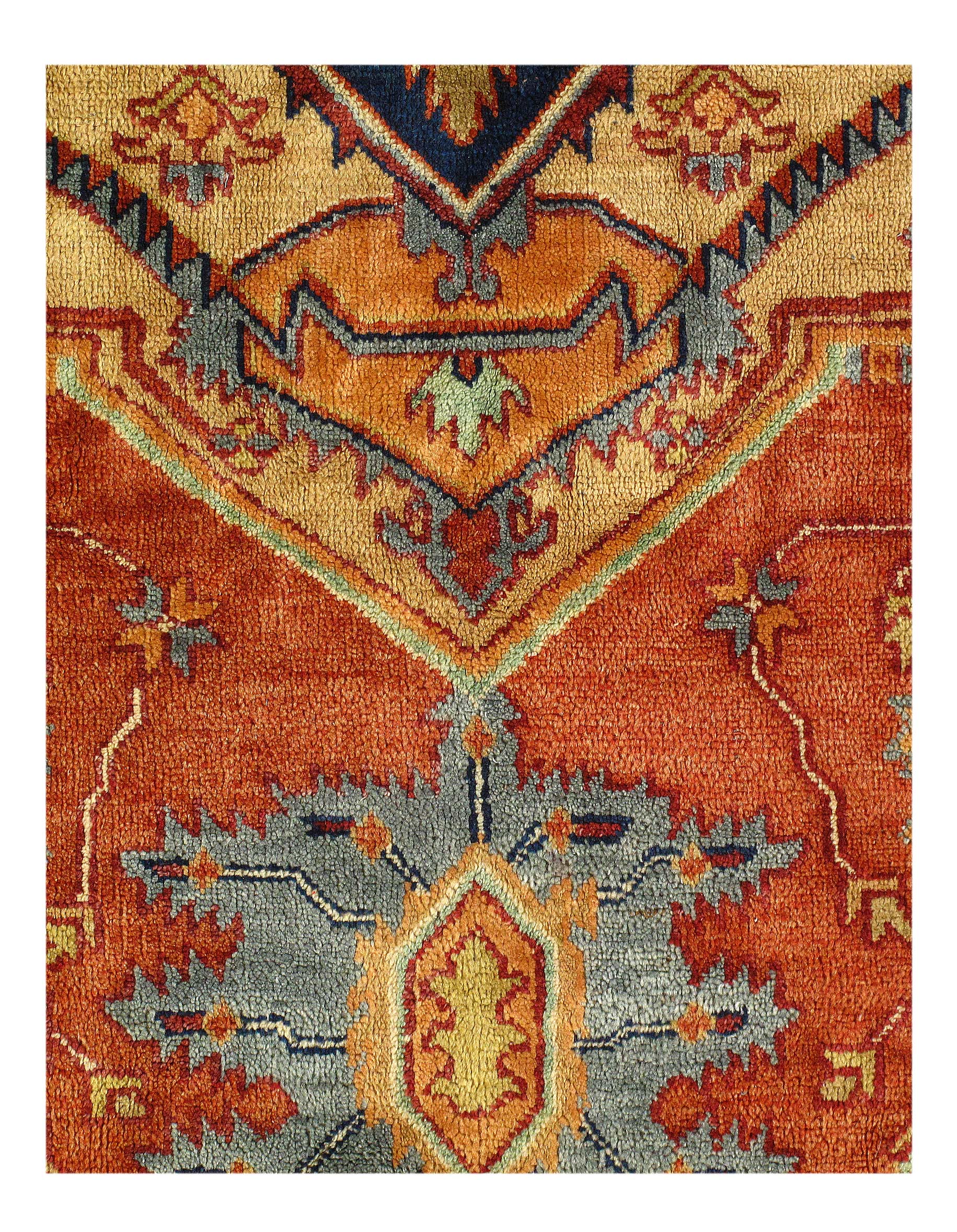 Serapi design rug. Handmade and hand-knotted in fine lambswool on a cotton foundation. Vegetable dyed hand-spun wool rug.
