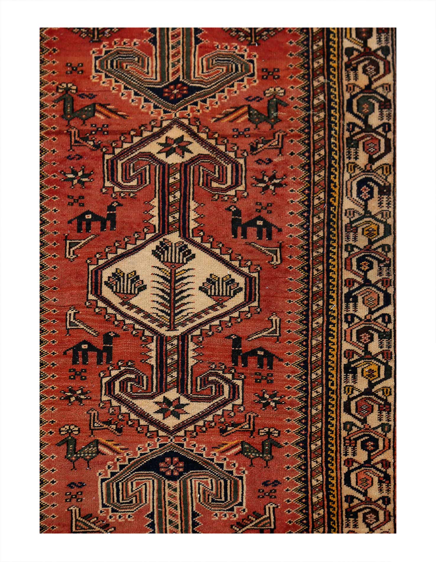 The village of Serab is a small community nestled in the Sabalan Mountains of northwestern Persia. They remained isolated and were cut off from participation in the trade that others located in more populated areas could participate in, which means that they did not have the influences of contact with other cultures. This allowed their designs to retain the traditional qualities and characteristics that make them unique without being transformed by the influences of commerce.